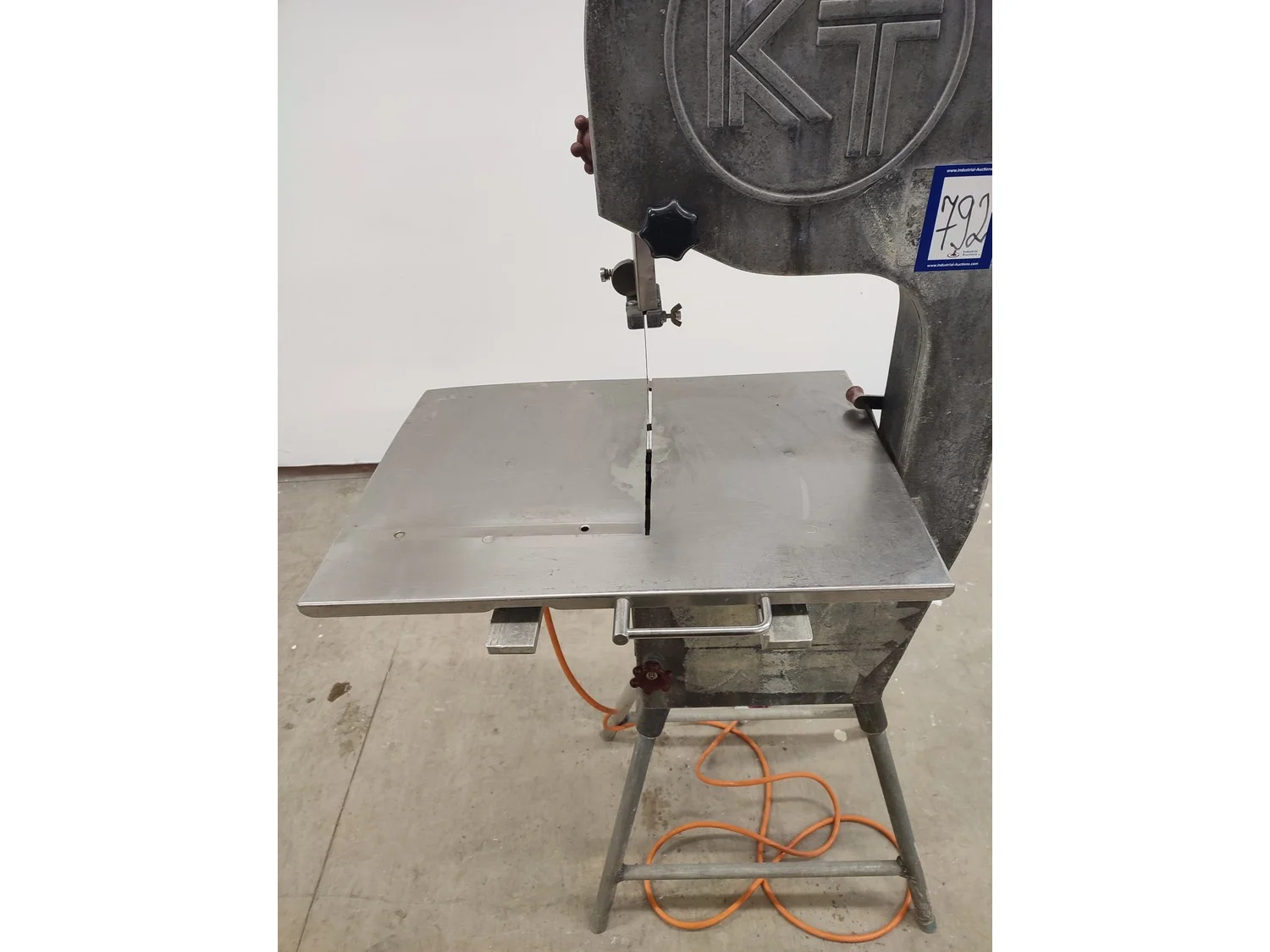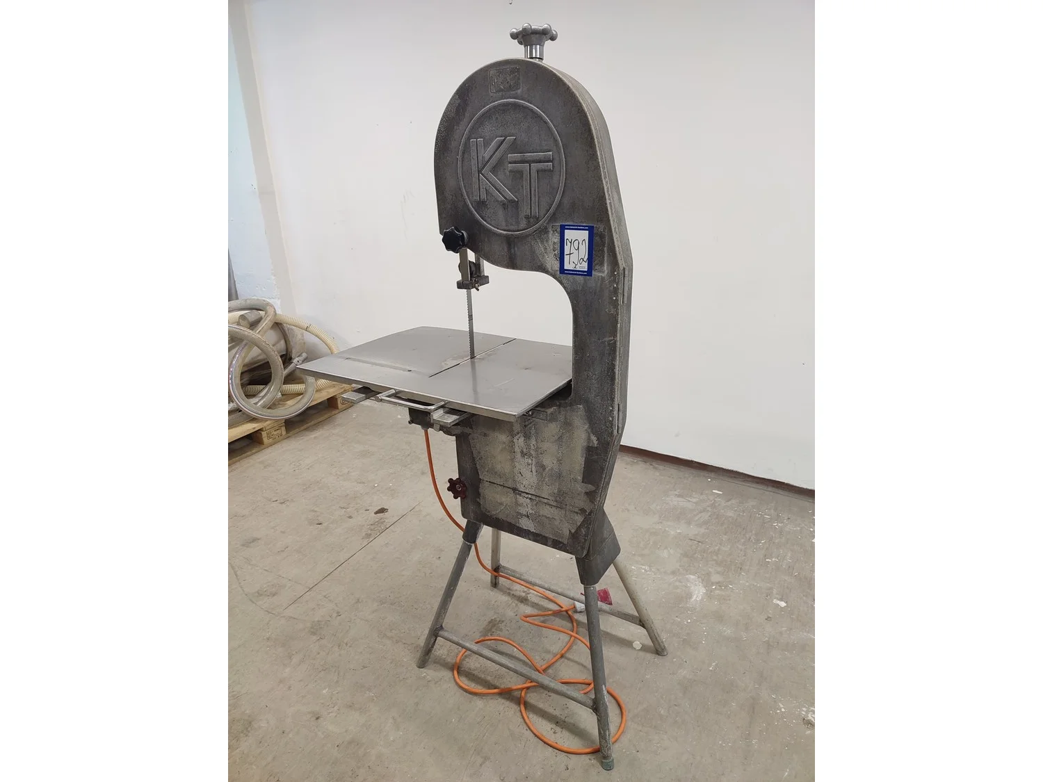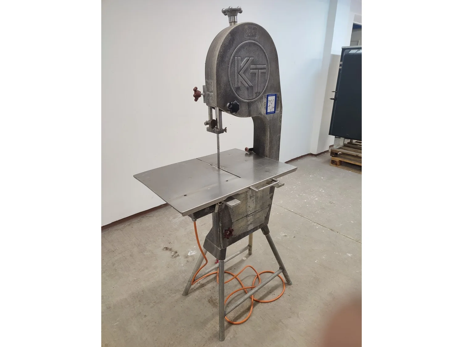 Koneteollisuus OY band saw, model: KT-325, dimensions saw table: 655 mm x 480 mm, total dimensions: 900 mm x 600 mm x 1750 mm.