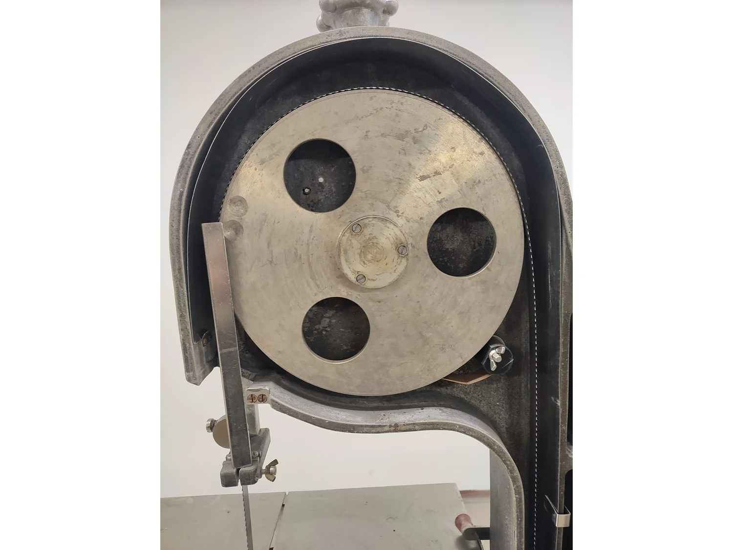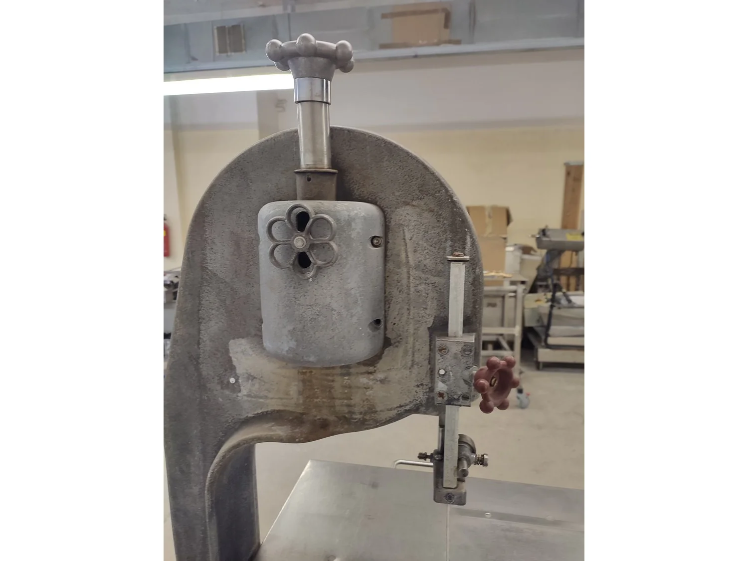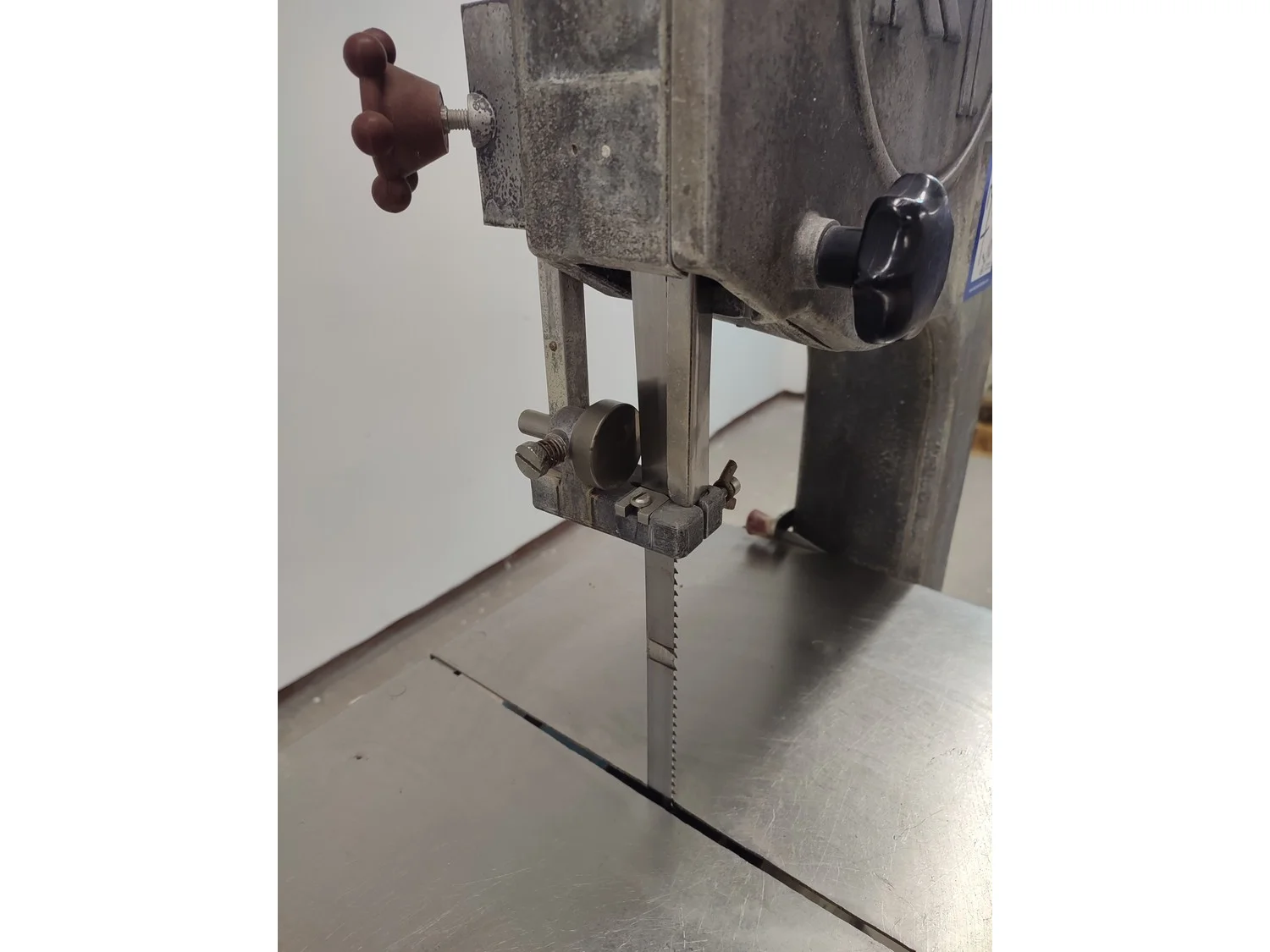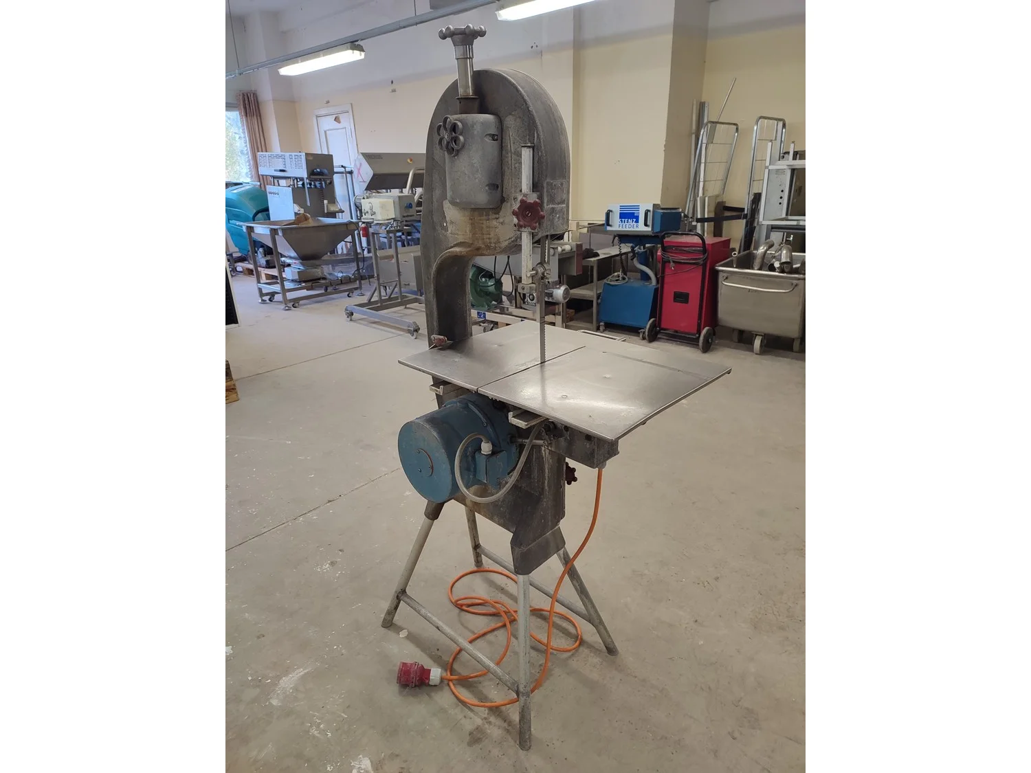 Koneteollisuus OY band saw, model: KT-325, dimensions saw table: 655 mm x 480 mm, total dimensions: 900 mm x 600 mm x 1750 mm.