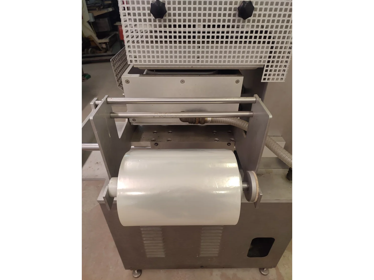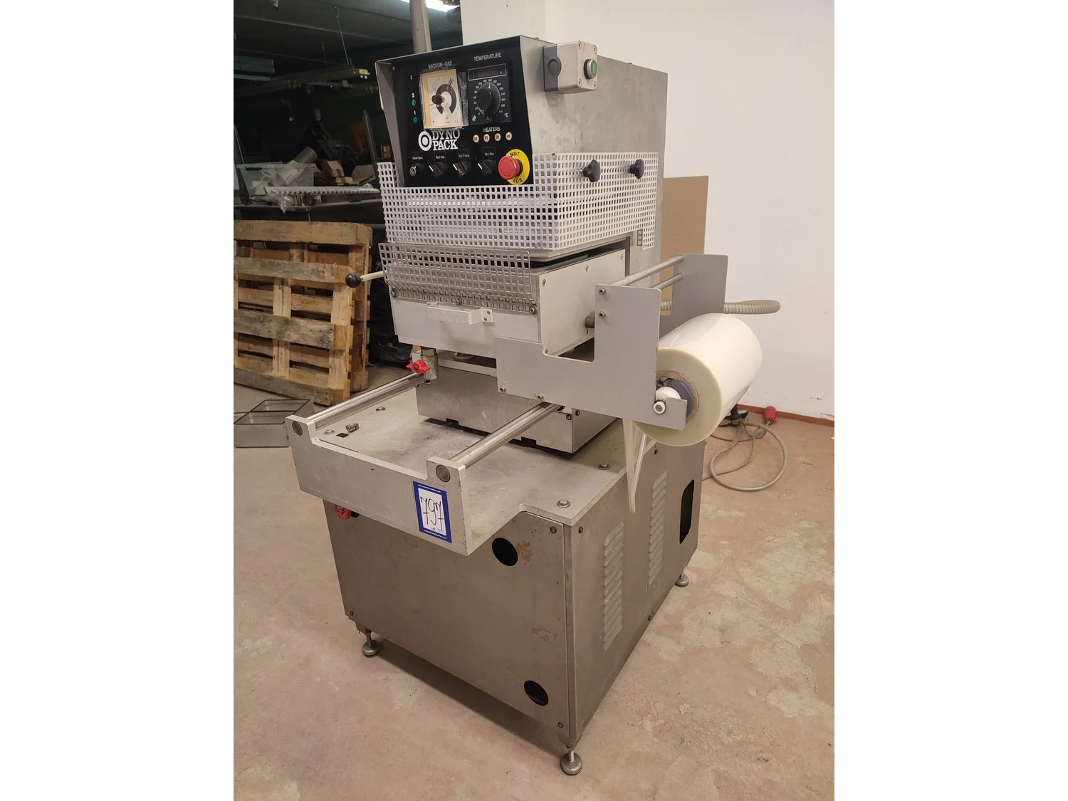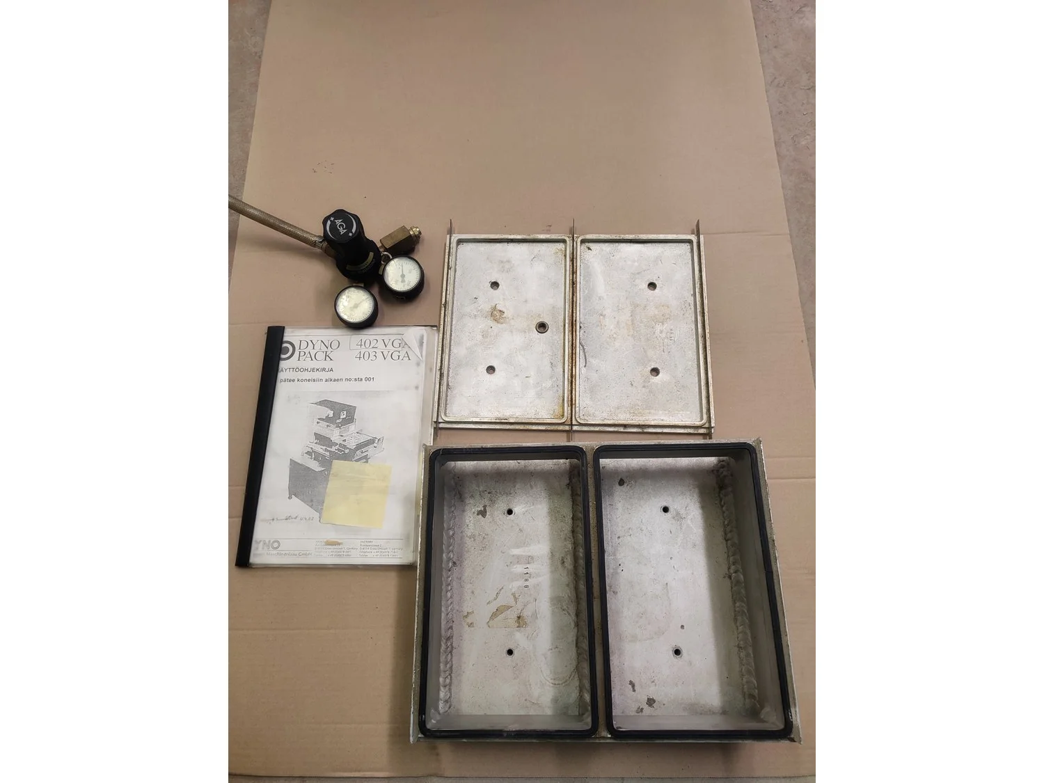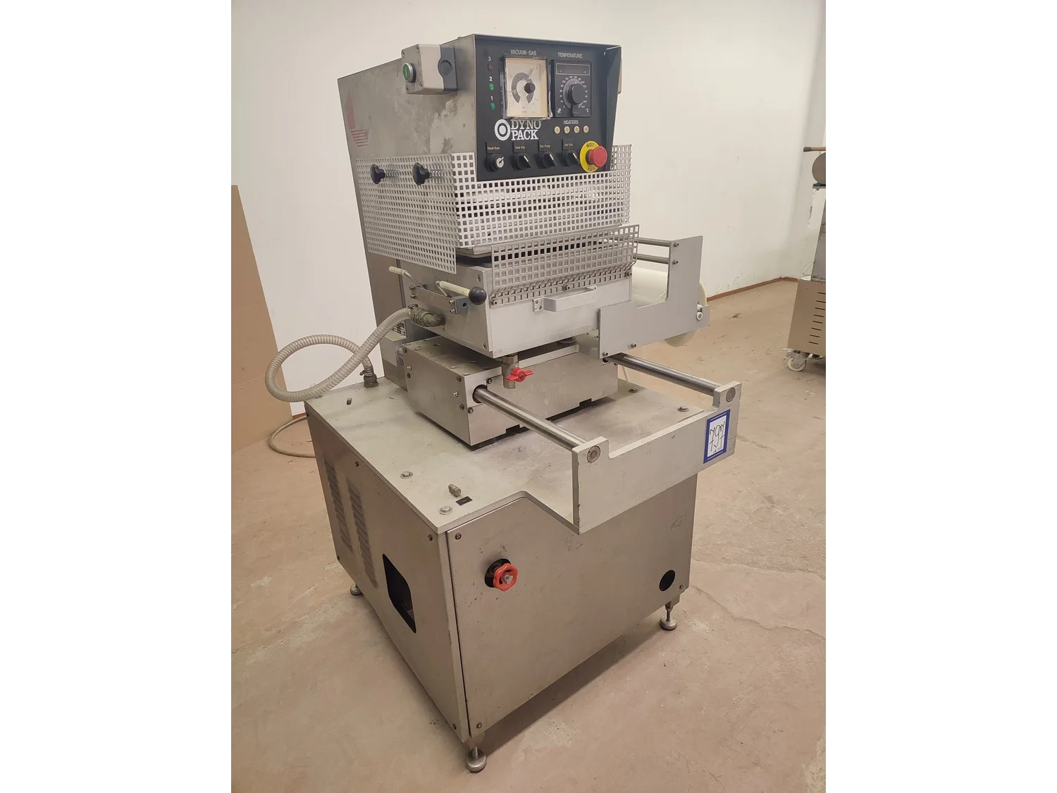 Dynopack Maschinenbau GmbH traysealer, type: 402 VG, machine number: 983, year of construction: 04.94, 380 V, 6 kW, 6 bar, dye: 290 mm x 230 mm, film width: 265 mm. Including 1 extra dye, dimensions dye: (2x) 250 mm x 150 mm, total dimensions: 950 mm x 980 mm x 1510 mm.