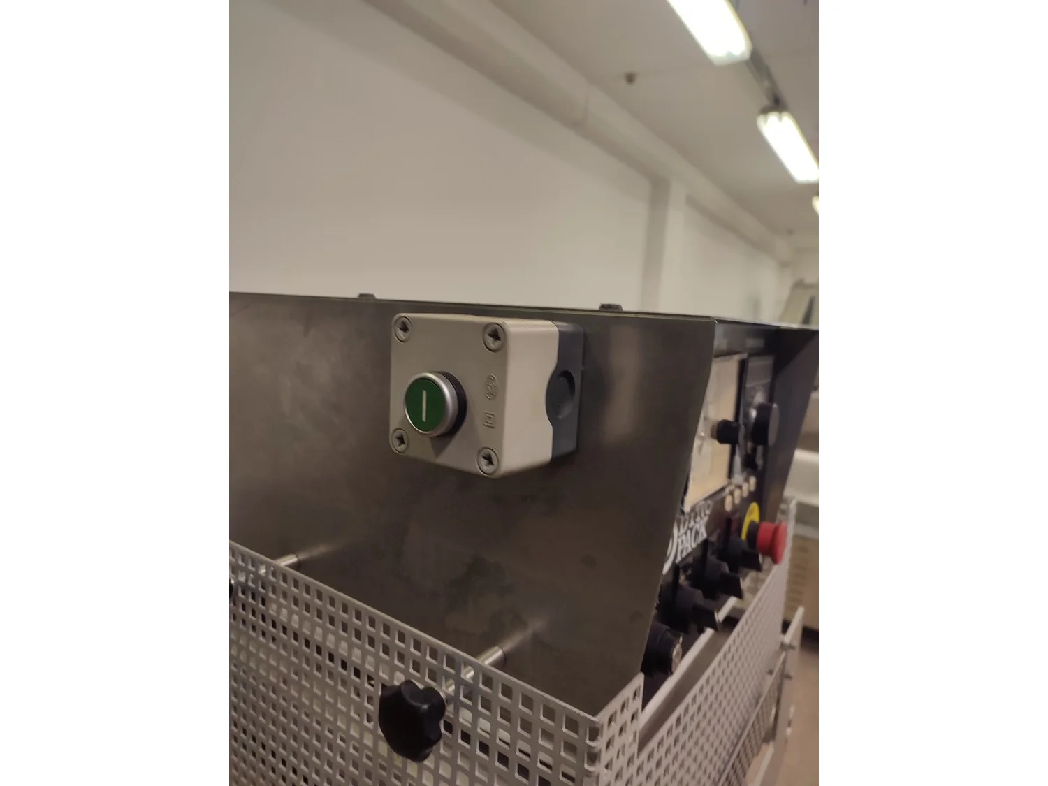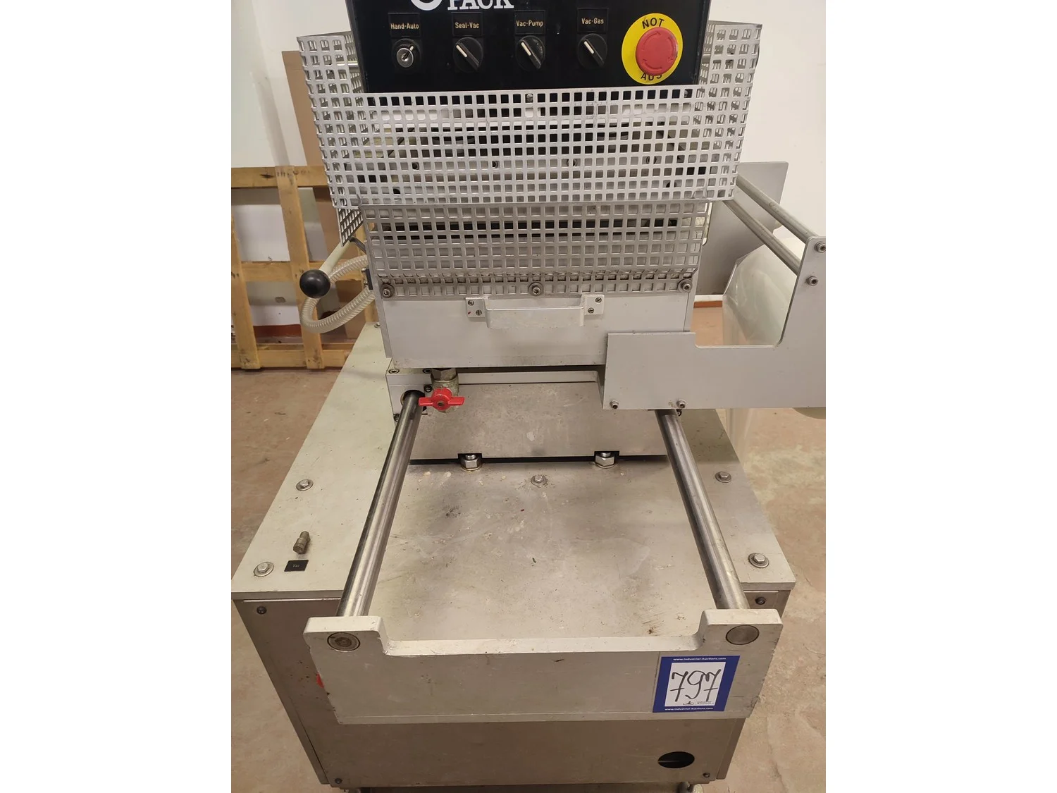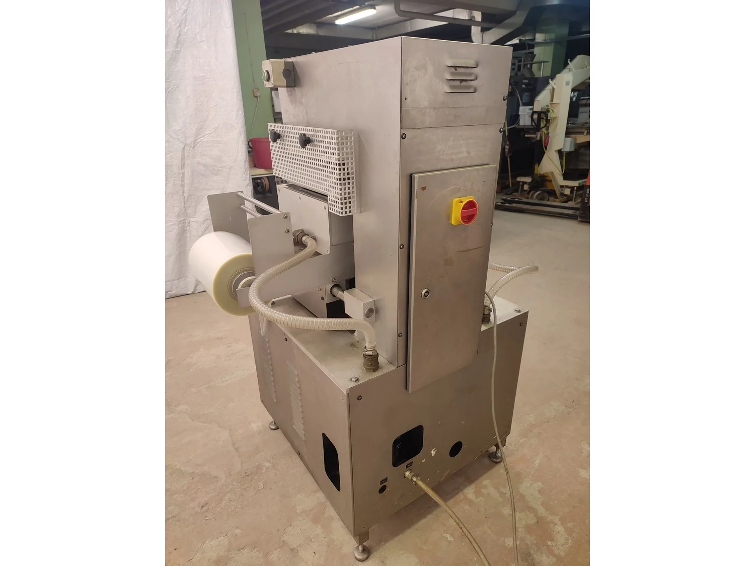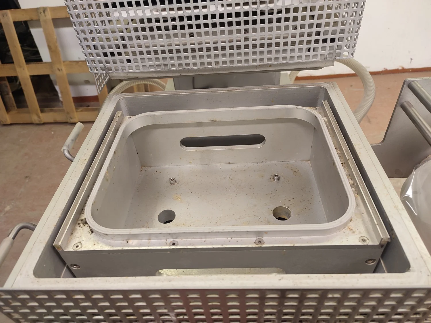 Dynopack Maschinenbau GmbH traysealer, type: 402 VG, machine number: 983, year of construction: 04.94, 380 V, 6 kW, 6 bar, dye: 290 mm x 230 mm, film width: 265 mm. Including 1 extra dye, dimensions dye: (2x) 250 mm x 150 mm, total dimensions: 950 mm x 980 mm x 1510 mm.
