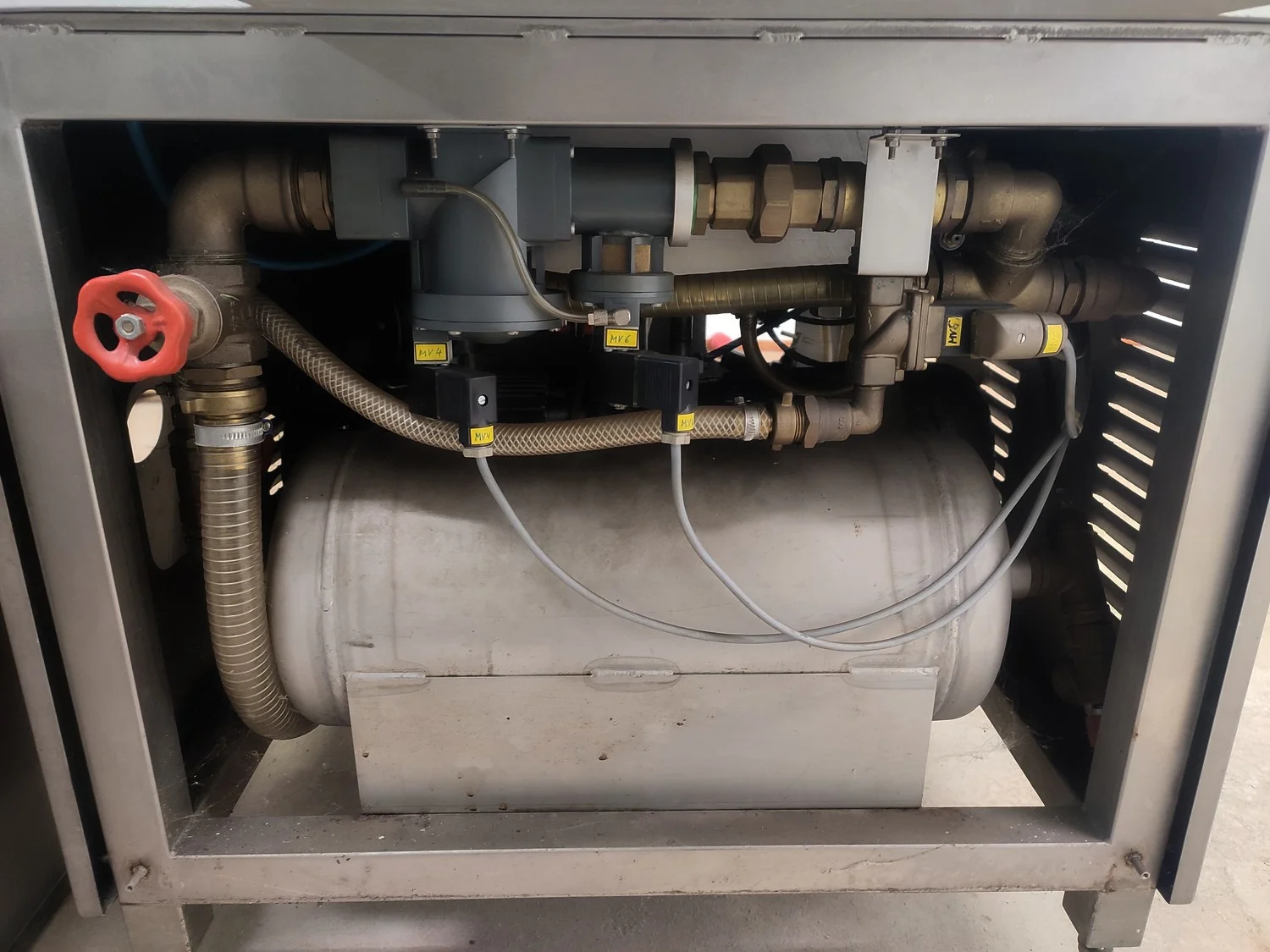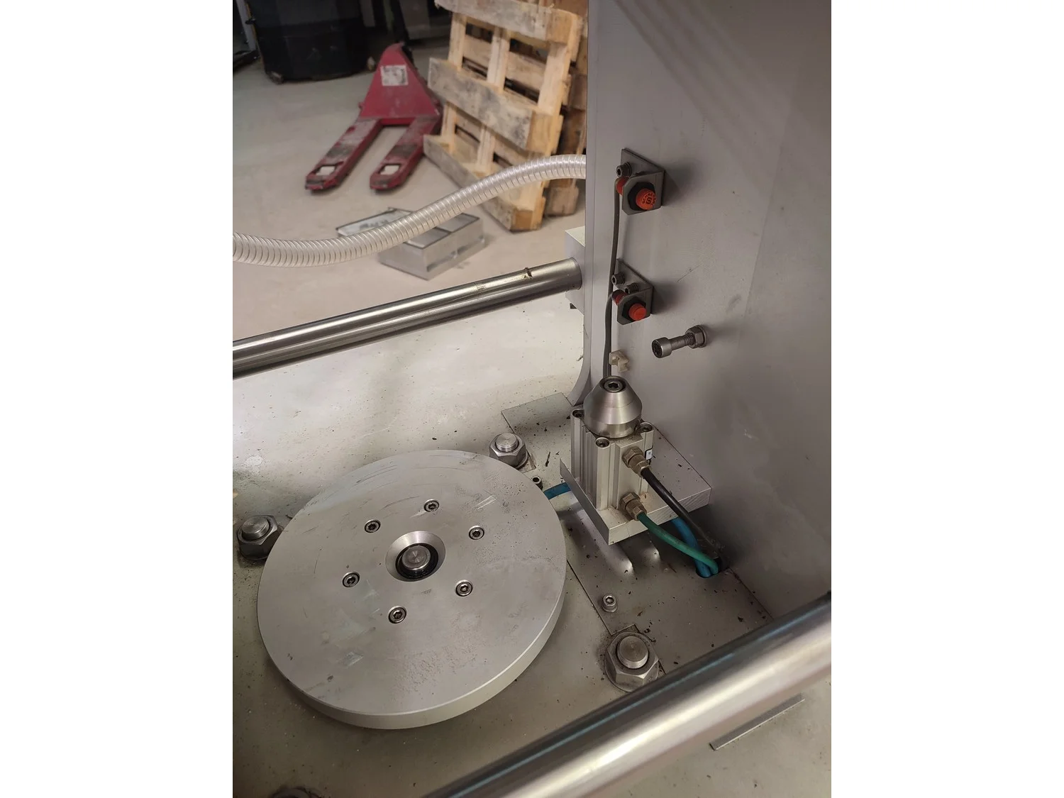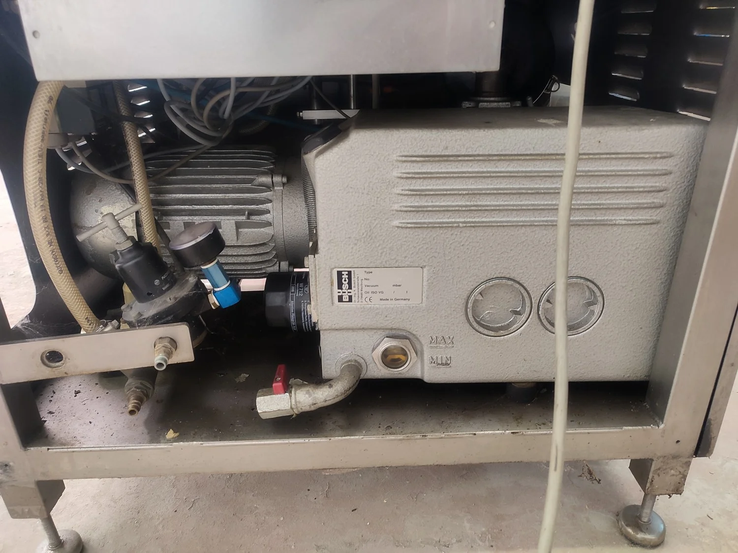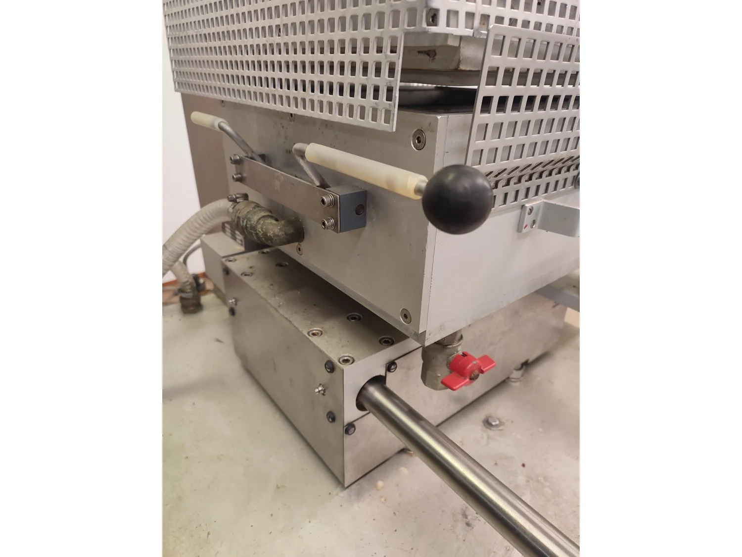 Dynopack Maschinenbau GmbH traysealer, type: 402 VG, machine number: 983, year of construction: 04.94, 380 V, 6 kW, 6 bar, dye: 290 mm x 230 mm, film width: 265 mm. Including 1 extra dye, dimensions dye: (2x) 250 mm x 150 mm, total dimensions: 950 mm x 980 mm x 1510 mm.
