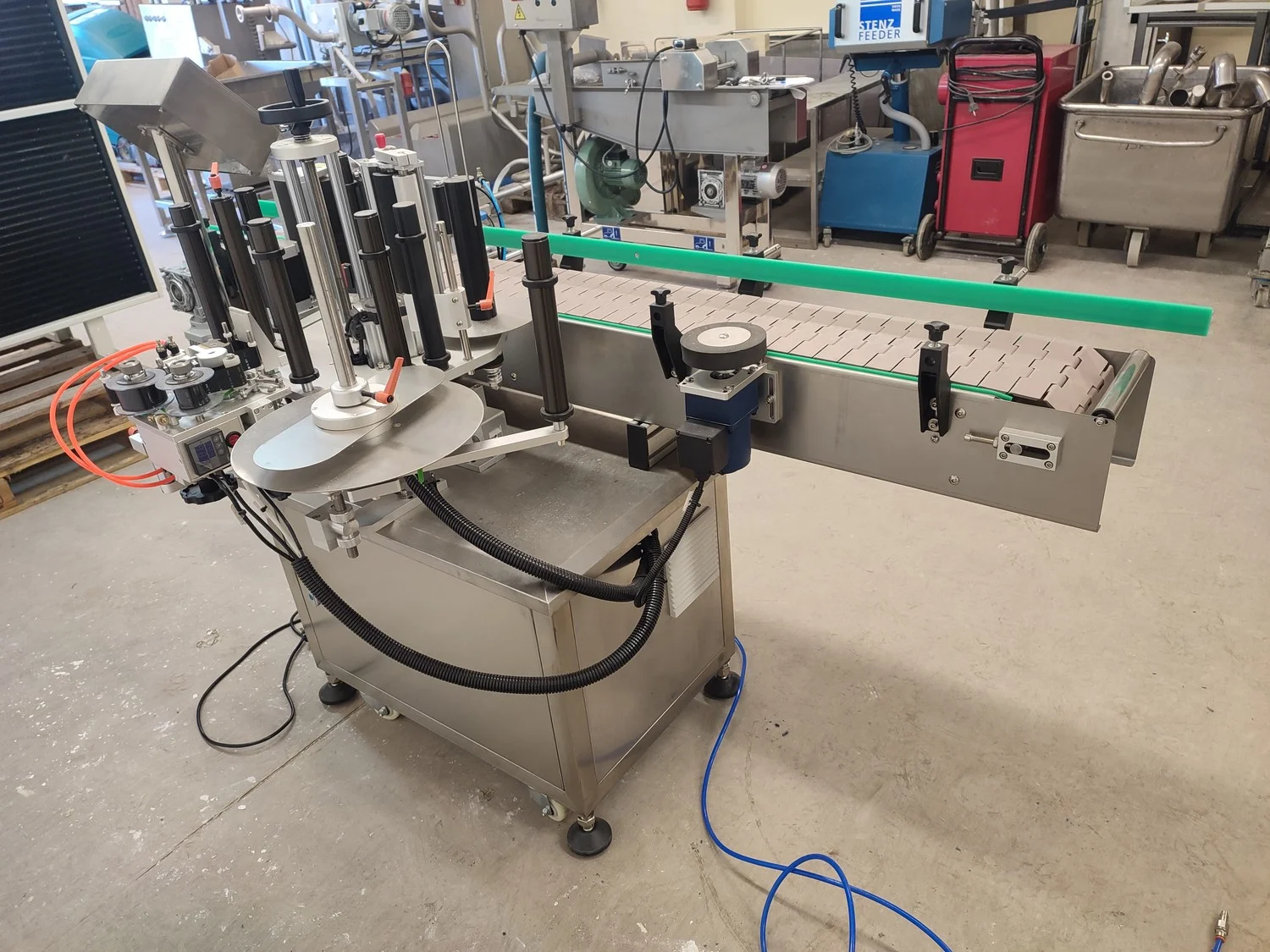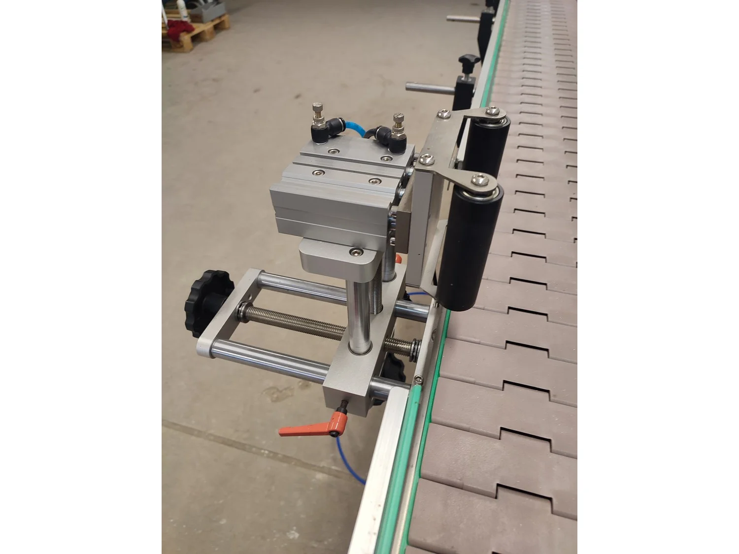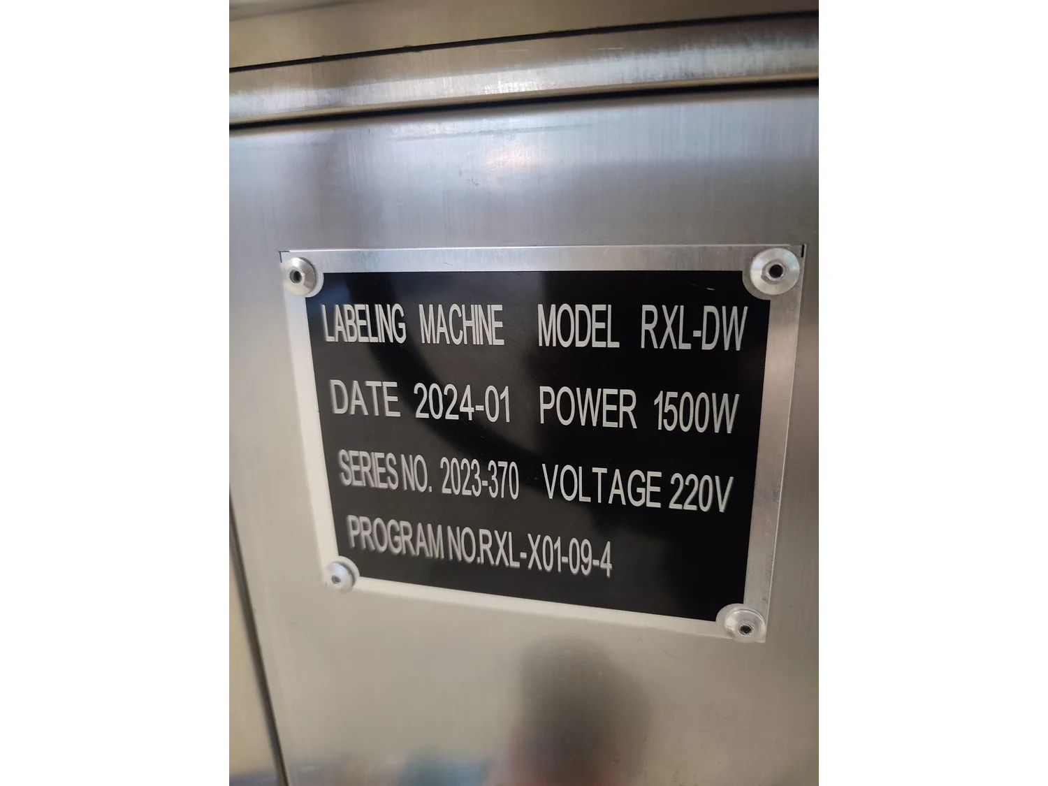 Mobile labelling machine, model: RXL-DW, serial number: 2023-370, year of construction: 01.2024, 220 V, 1500 W, plastic belt width: 190 mm, dimensions: 2100 mm x 1200 mm x 1275 mm.