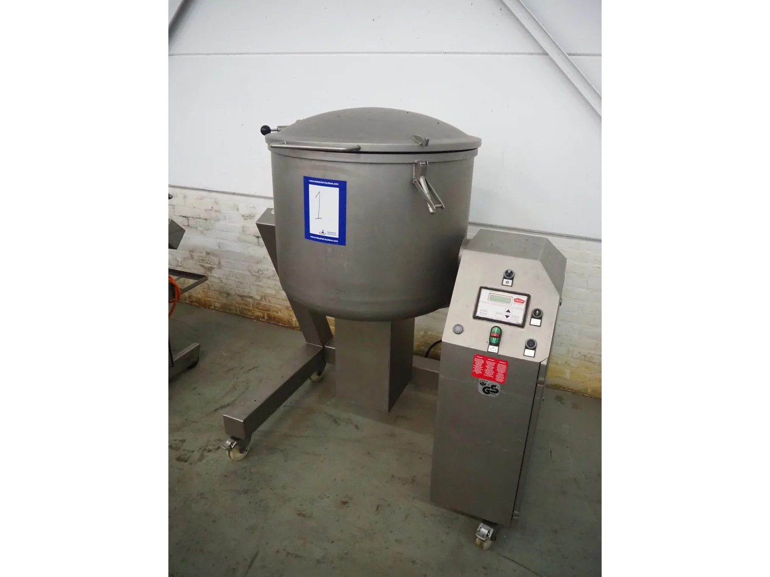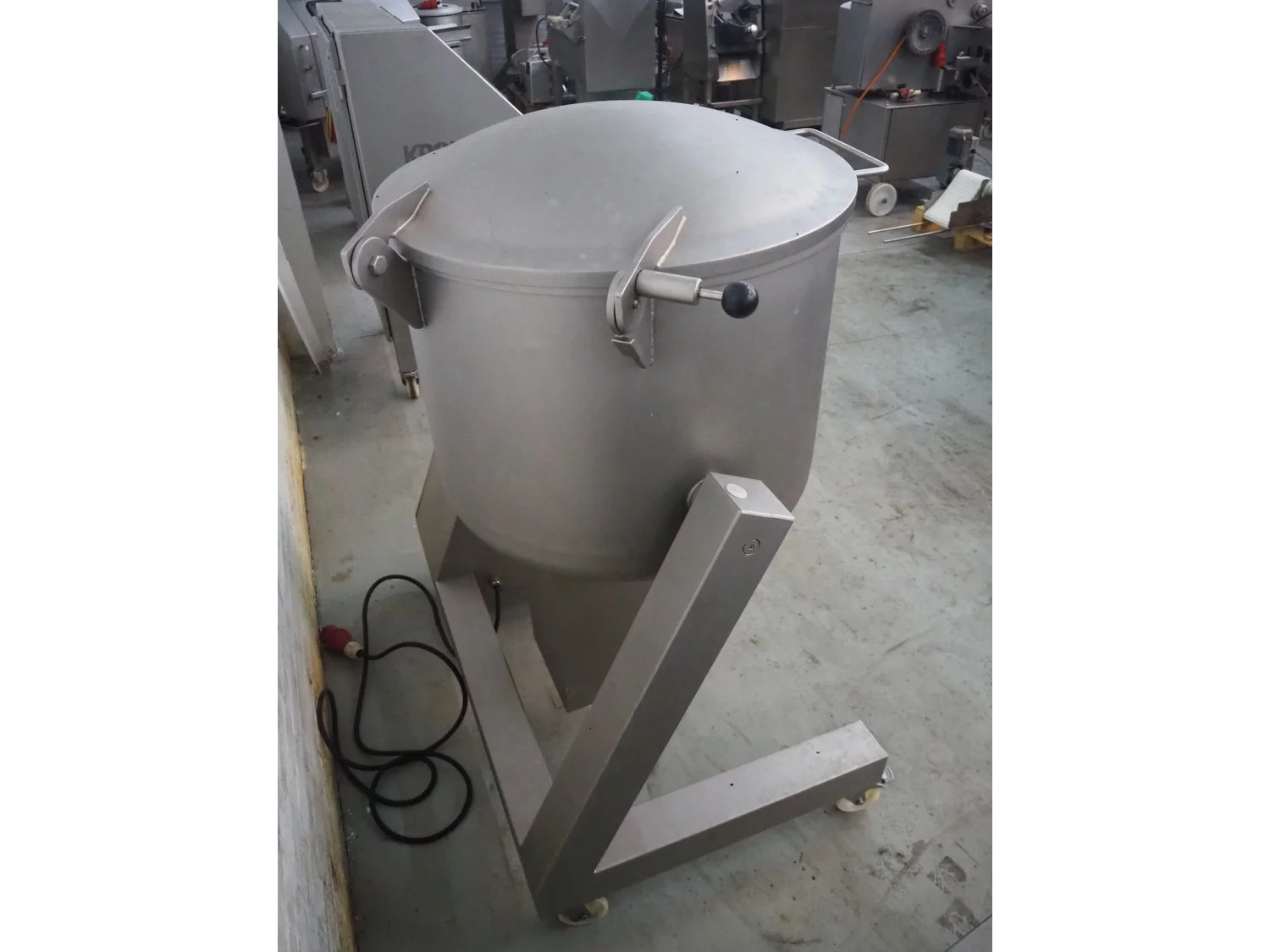 Vakona GmbH mobile tumbler, type: FM 220-2, machine number: 2631, year of construction: 2009, 400 V, 3 Ph, 50 Hz, 16 A, 2.7 kW, volume: 220 liter, weight: 160 KG, total dimensions: 1200 mm x 1000 mm x 1400 mm.