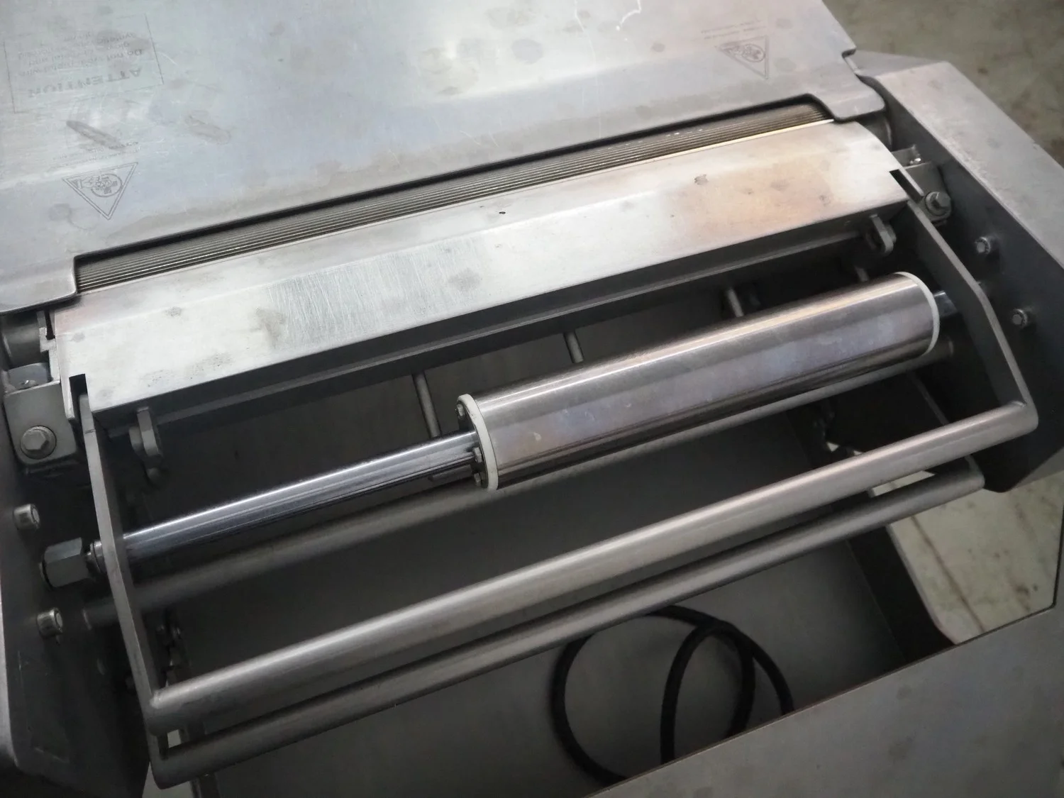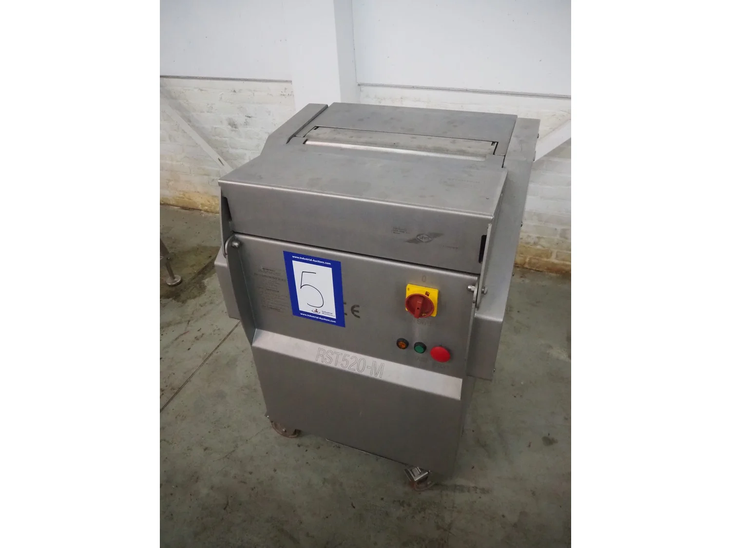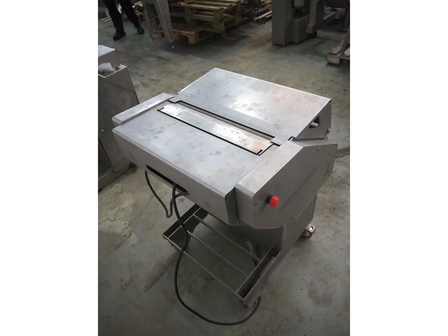 Grasselli S.p.A. mobile skinning machine, model: RST520-M/6, serial number: S21011/M347, year of construction: 2002, 380 V, 3 Ph, 50 Hz, 0.75 kW, working width: 480 mm, total dimensions: 750 mm x 730 mm x 950 mm.