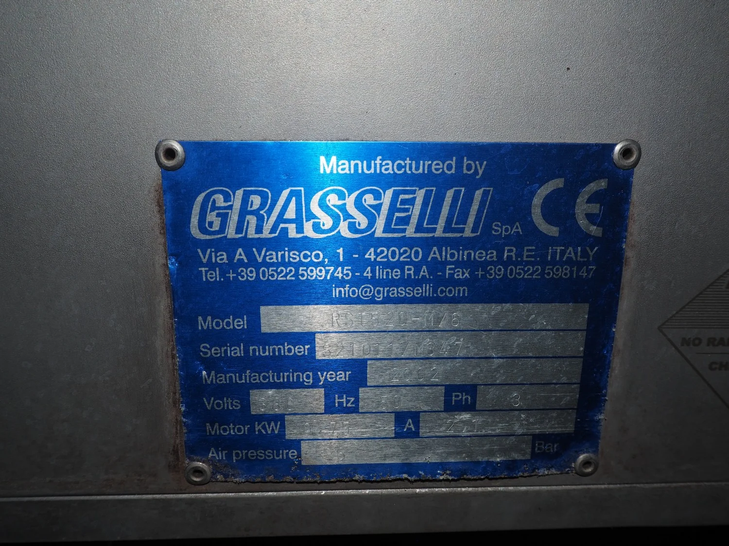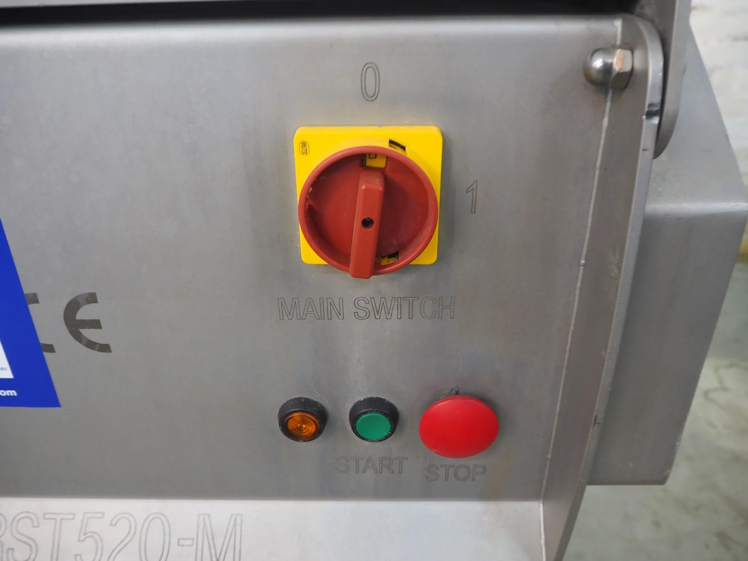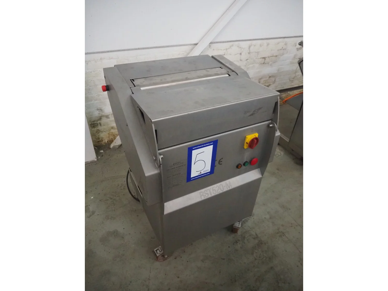 Grasselli S.p.A. mobile skinning machine, model: RST520-M/6, serial number: S21011/M347, year of construction: 2002, 380 V, 3 Ph, 50 Hz, 0.75 kW, working width: 480 mm, total dimensions: 750 mm x 730 mm x 950 mm.