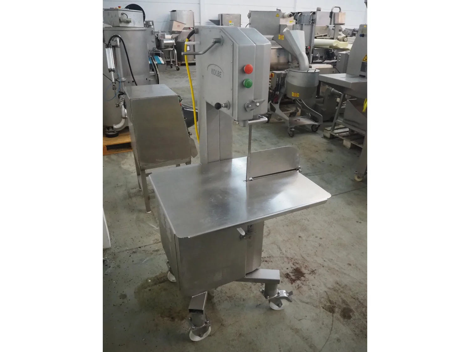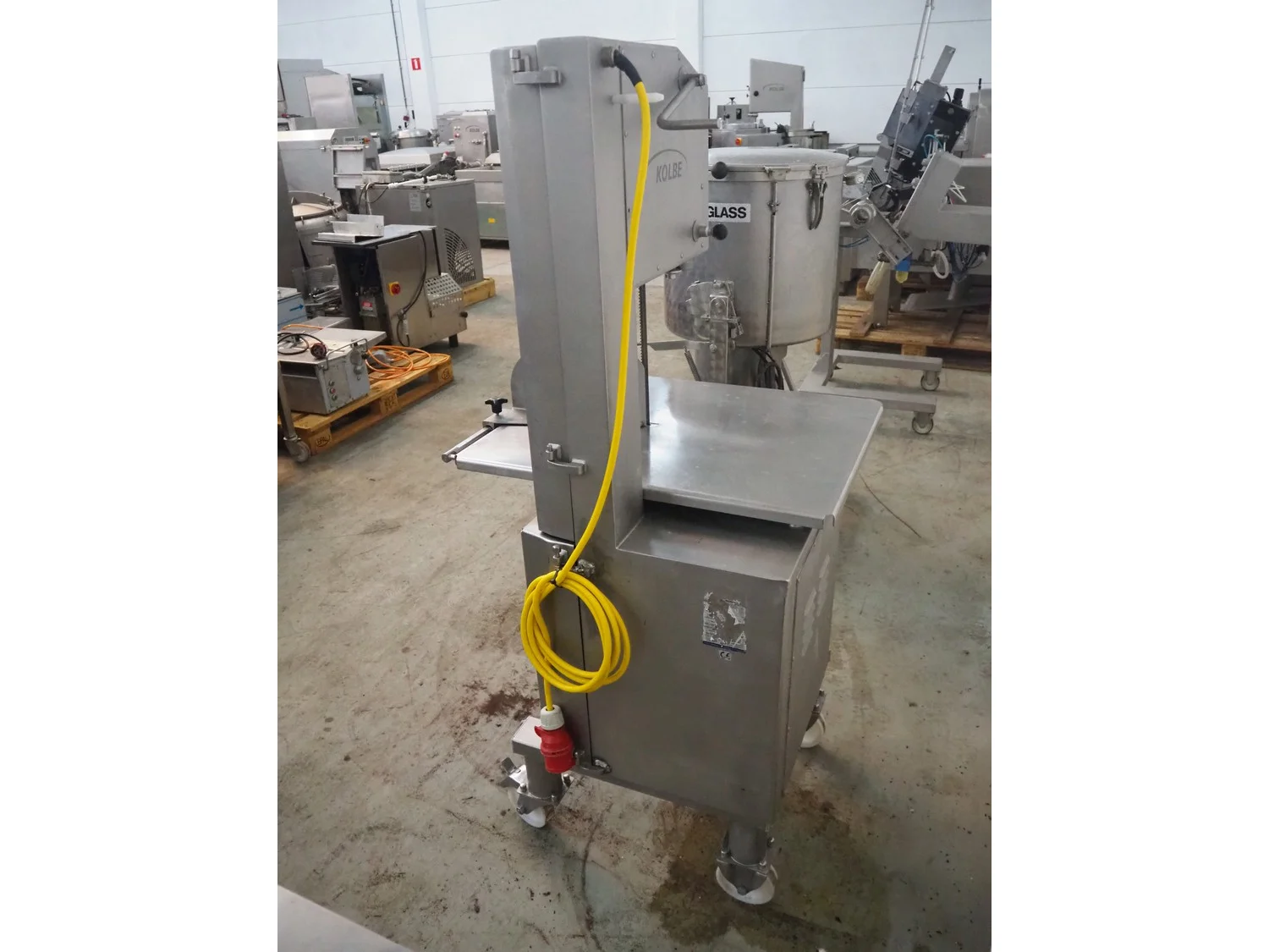Kolbe mobile bandsaw, table dimensions: 750 mm x 600 mm, total dimensions: 800 mm x 780 mm x 1650 mm.