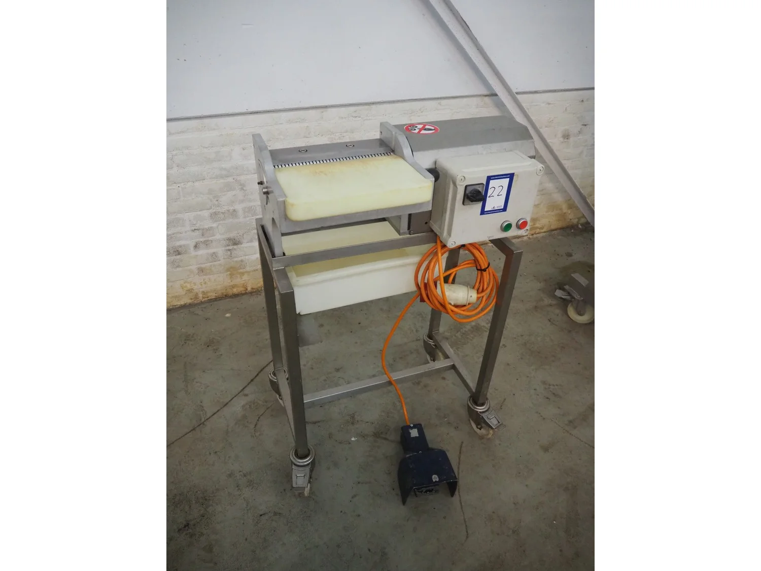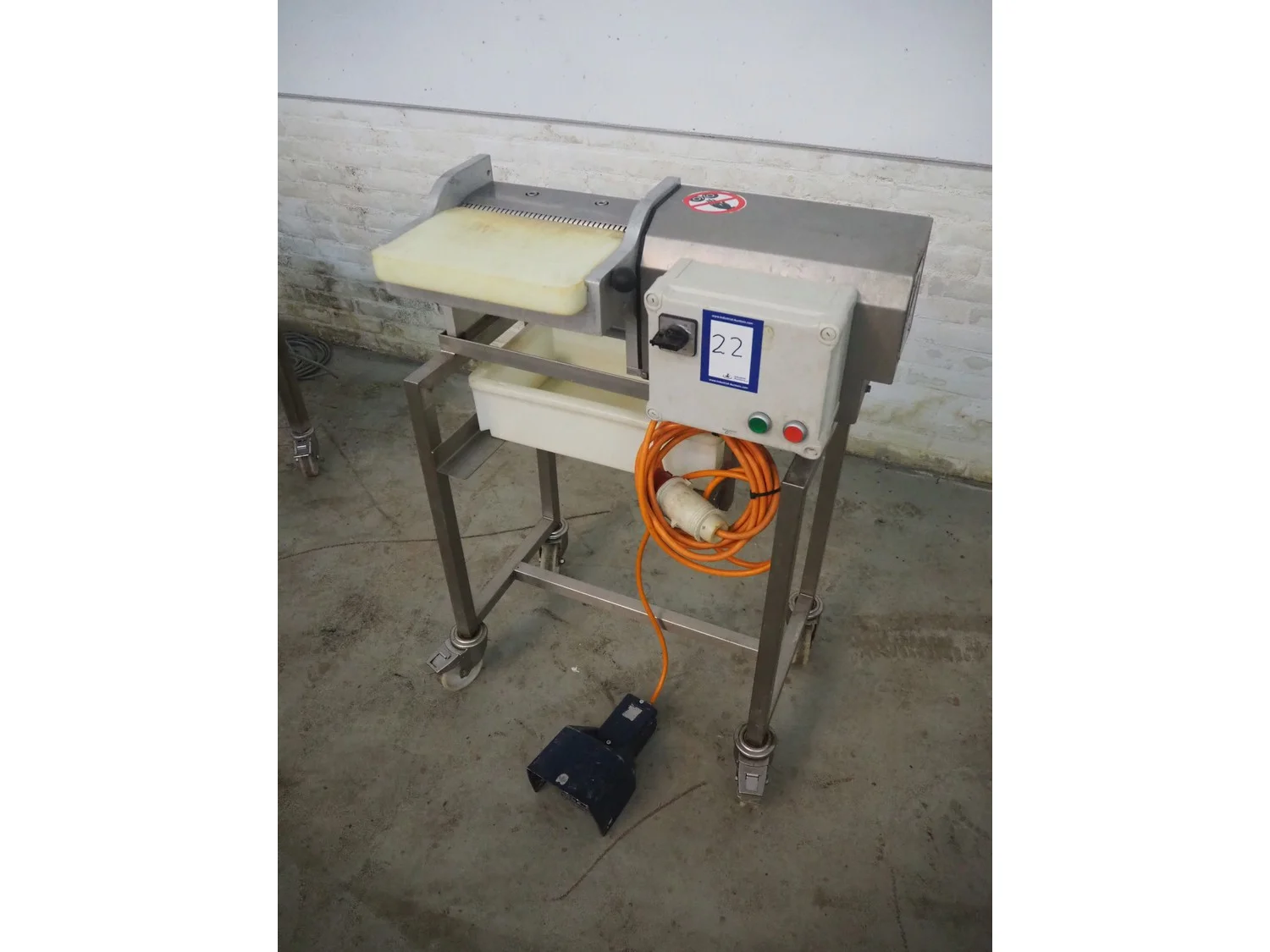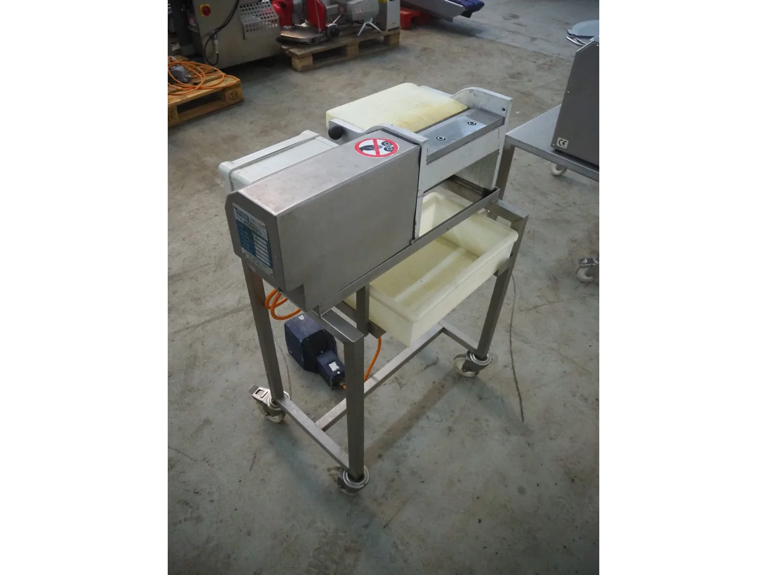 Steen mobile skinning machine, type: ST 111, serial number: 82711694 A, 380 V, 50/60 Hz, 1.35 A, 550 W, working width: 300 mm, total dimensions: 700 mm x 430 mm x 990 mm.