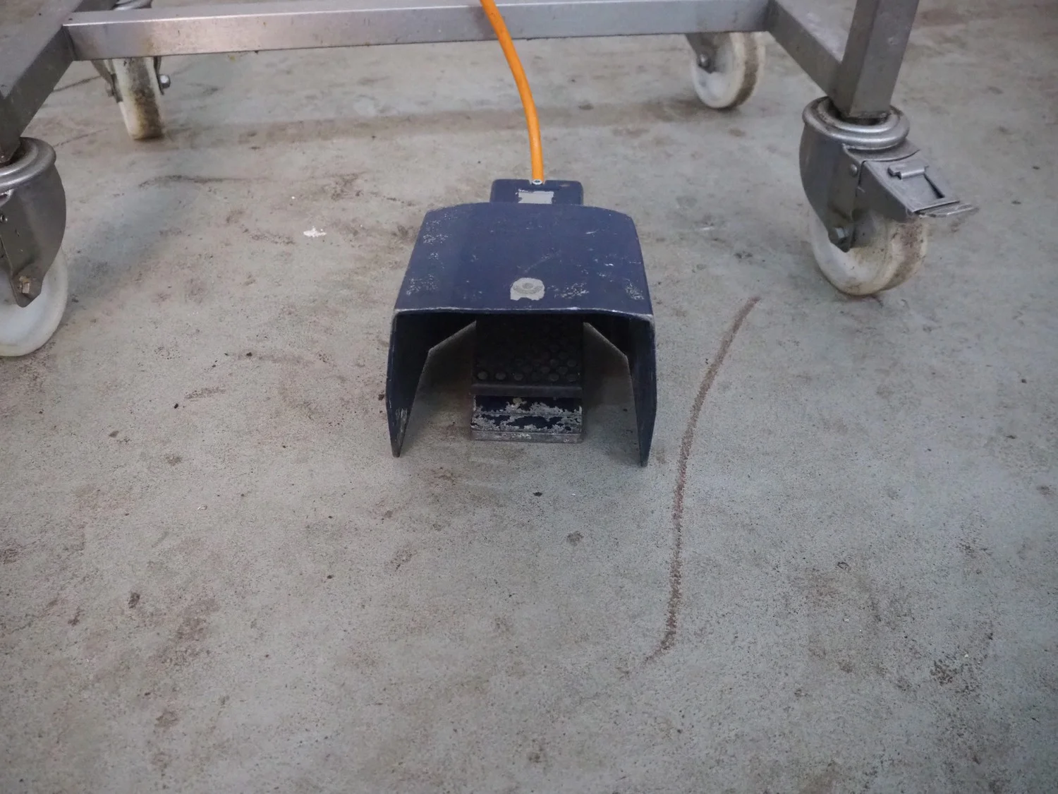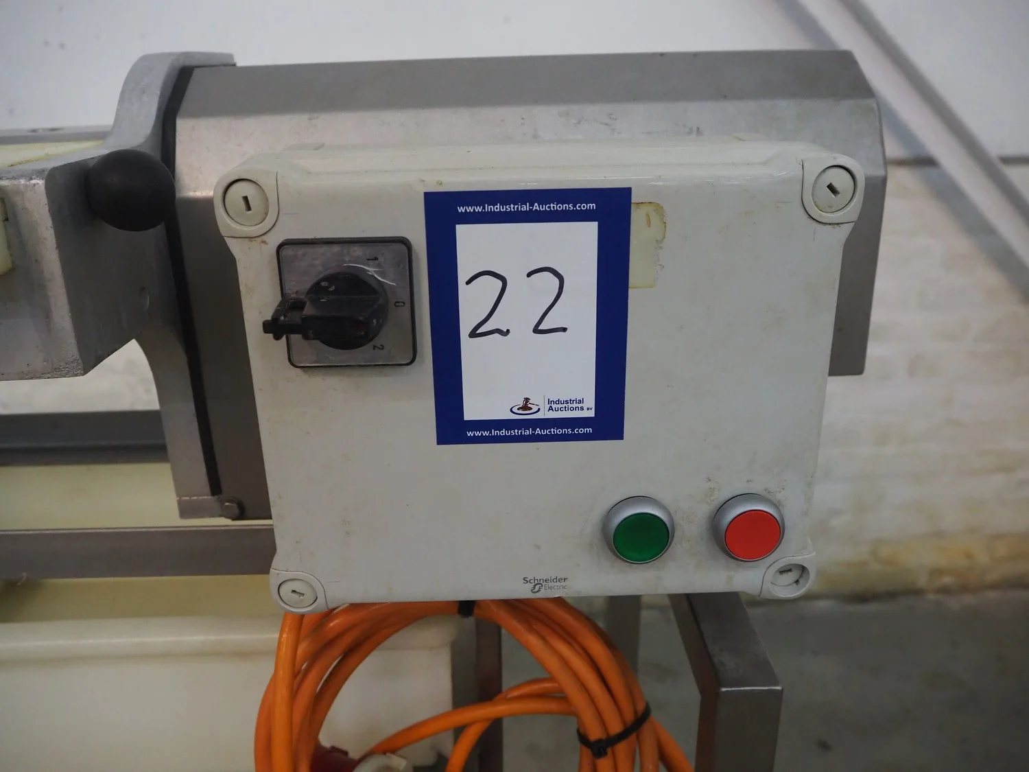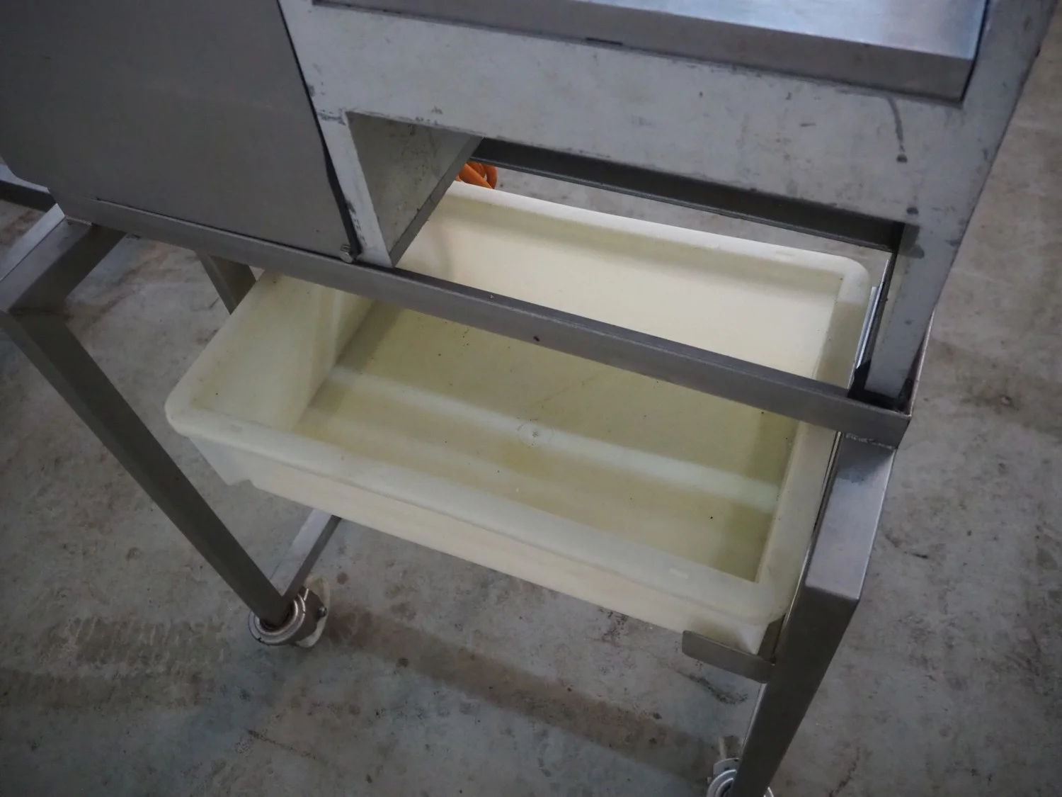 Steen mobile skinning machine, type: ST 111, serial number: 82711694 A, 380 V, 50/60 Hz, 1.35 A, 550 W, working width: 300 mm, total dimensions: 700 mm x 430 mm x 990 mm.