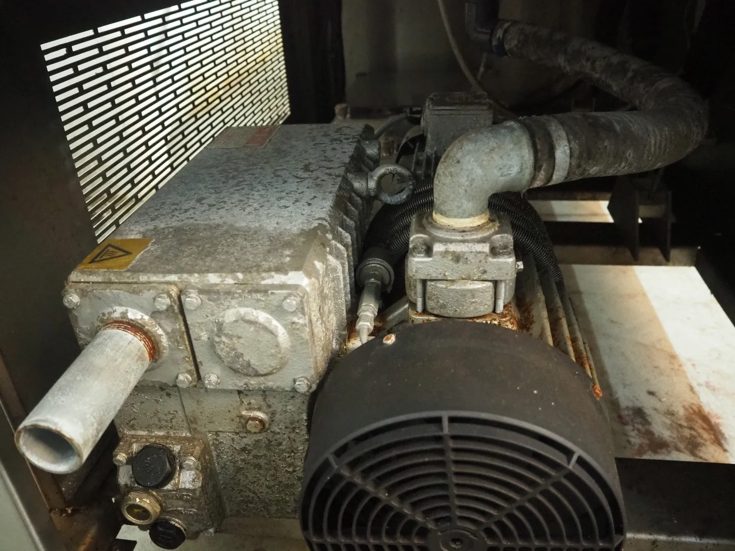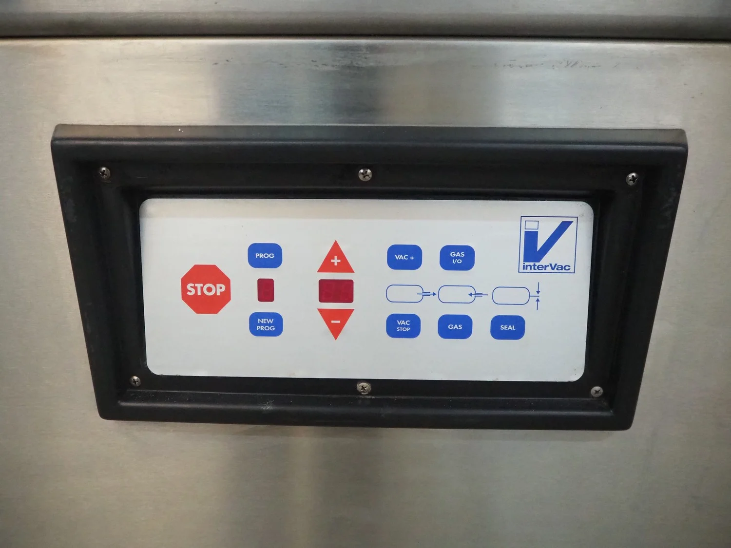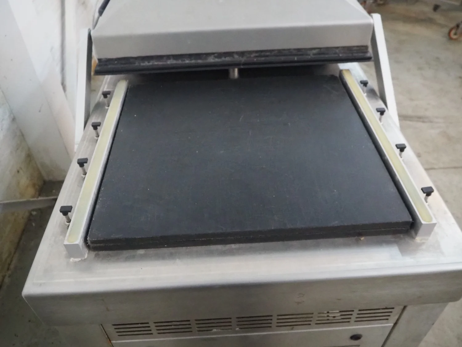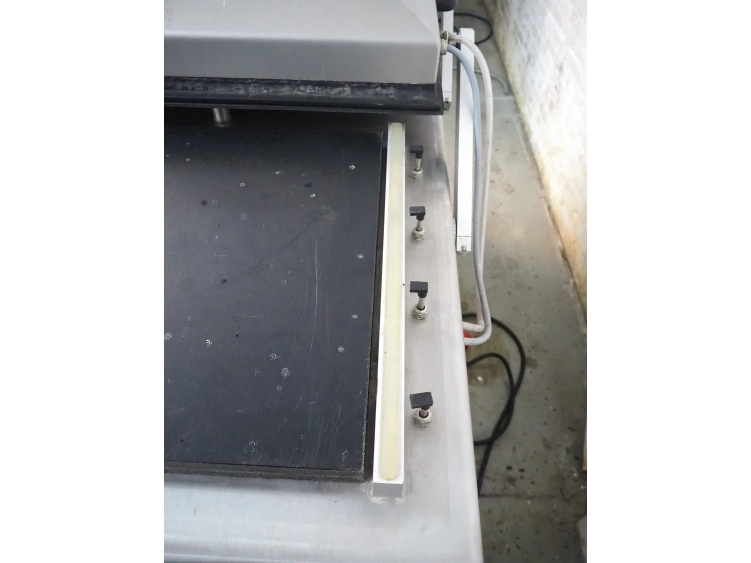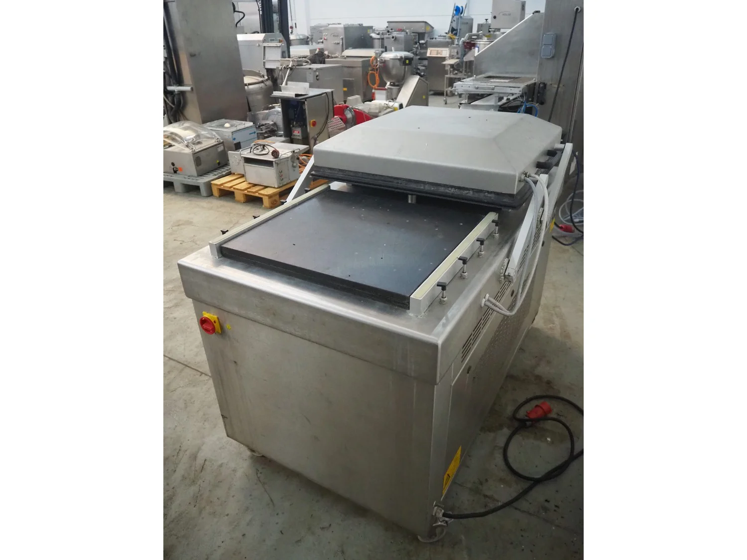 Intervac mobile double chamber vacuum machine, type: INV 11/11, number: 2466, year of construction: 2009, 230/400 V, 50 Hz, 2.5 kW, weight: 385 kg, seal length: (4x) 620 mm, dimensions chamber: (2x) 620 mm x 665 mm, Busch vacuum pump, type: RA 0100 F 5R3, year of construction: 2008, capacity: 100 m³ per hour, total dimensions: 1560 mm x 900 mm x 1250 mm.