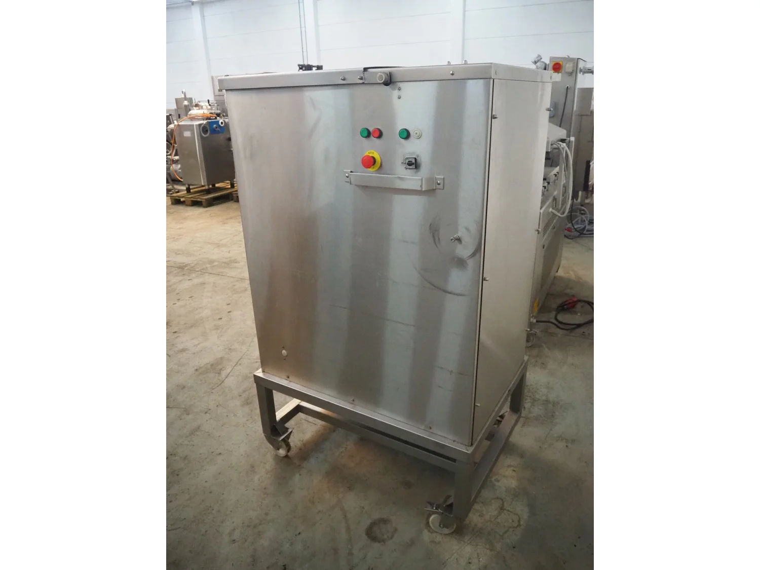 Koneteollisuus mobile mixer-grinder, type: LM-42 A, number: 122948, year of construction: 1999, 380-420 V, 3 Ph, 50 Hz, 7.5 + 1.1 kW, 16.7 + 3.1 A, 1420 rates per minute, weight: 390 kg, plate diameter: 130 mm, total dimensions: 1100 mm x 700 mm x 1630 mm.