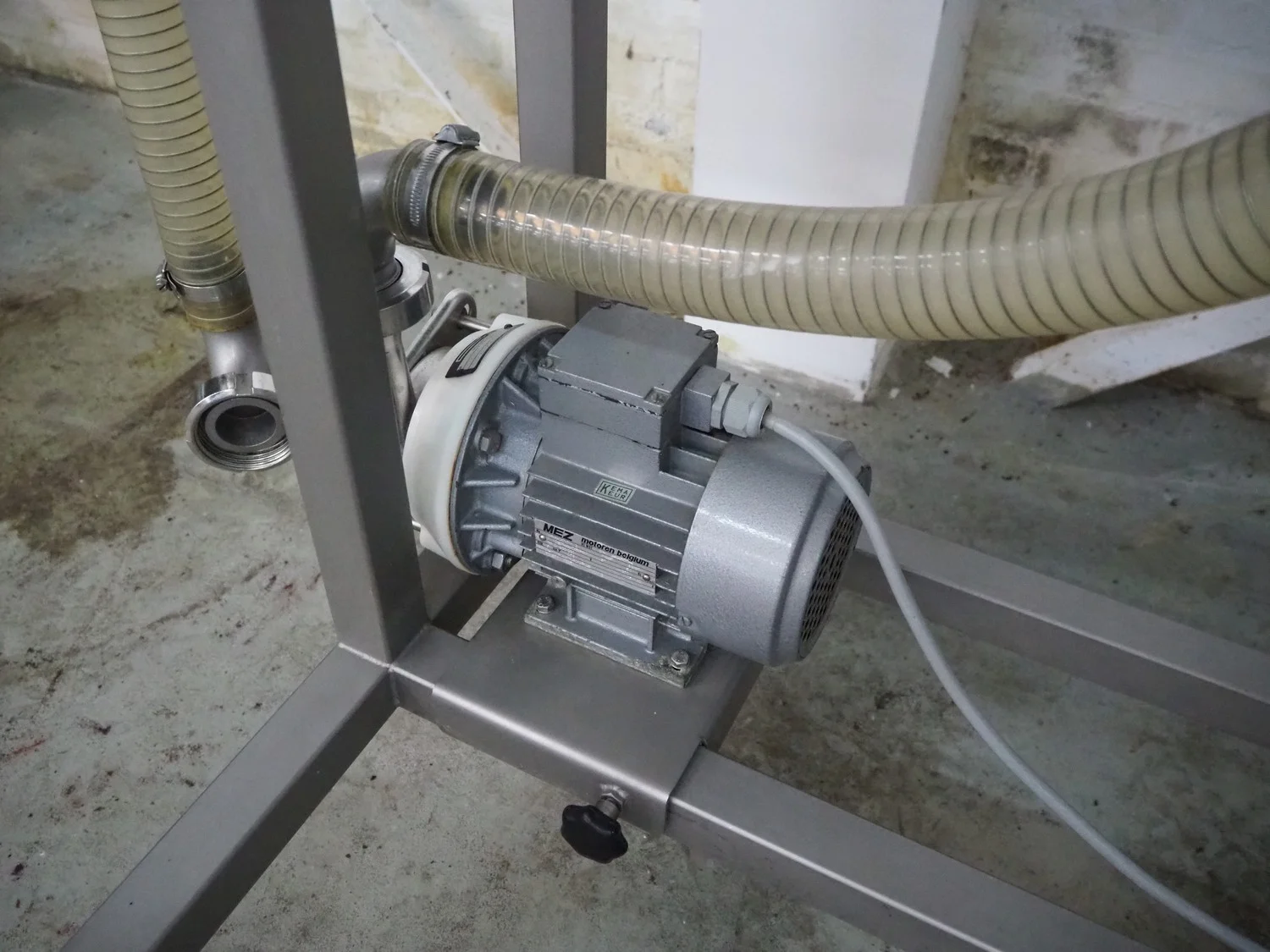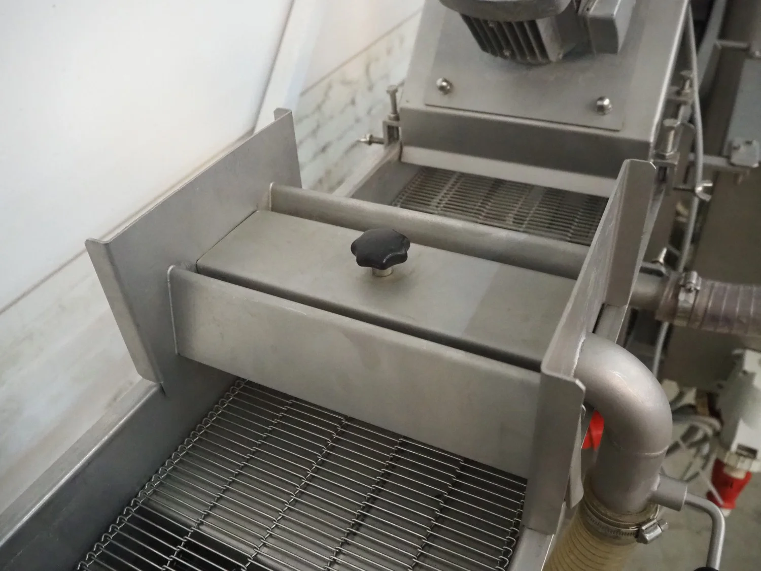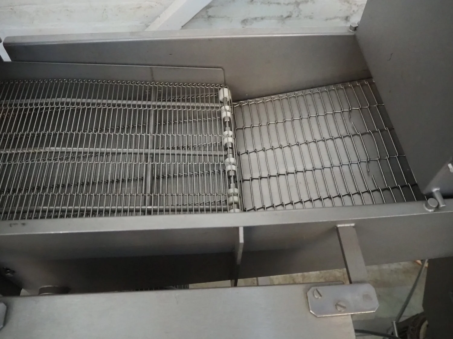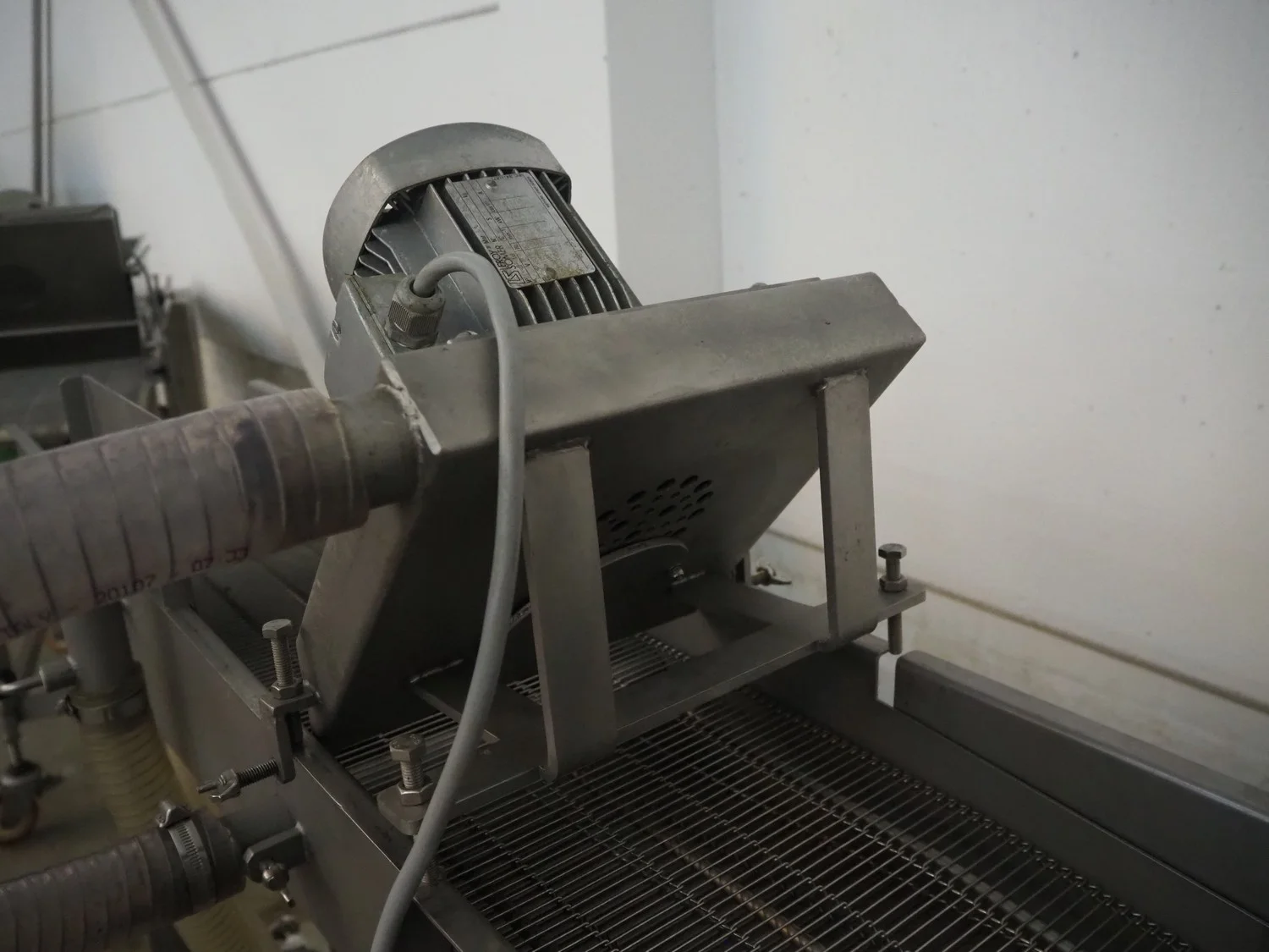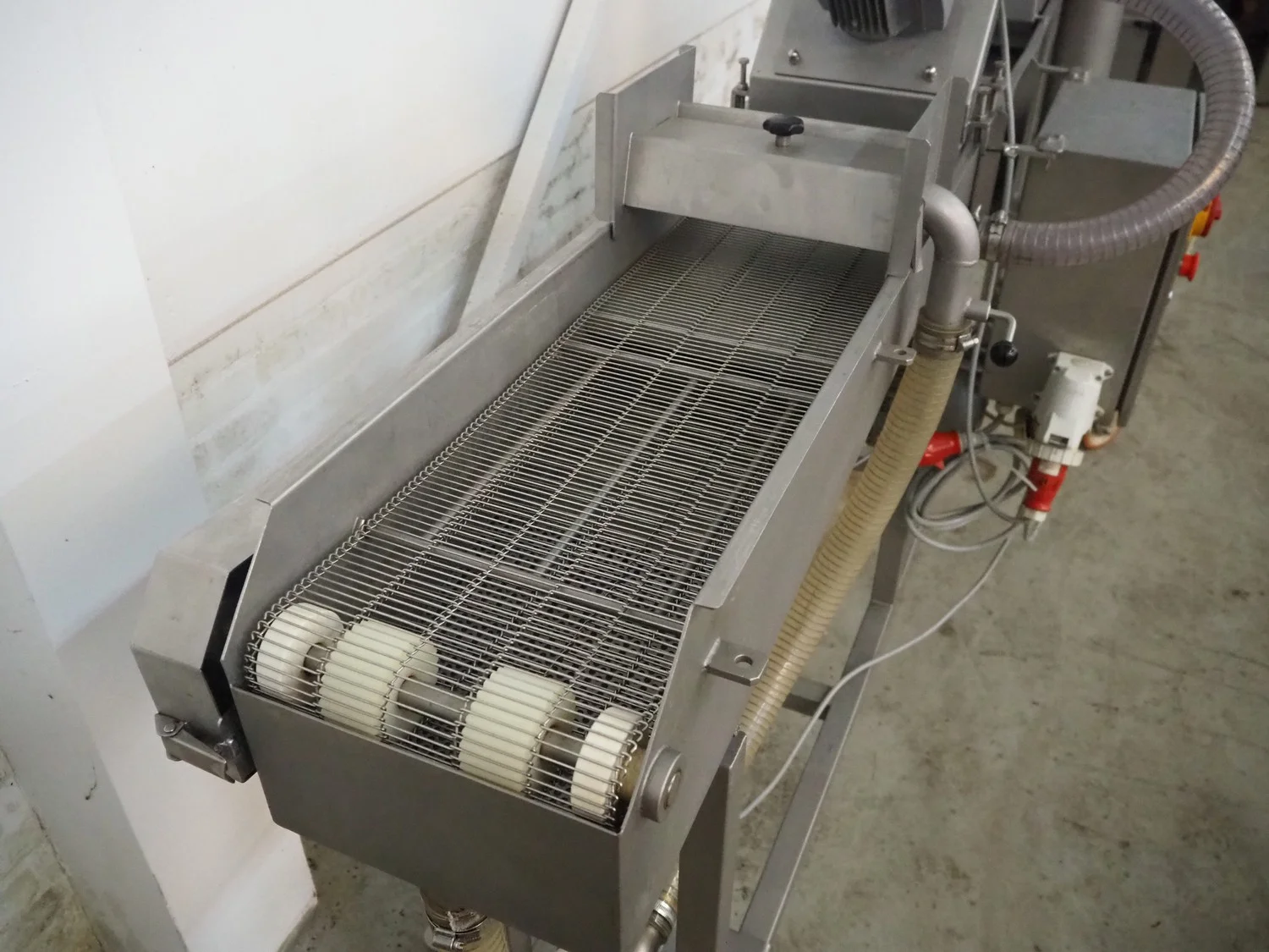 Stork Titan B.V. mobile breading machine, model: TEPM 250, machine number: 4T 211330, year of construction: 1998, 380 V, 3 Ph, 50 Hz, 1.5 kW, s/s mesh belt, belt width: 250 mm, total dimensions: 2500 mm x 700 mm x 1670 mm.
