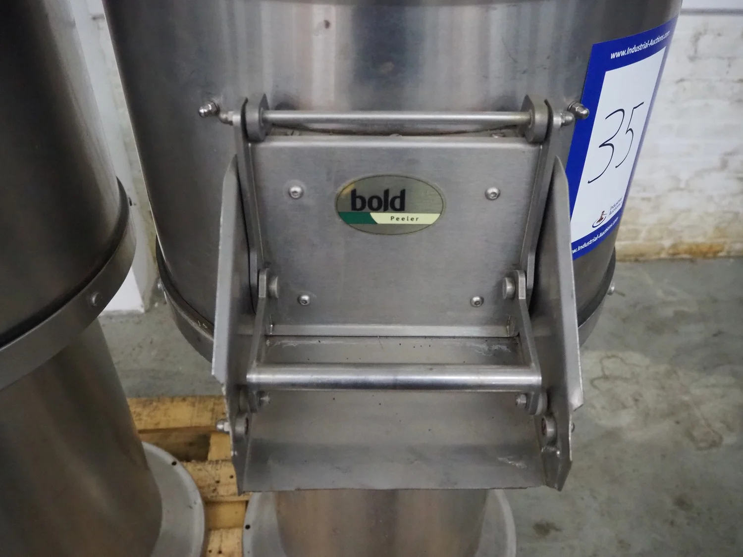 Bold Catering Equipment drum peeler, model: B56, serial number: 564000, year of construction: 2008, 220-240 V, 50 Hz, 5.4 A, 750 W, diameter infeed: 230 mm, dimensions drum: ø 530 mm x 150 mm, total dimensions: 700 mm x 550 mm x 1250 mm.