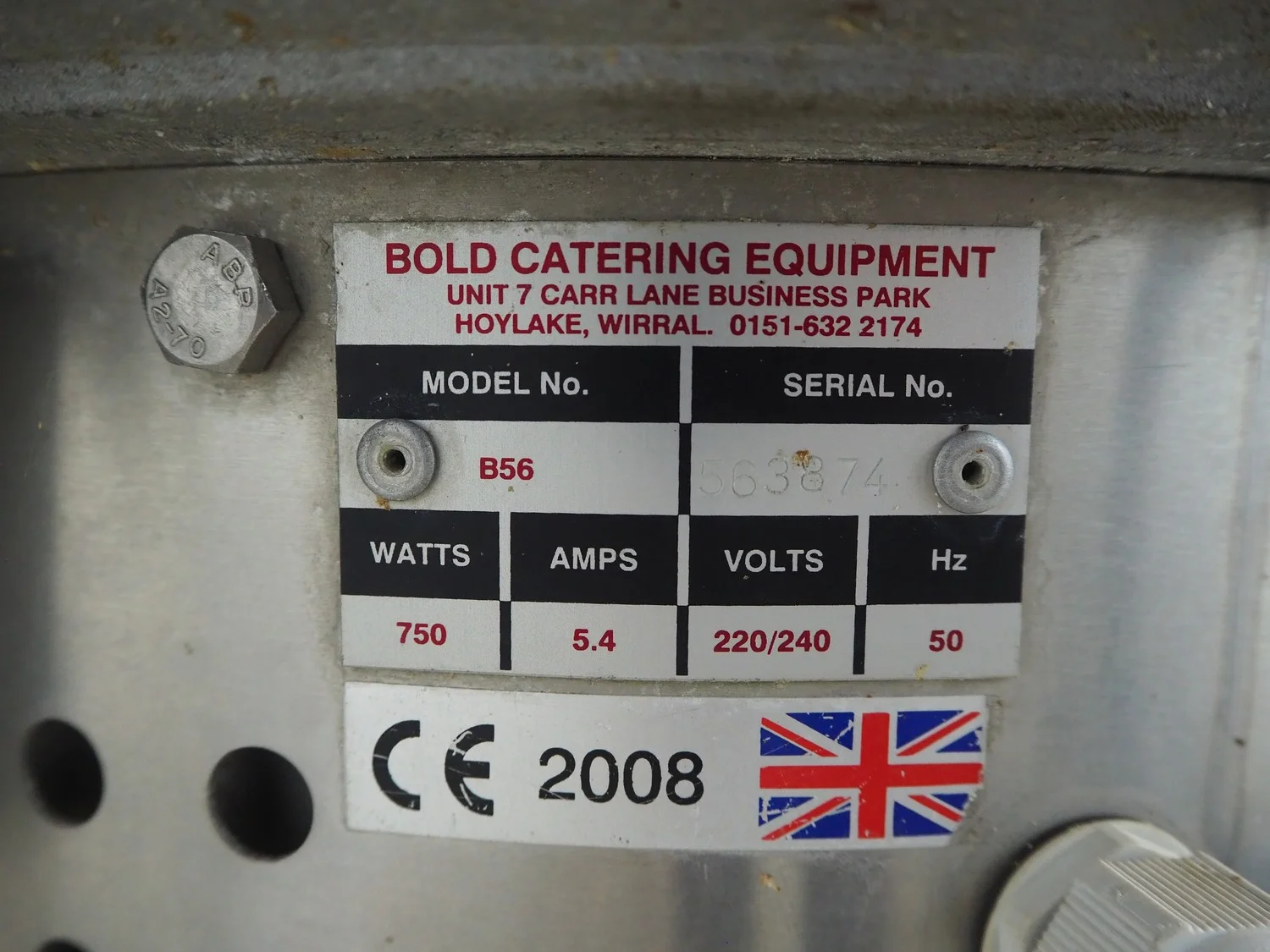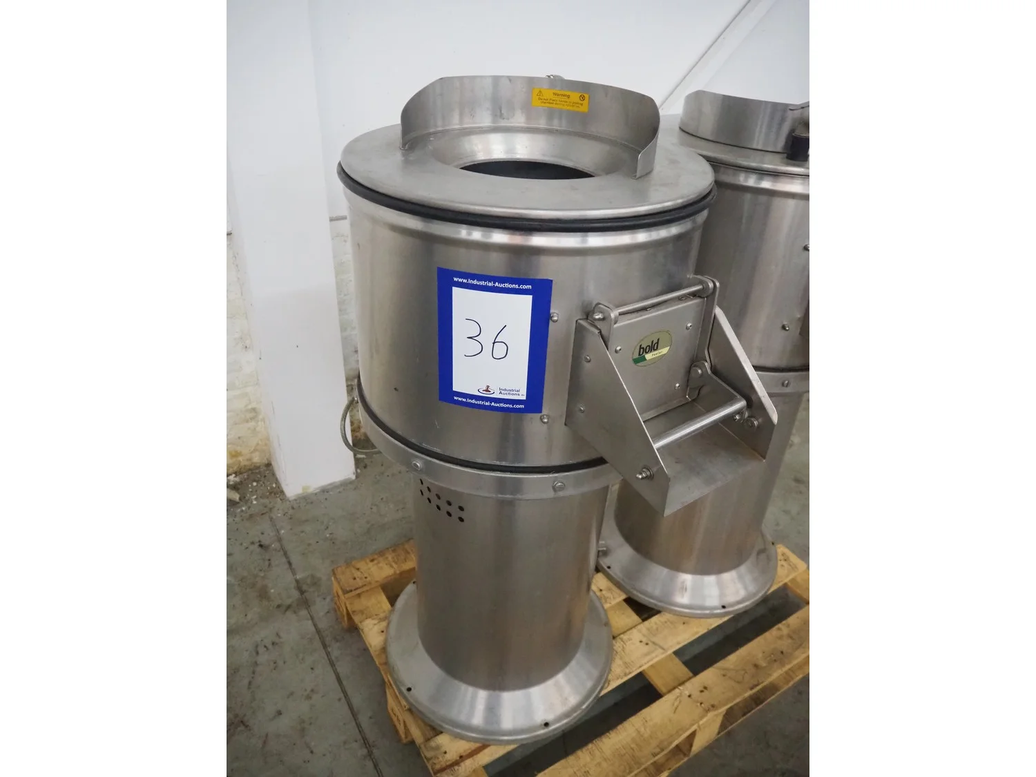 Bold Catering Equipment drum peeler, model: B56, serial number: 563874, year of construction: 2008, 220-240 V, 50 Hz, 5.4 A, 750 W, diameter infeed: 230 mm, dimensions drum: ø 530 mm x 150 mm, total dimensions: 700 mm x 550 mm x 1250 mm.