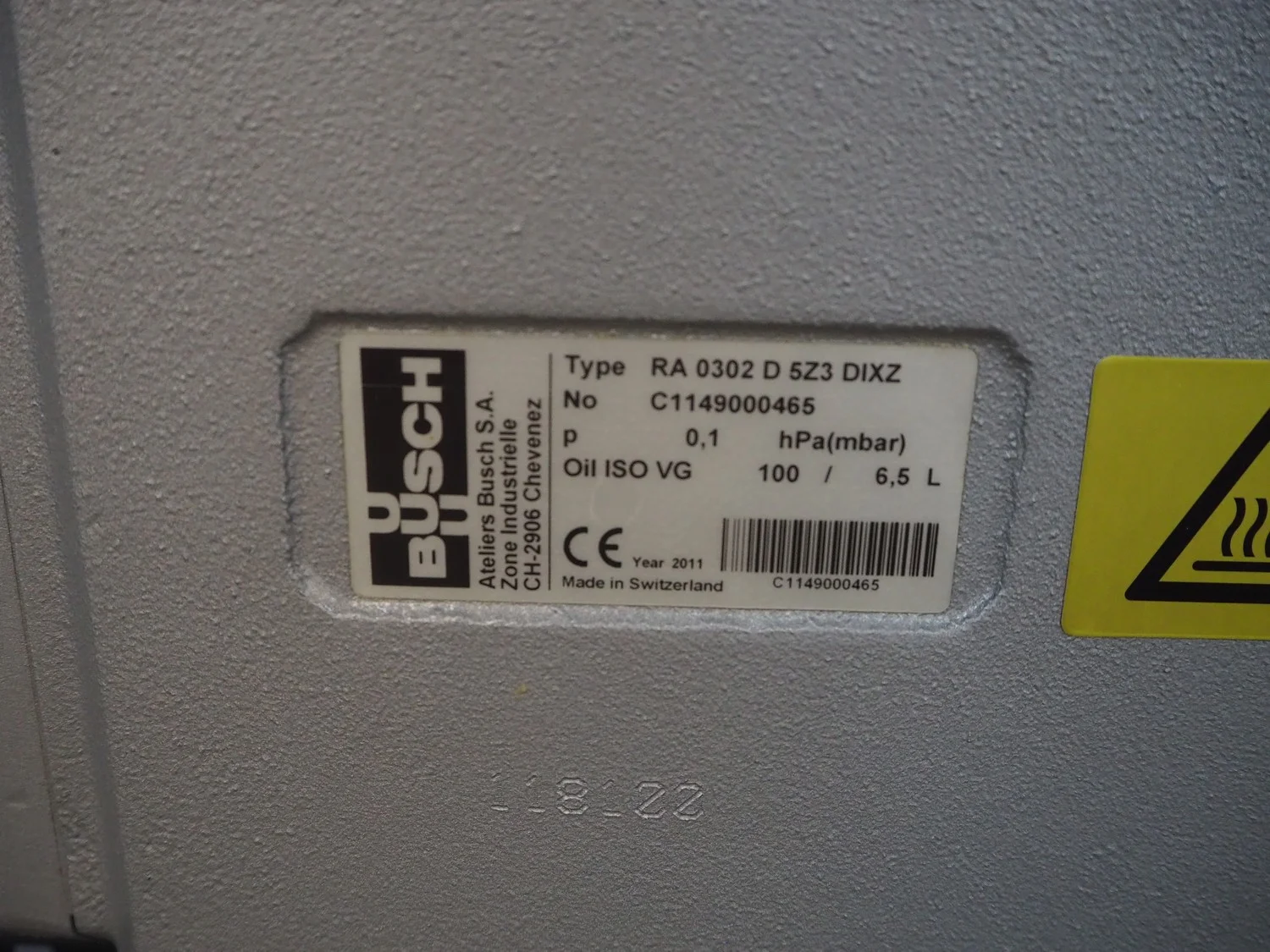 Busch vacuum pump, type: RA 0302 D 5Z3 DIXZ, number: C1149000465, year of construction: 2011, capacity: 300 m³ per hour, dimensions: 1050 mm x 550 mm x 500 mm.