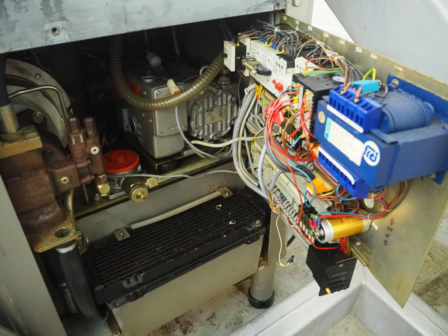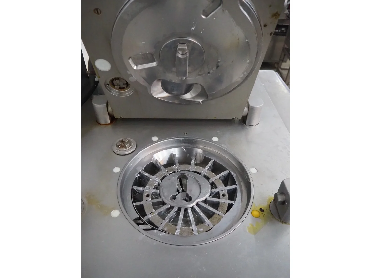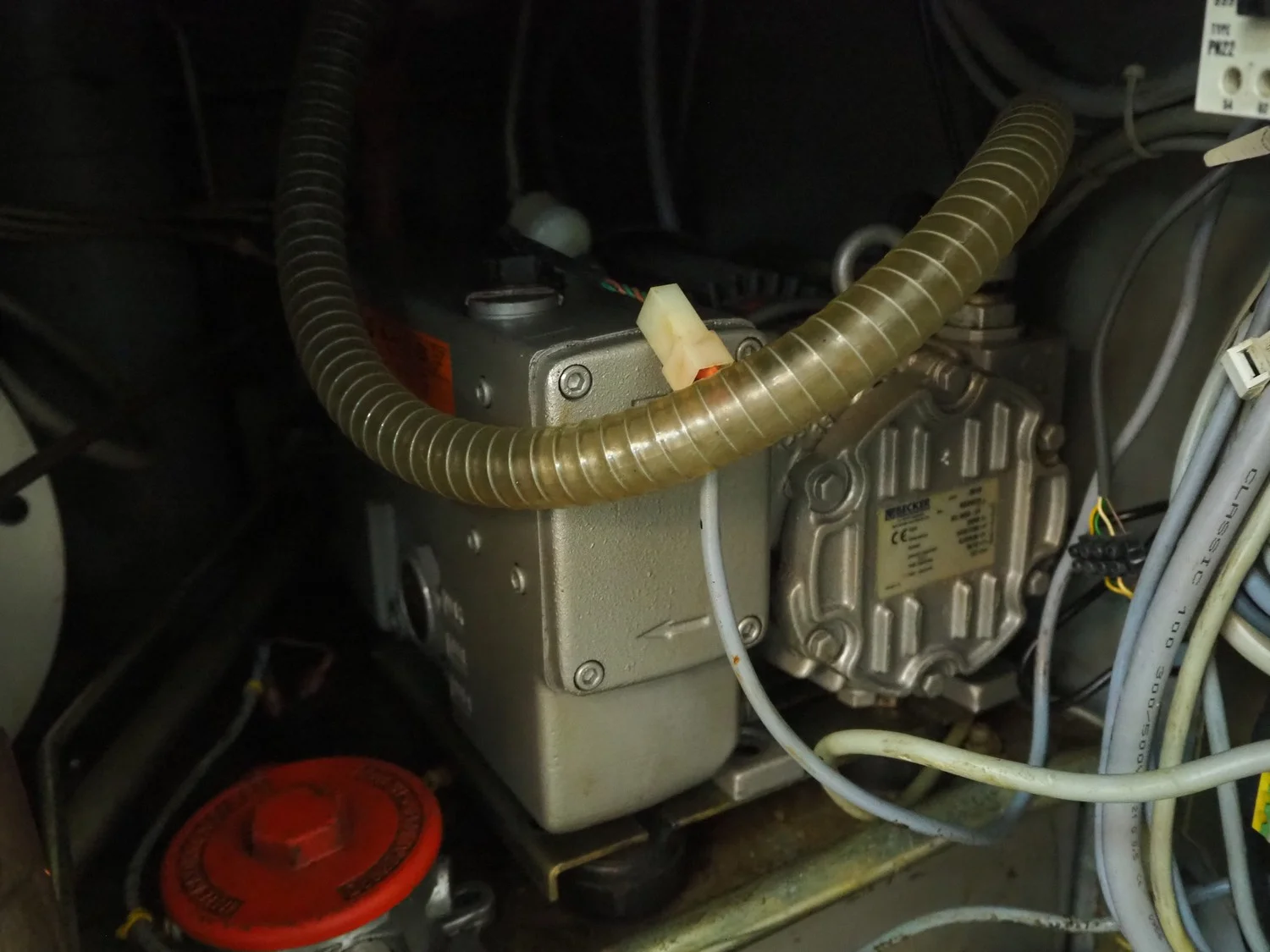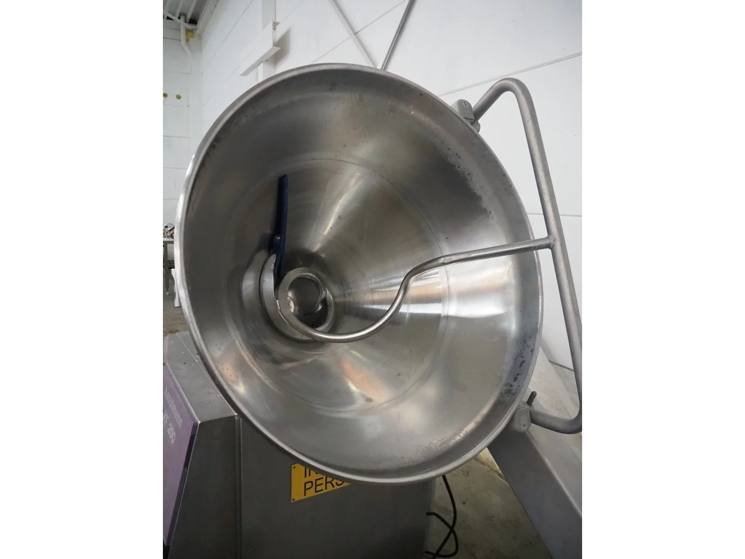 Handtmann vacuum filling machine with lifter for 200 liter meat bins, type: VF200B, year of construction: 1991, Becker vacuum pump, type: U 1.16SA-31, number: B3328576, year of construction: 2019, 50/60 Hz, 0.52/0.65 kW, capacity: 16/19 m³ per hour, with linking attachment, type: 34-4, number: 1665, dimensions: 1600 mm x 1300 mm x 1900 mm.