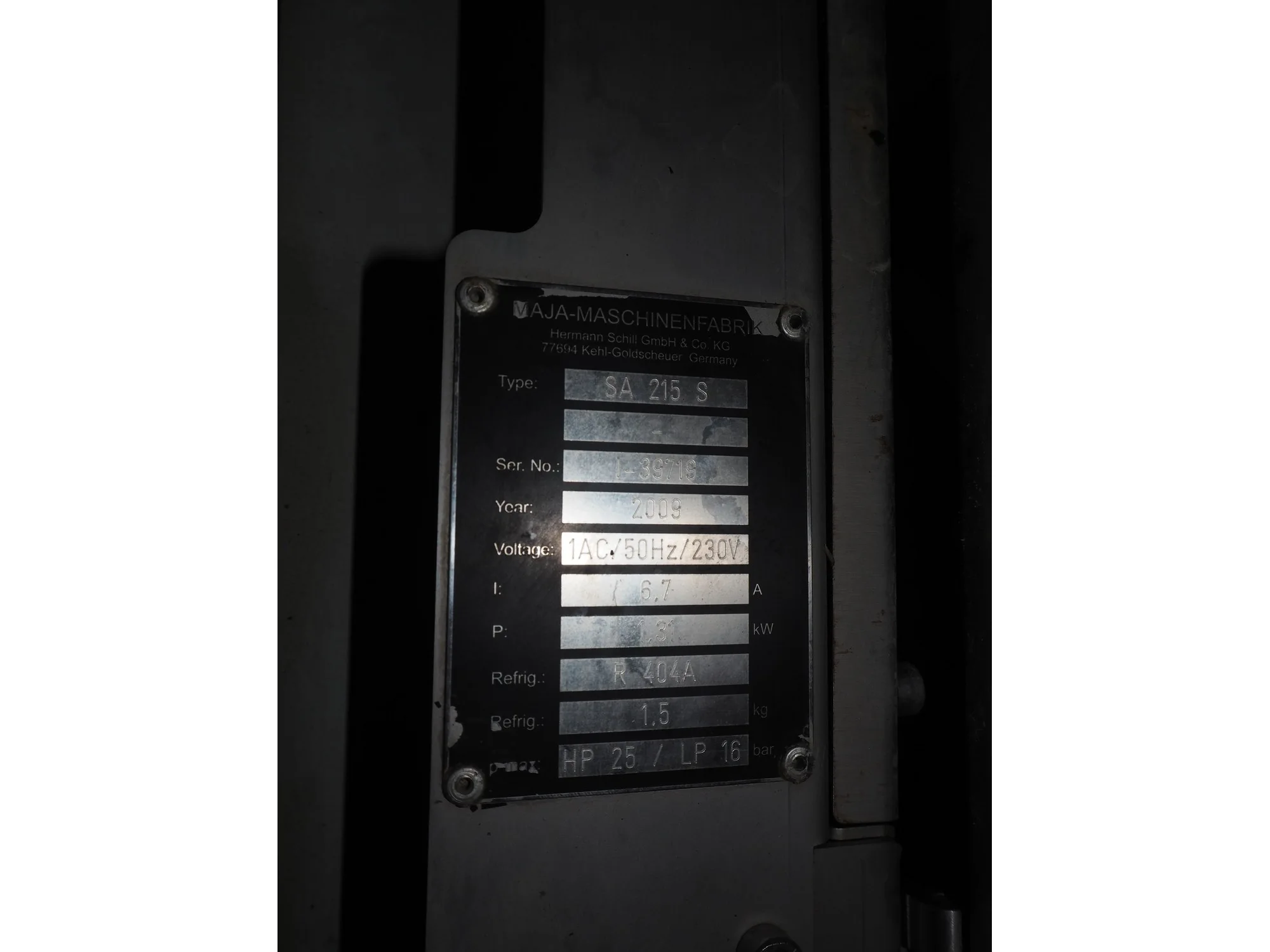 Maja-Maschinenfabrik ice machine, type: SA 215 S, serial number: I-39719, year of construction: 2009, 230 V, 1 Ph, 50 Hz, 1.31 kW, 6.7 A, refrigerant: R404A, 1.5 kg, dimensions: 780 mm x 600 mm x 800 mm.