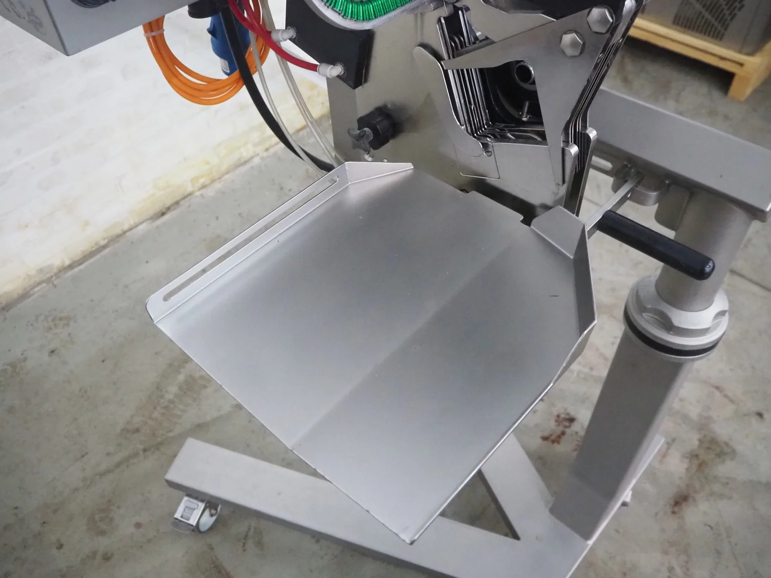 Poly-clip System GmbH & Co.KG mobile double clipper, type: PDC 700, number: 3299, year of construction: 2015, 400 V, 3 Ph, 50/60 Hz, 1 A, 0.1 kW, 5-7 bar, dimensions: 1200 mm x 820 mm x 1900 mm.