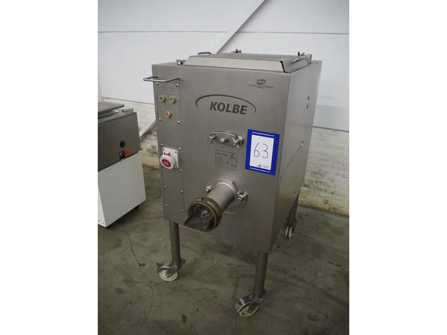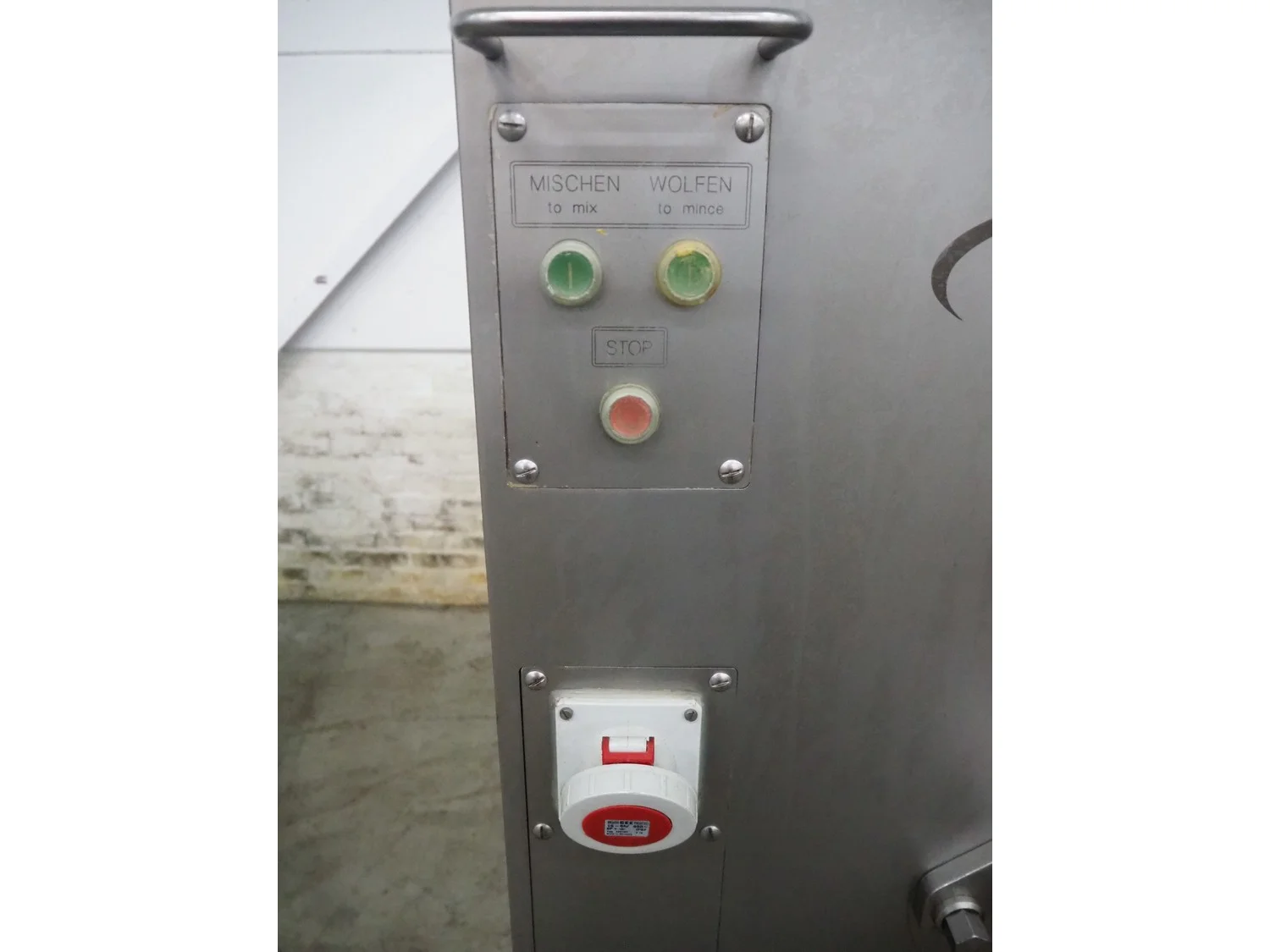 Kolbe mobile mixer-grinder, type: MW 100, machine number: 124 0234, year of construction: 2007, 400 V, 50 Hz, 5.5 + 0.75 kW, 11.4 + 2.4 A, ø plate: 98 mm, total dimensions: 1400 mm x 700 mm x 1480 mm.