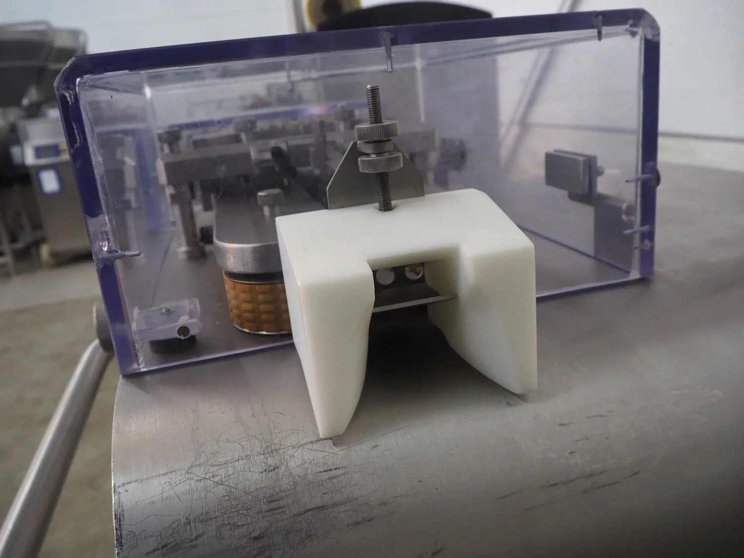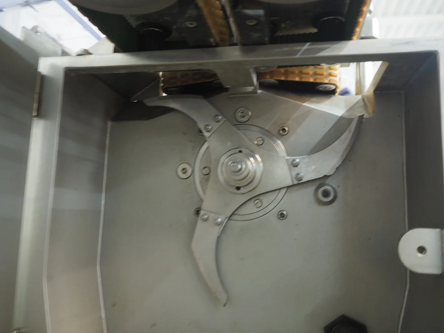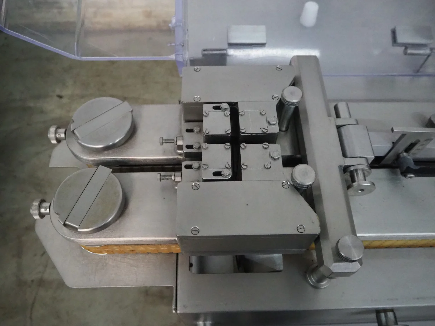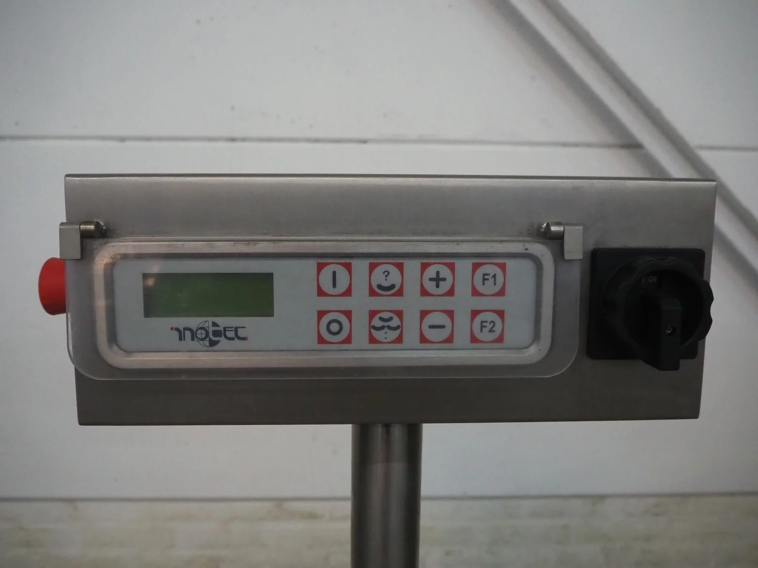 Inotec mobile sausage cutter, type: WT 99-DS, number: 008-052, year of construction: 2014, 200/460 V, 2 Ph, 50/60 Hz, 5/12 A, 2 kW, weight: 290 Kg, dimensions: 880 mm x 850 mm x 1500 mm. Including extra knives.