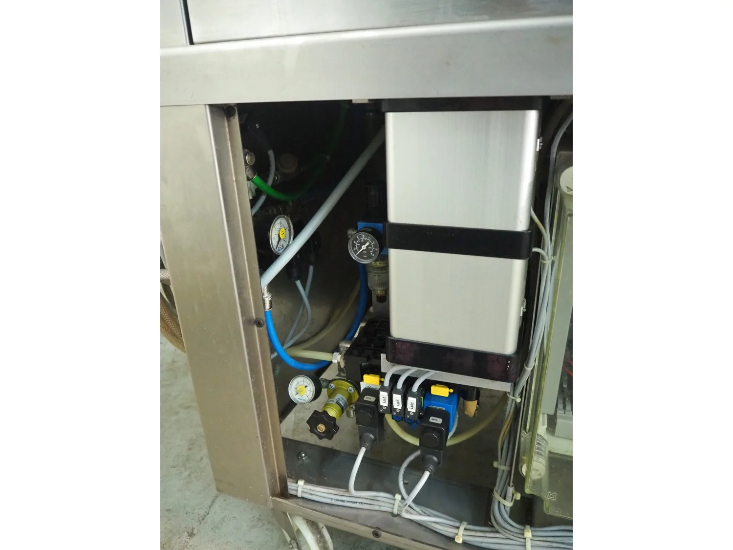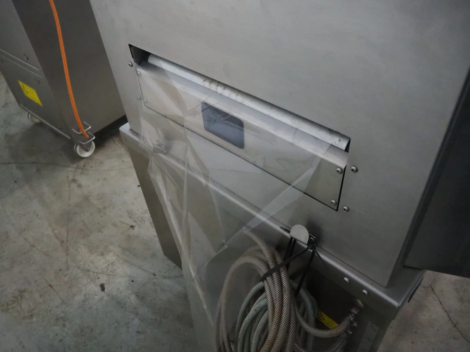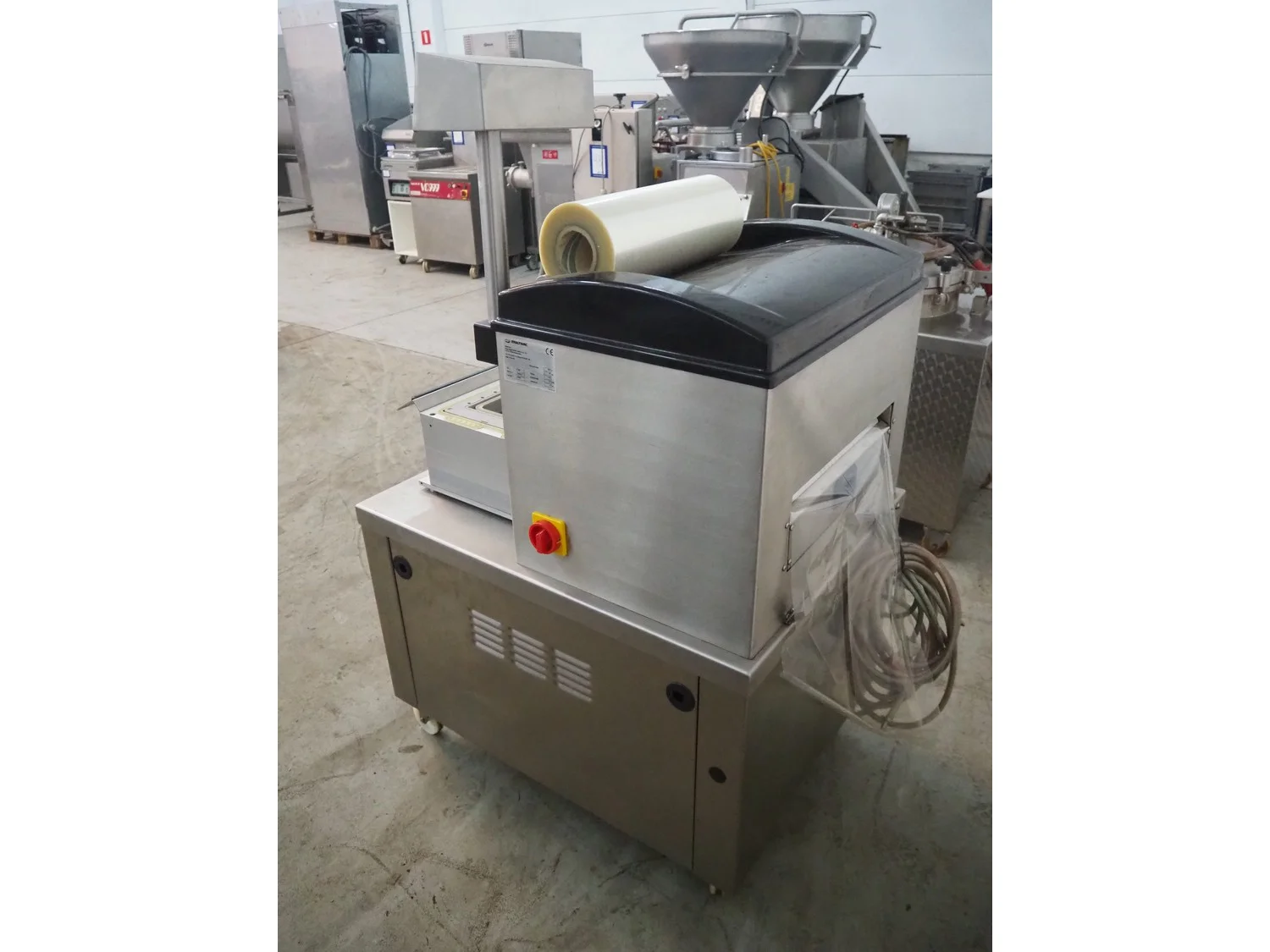 Multivac mobile traysealer, type: T200, number: 109423, year of construction: 2006, 400 V, 3 Ph, 50 Hz, 11 A, 4.5 kW, dye: 320 mm x 260 mm, film width: 445 mm, Busch vacuum pump, RA 0063 E, number: 060086084, year of construction: 2006, capacity: 63 m³ per hour, total dimensions: 1000 mm x 800 mm x 1650 mm.