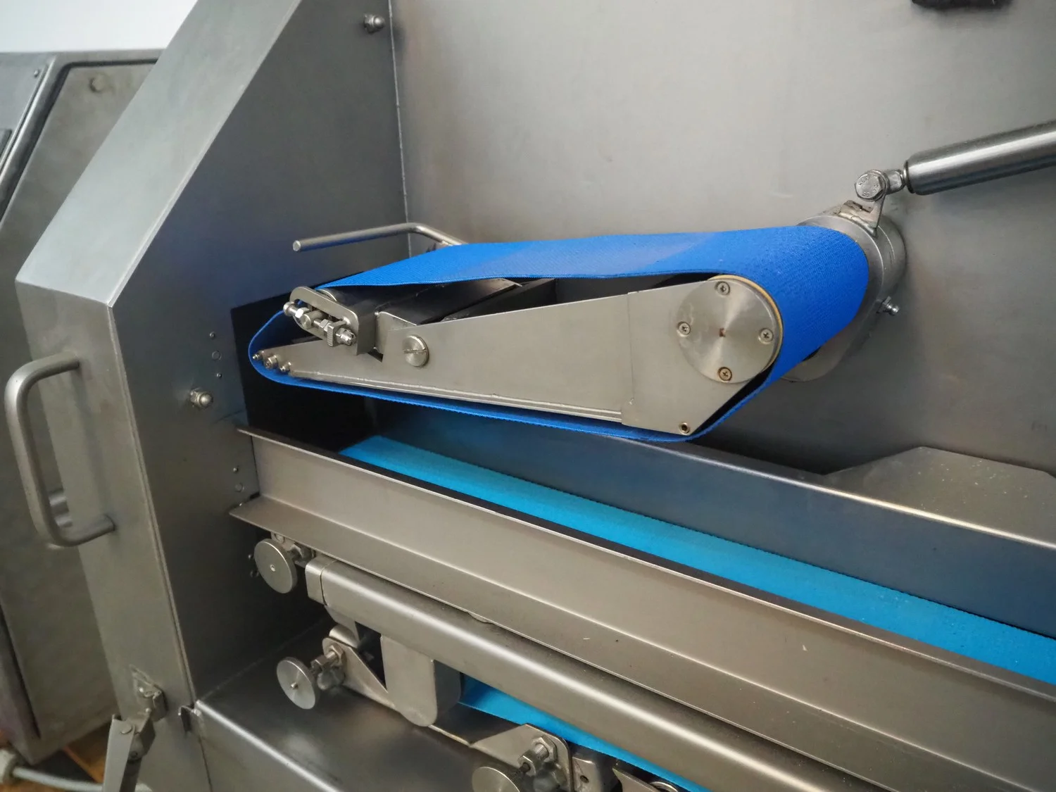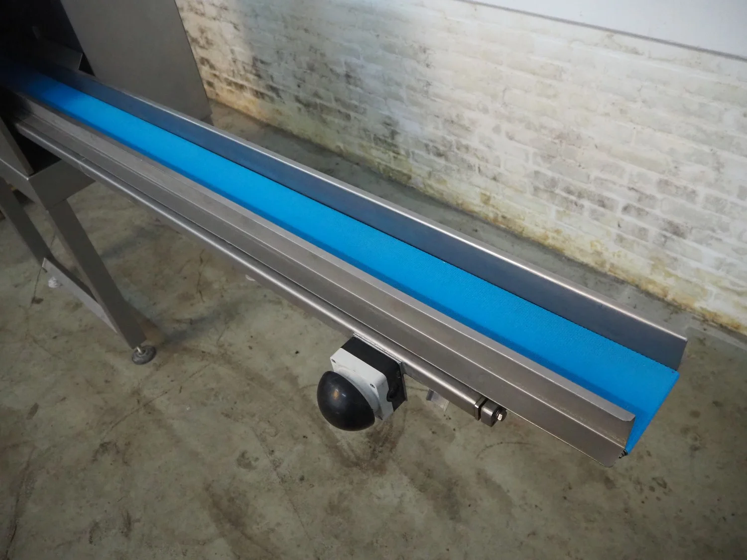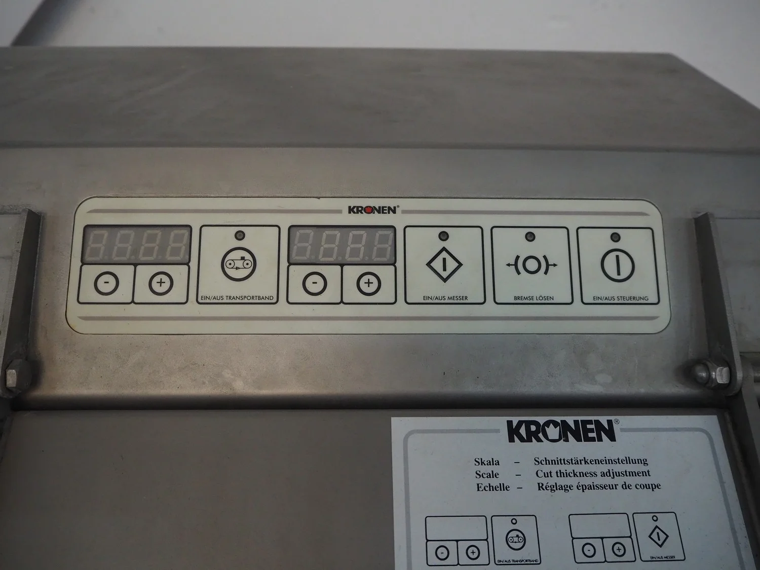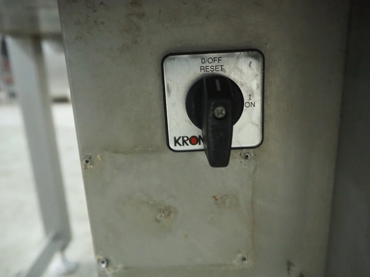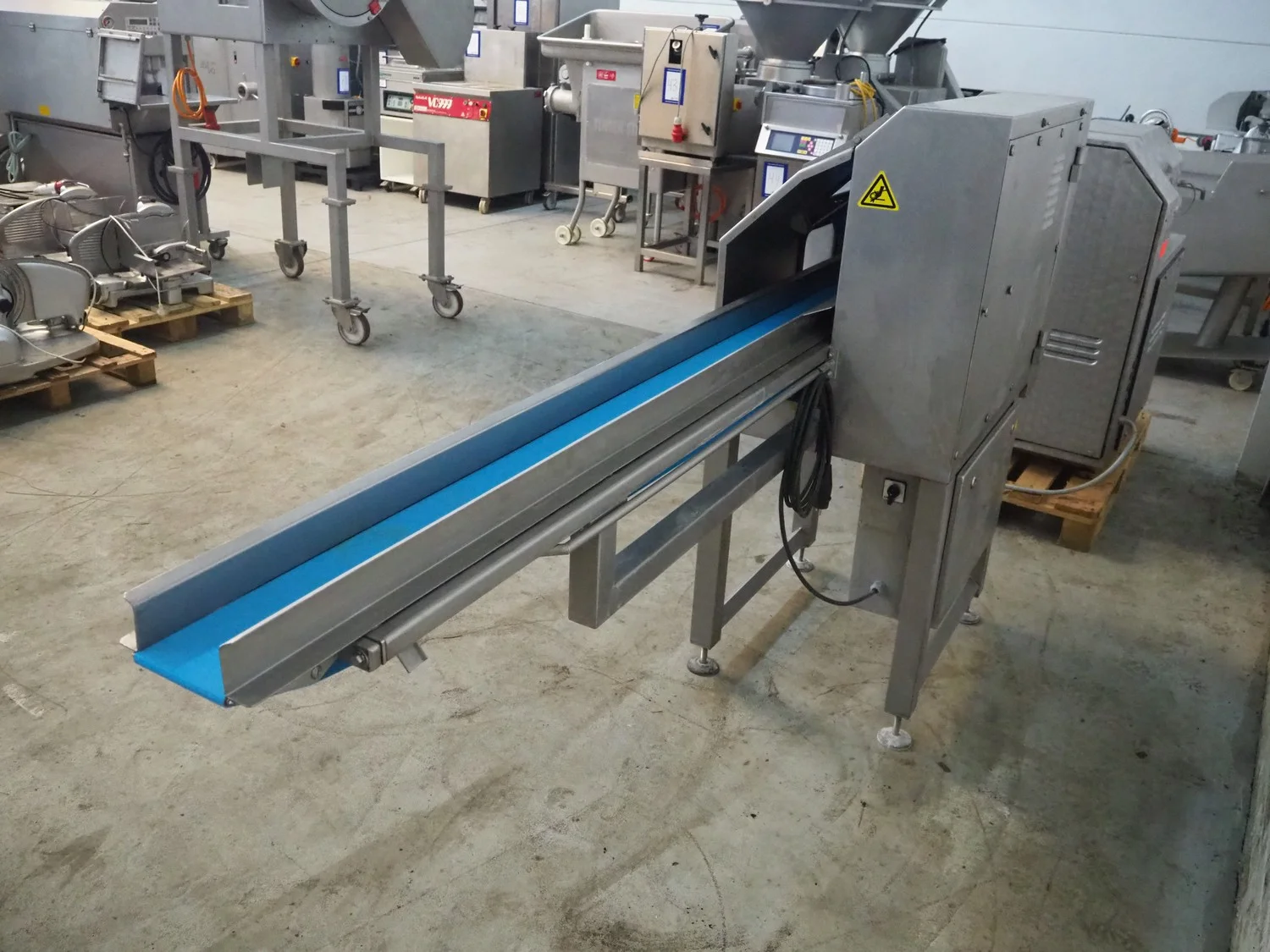 Kronen mobile slicer, plastic belt, belt width: 130 mm, clearance: 120 mm x 120 mm, total dimensions: 2560 mm x 600 mm x 1400 mm.