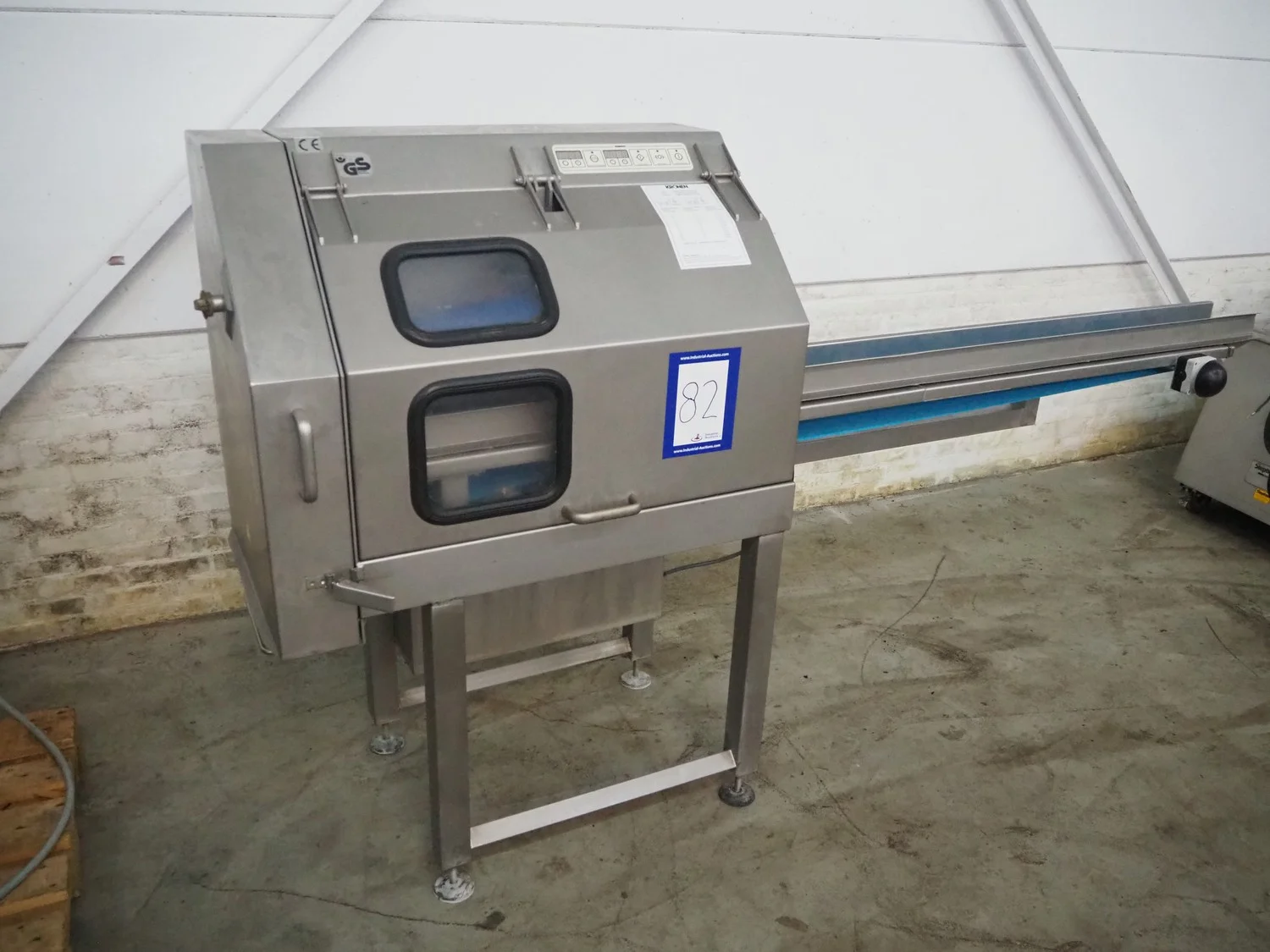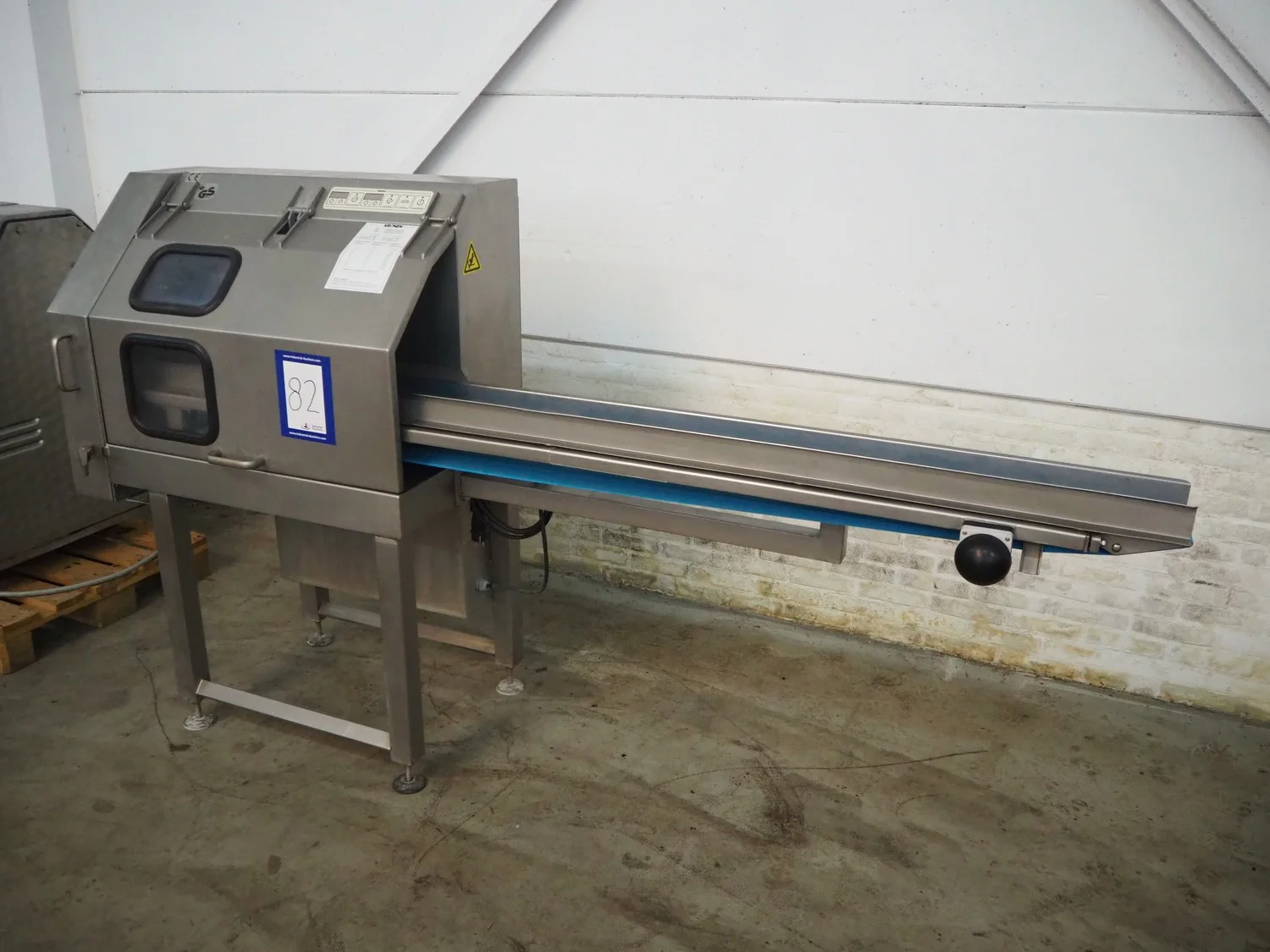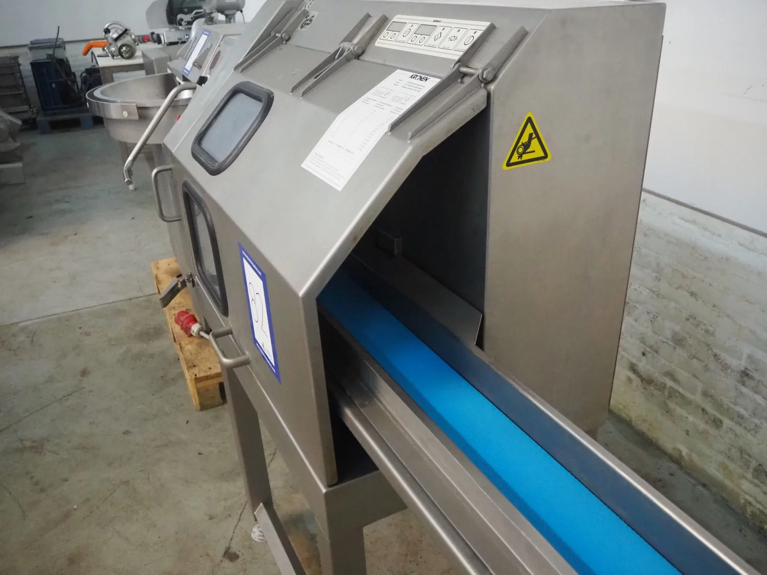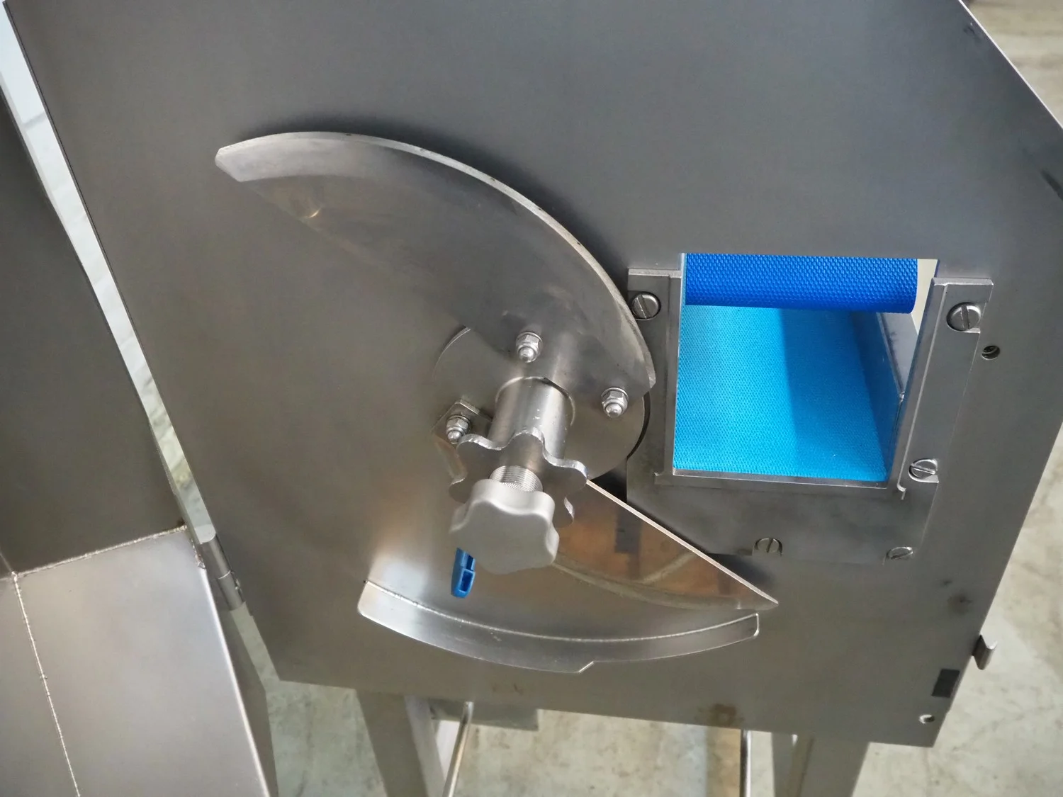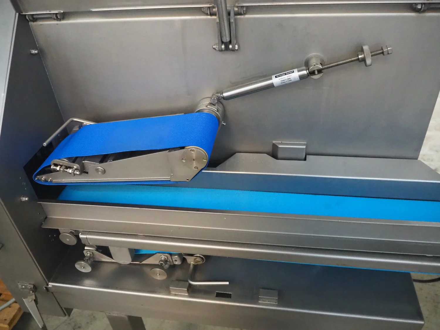 Kronen mobile slicer, plastic belt, belt width: 130 mm, clearance: 120 mm x 120 mm, total dimensions: 2560 mm x 600 mm x 1400 mm.
