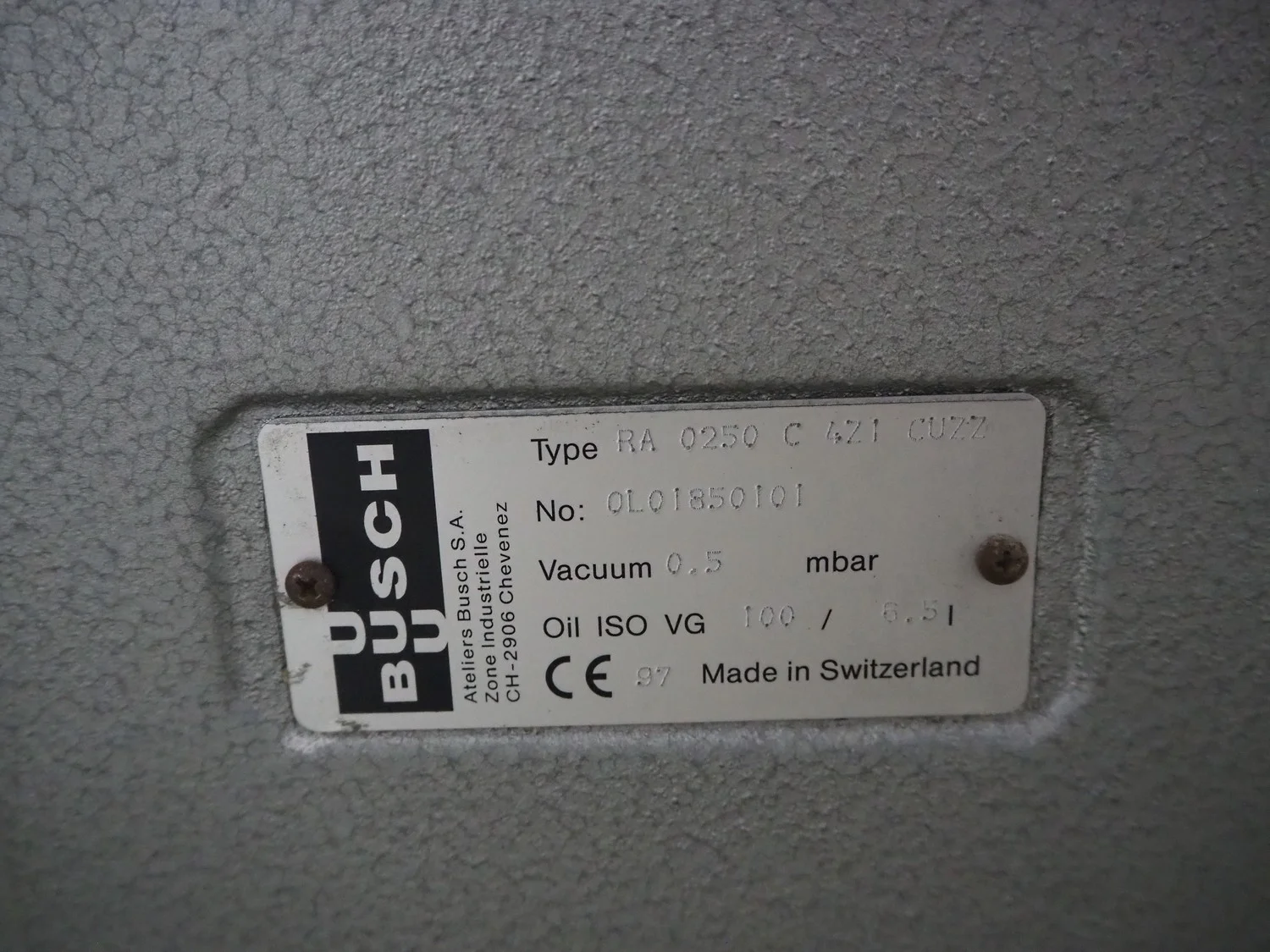Busch vacuum pump, type: RA 0250 C 4Z1 CUZZ, number: 0L01850101, capacity: 250 m³ per hour, dimensions: 980 mm x 500 mm x 400 mm.