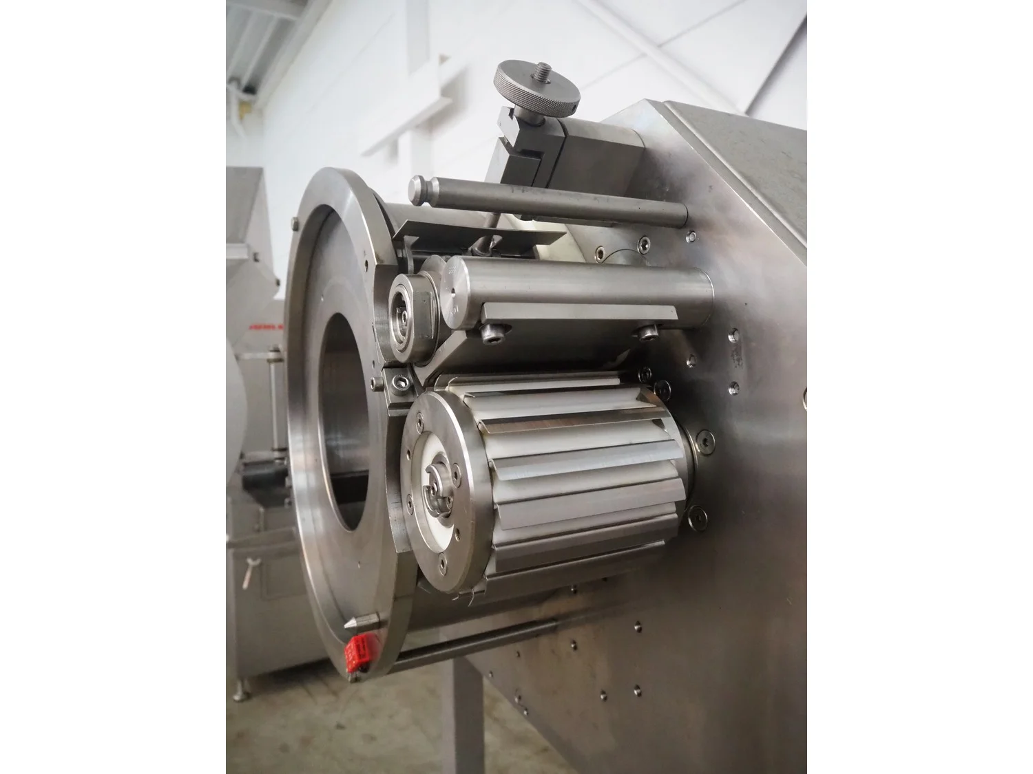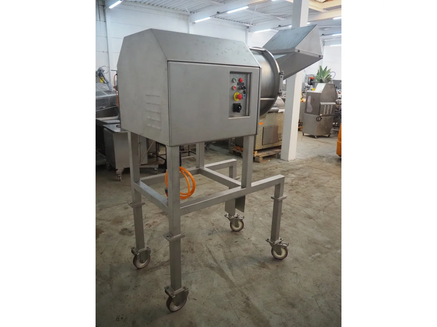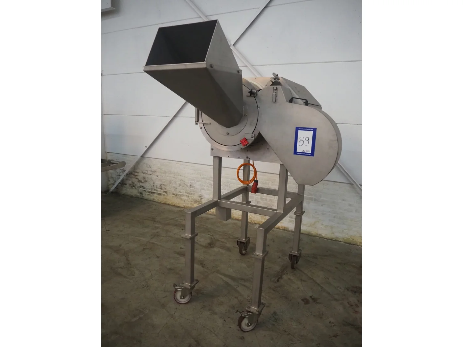 FAM n.v. mobile dicer, type: Flexifam, serial number: 6306, year of construction: 2005, 415 V, 3 Ph, 50 Hz, 1.5 kW, weight: 300 kg, distance between knives: 10 mm, dimensions infeed: 420 mm x 275 mm, total dimensions: 1700 mm x 1150 mm x 2180 mm.