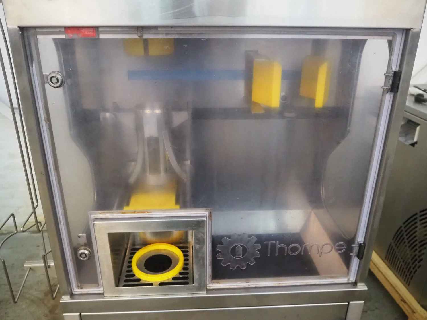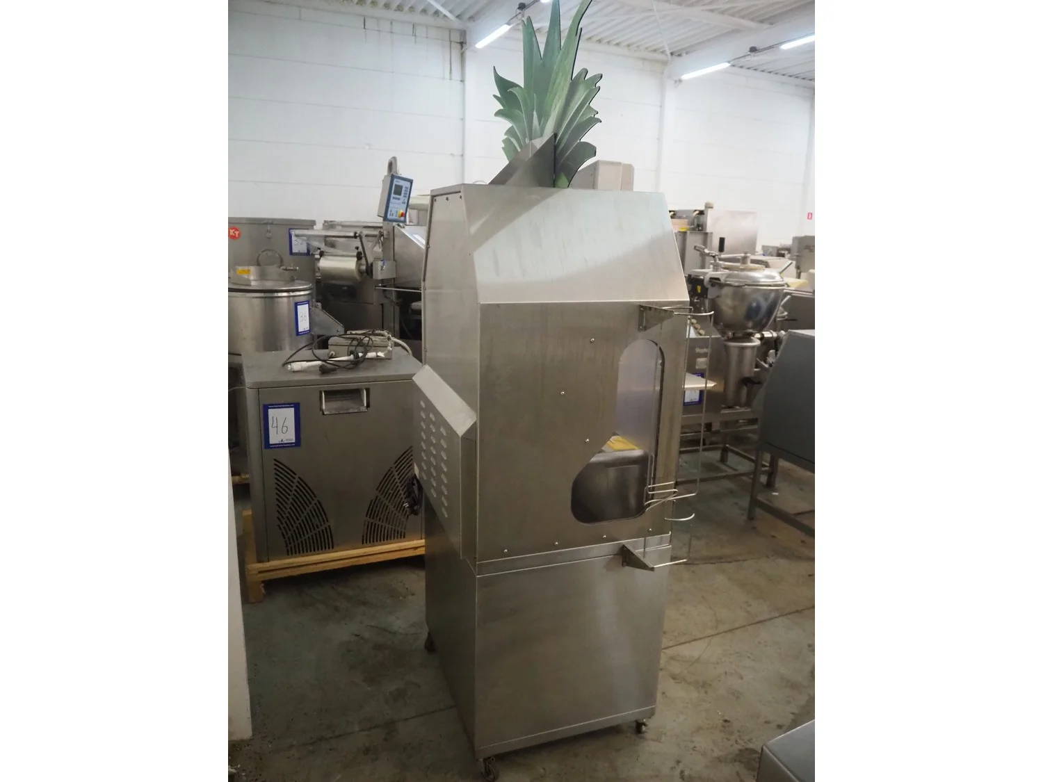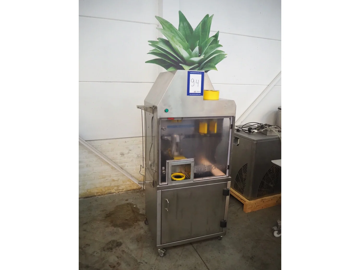 Thompe pineapple cutter, serial number: PS02-0120, year of construction: 2019, 230 V, 50 Hz, 530 W, diameter clearance: 80 mm, total dimensions: 880 mm x 600 mm x 2250 mm.
