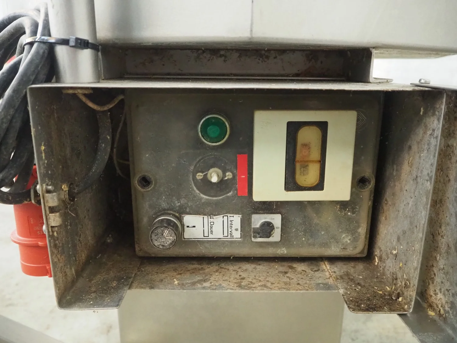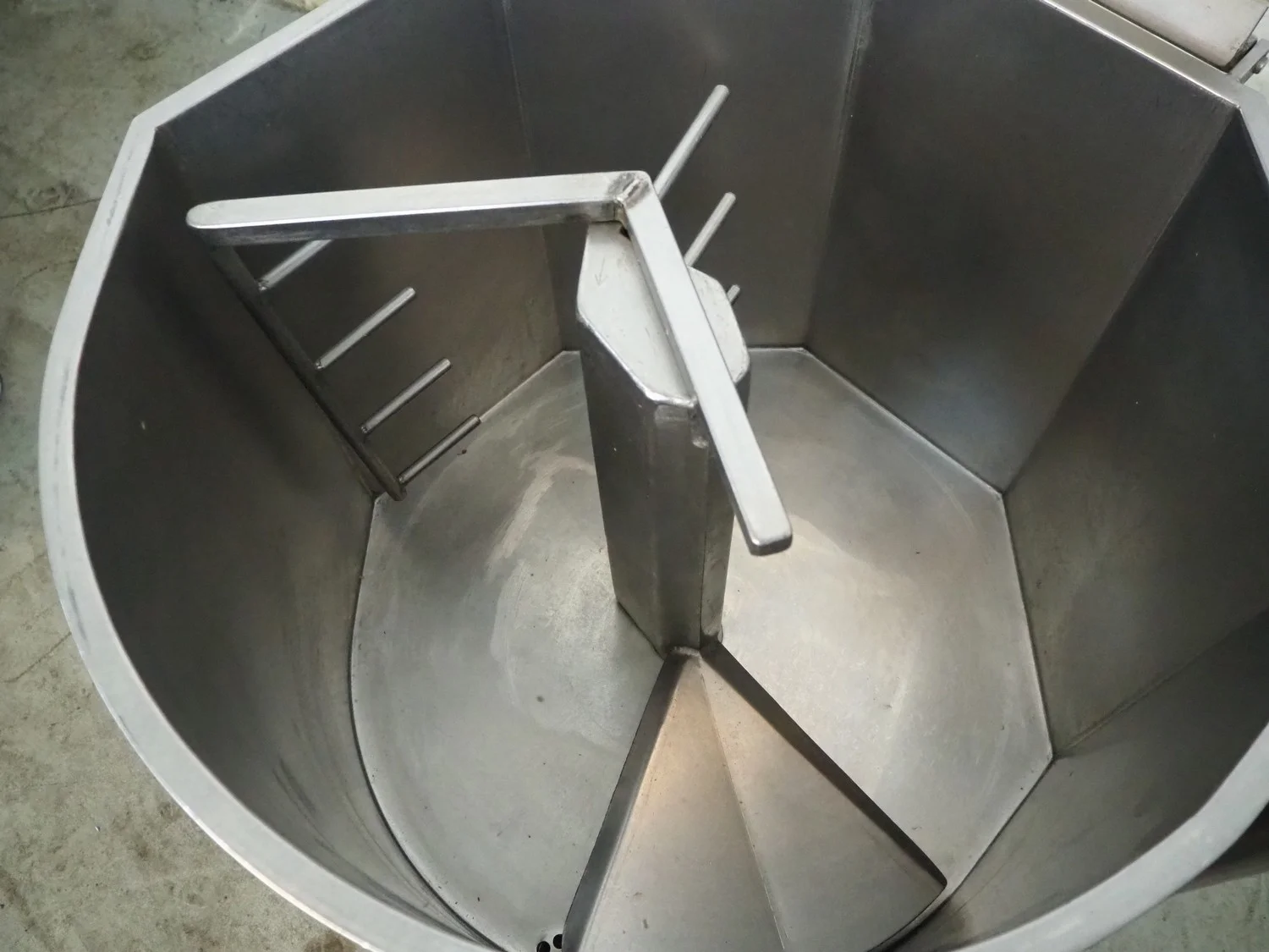 Desa mixer, inside dimensions: 620 mm x 490 mm, total dimensions: 700 mm x 700 mm x 1100 mm.