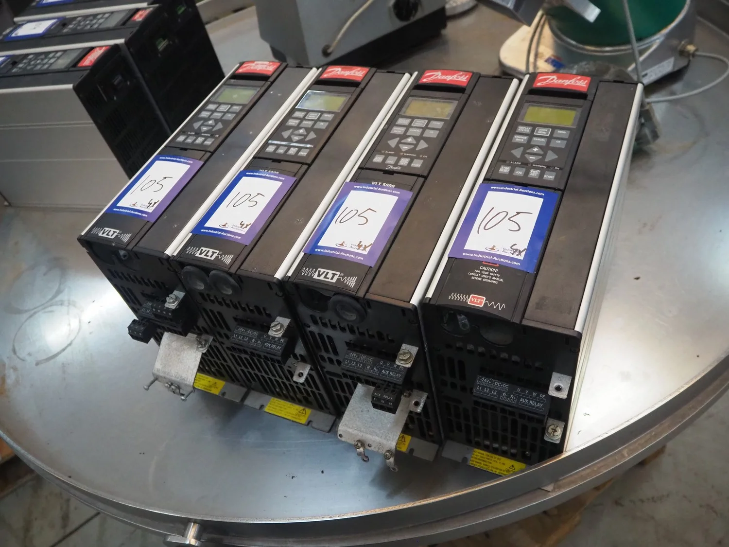 4 Danfoss frequency converters, dimensions: (4x) 350 mm x 130 mm x 250 mm.