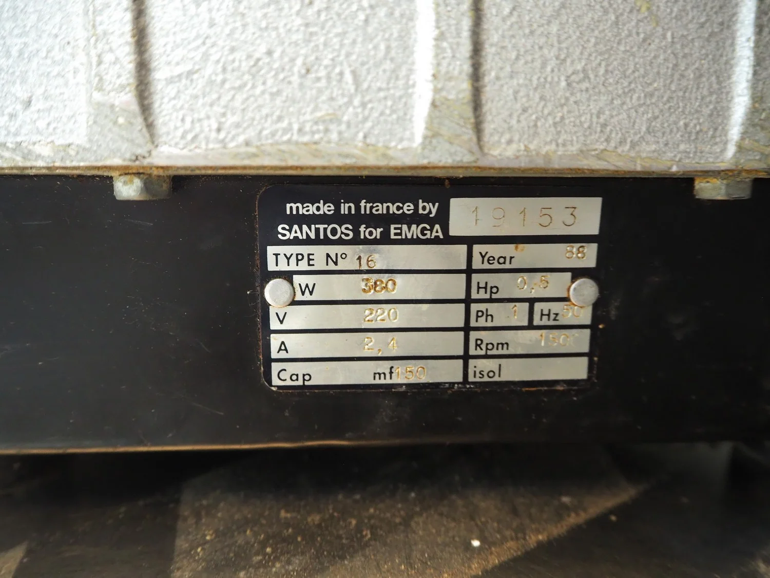 Santos vegetable slicer, type: N16, serial number: 19153, year of construction: 1988, 220 V, 1 Ph, 50 Hz, 2.4 A, dimensions: 400 mm x 230 mm x 400 mm.