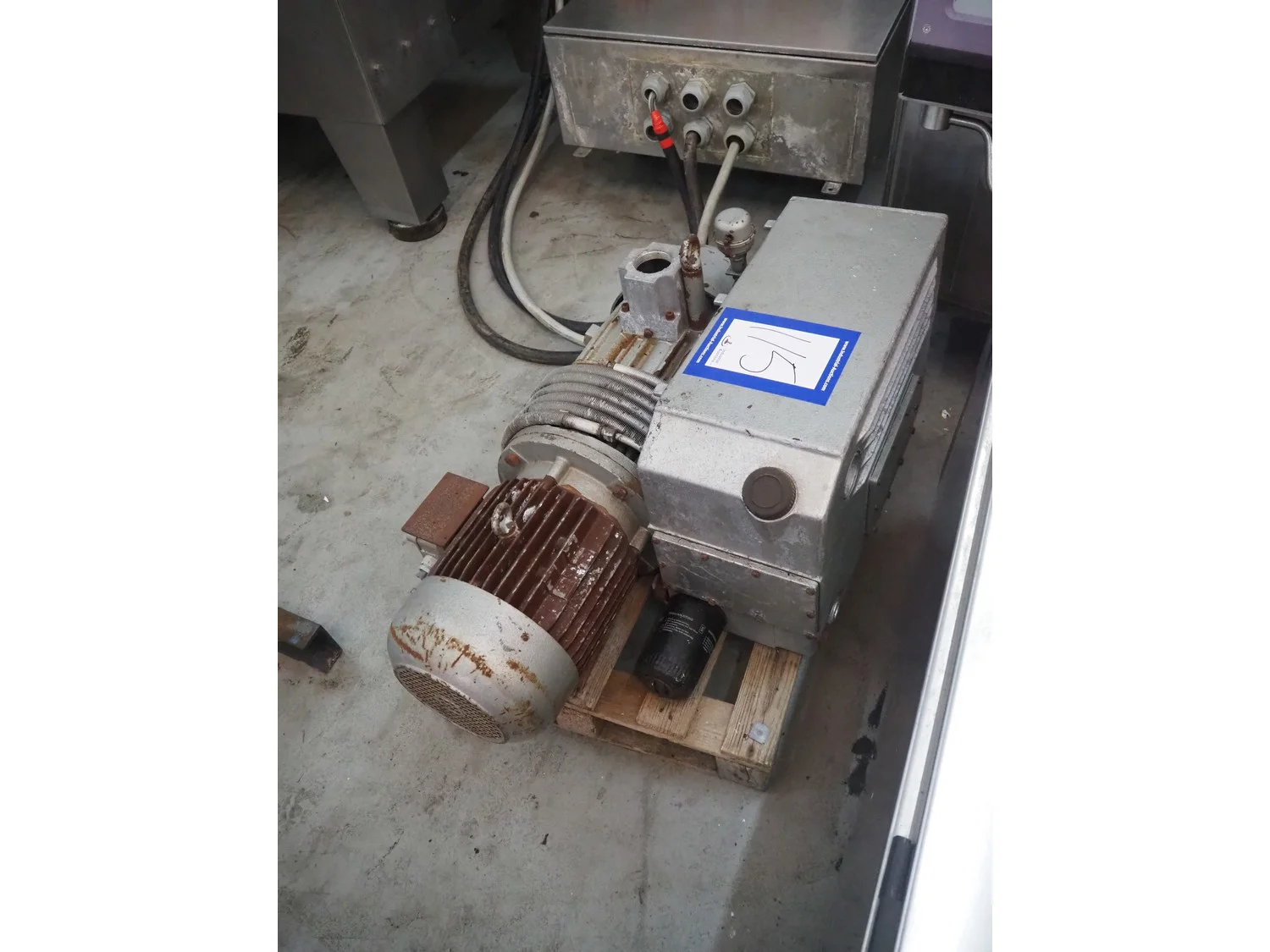 Busch vacuum pump, dimensions: 900 mm x 600 mm x 500 mm.