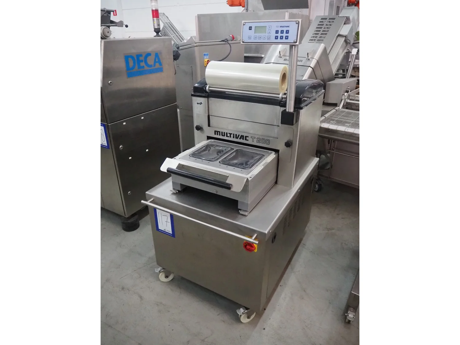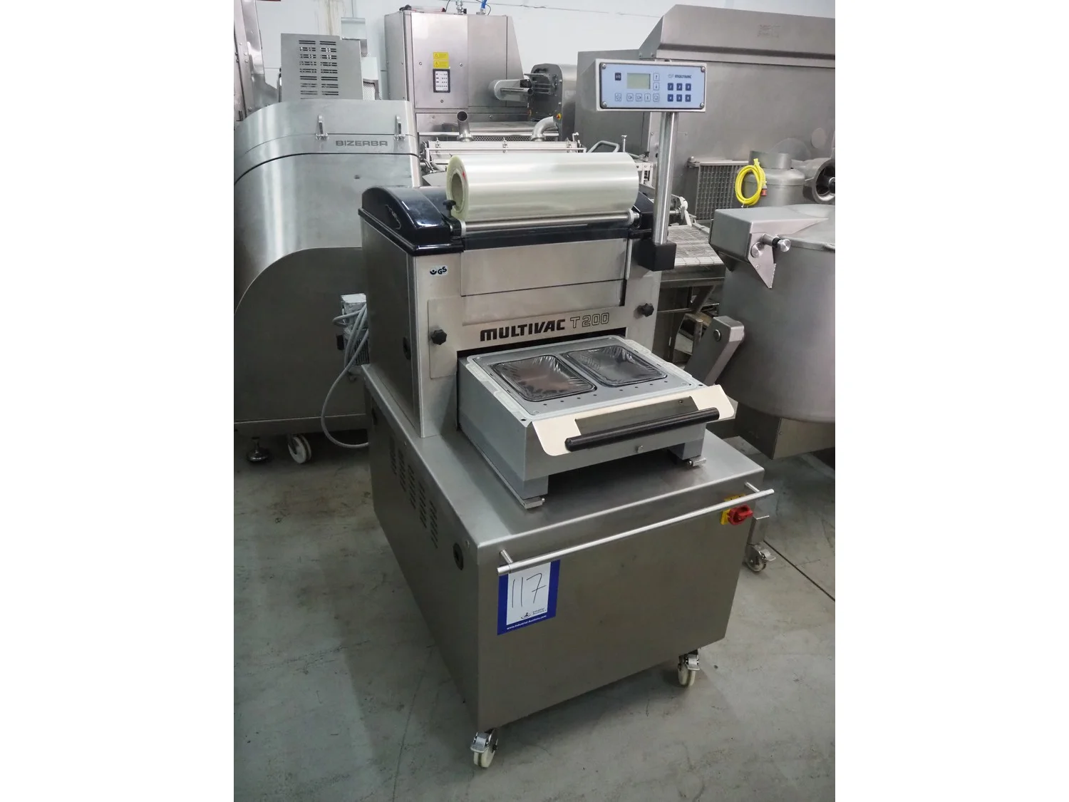 Multivac mobile traysealer, type: T200, machine number: 132770, year of construction: 2009, 400 V, 3 Ph, 50 Hz, 20 A, 3.8 kW, film width: 450 mm, dimensions dye: (2x) 230 mm x 180 mm, Busch vacuum pump, type: RA 0063 F, year of construction: 2009, capacity: 63 m³ per hour, total dimensions: 1050 mm x 750 mm x 1600 mm.