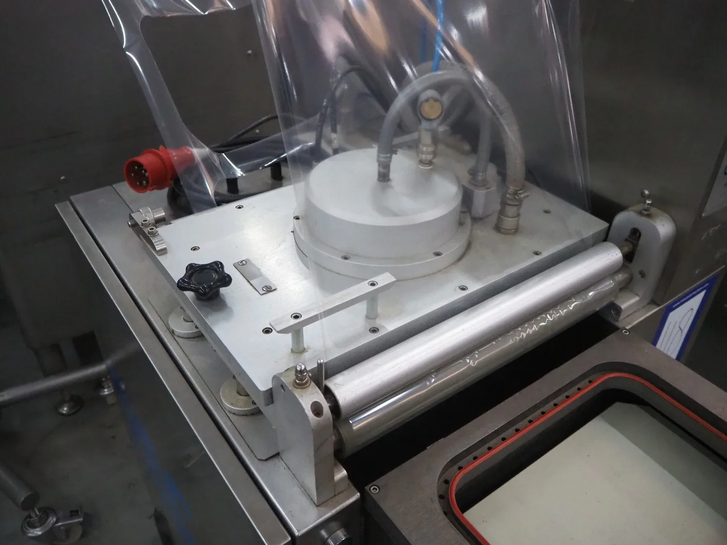 Deca Teknik traysealer, film width: 400 mm, dye: 290 mm x 230 mm, with Busch vacuum pump, type: RA 0063 E 501, number: 526885/GMZZ/PH, capacity: 63 m ³ per hour, total dimensions: 1350 mm x 800 mm x 1700 mm.