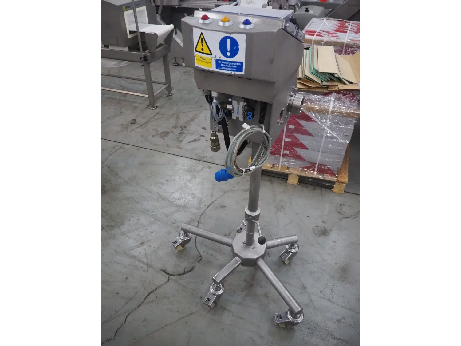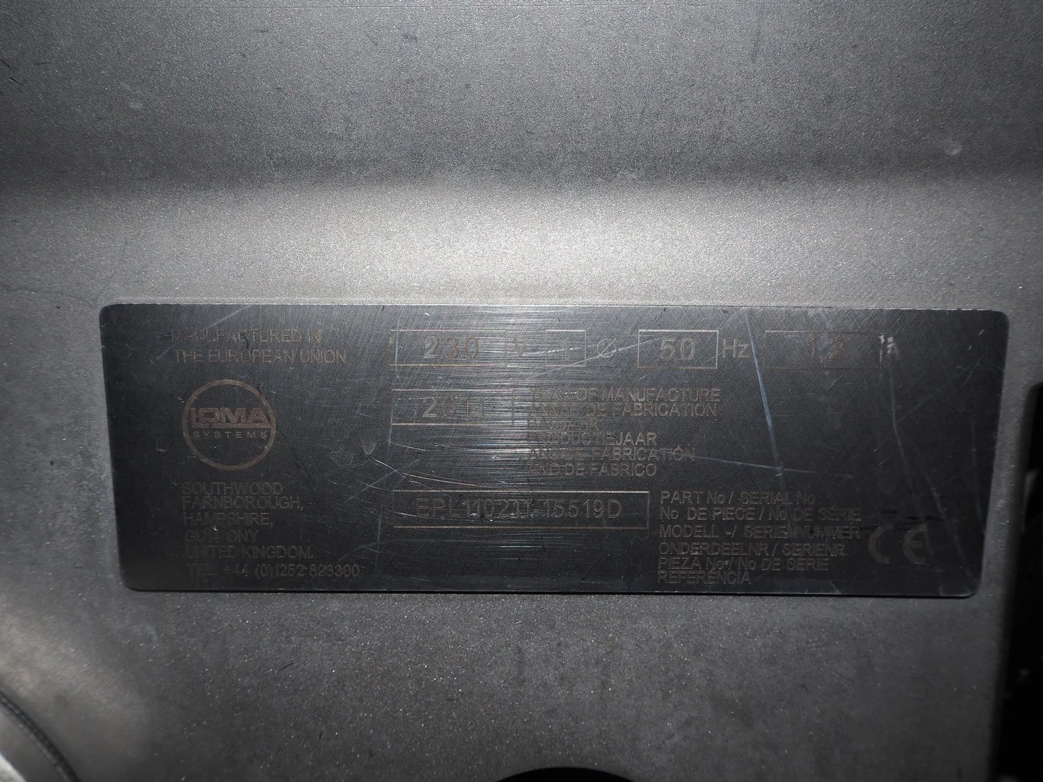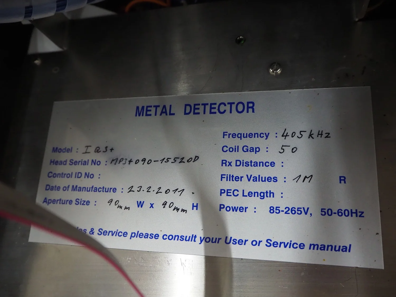 Loma Systems mobile pipeline metal detector, serial number: EPL110211-15519D, year of construction: 2011, 230 V, 1 Ph, 50 Hz, 1.2 A, diameter pipe: 55 mm, total dimensions: 1000 mm x 700 mm x 350 mm.
