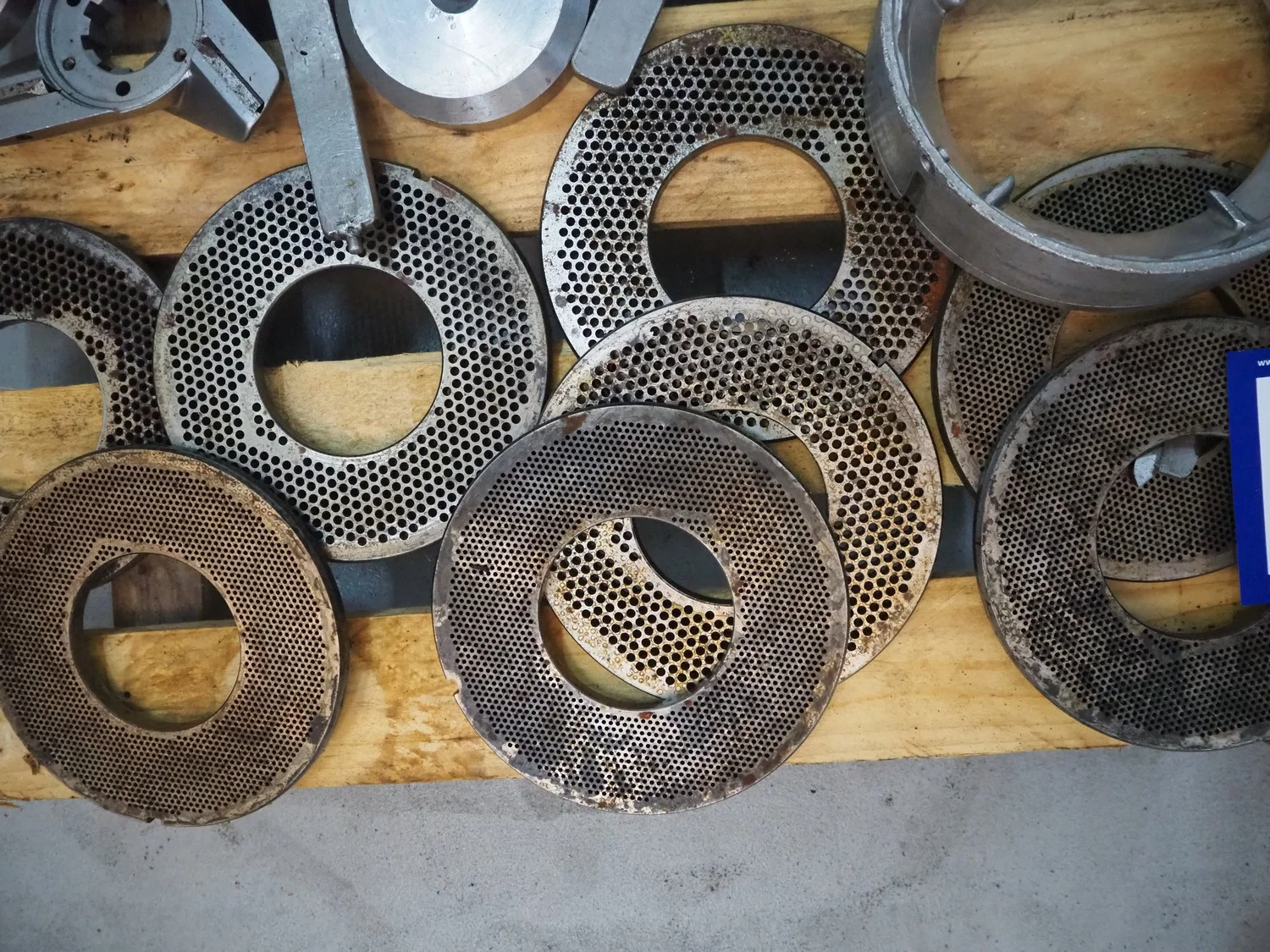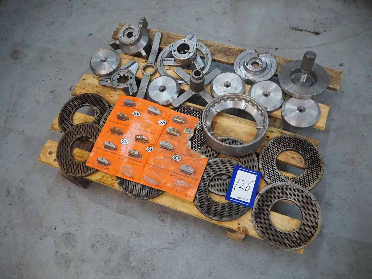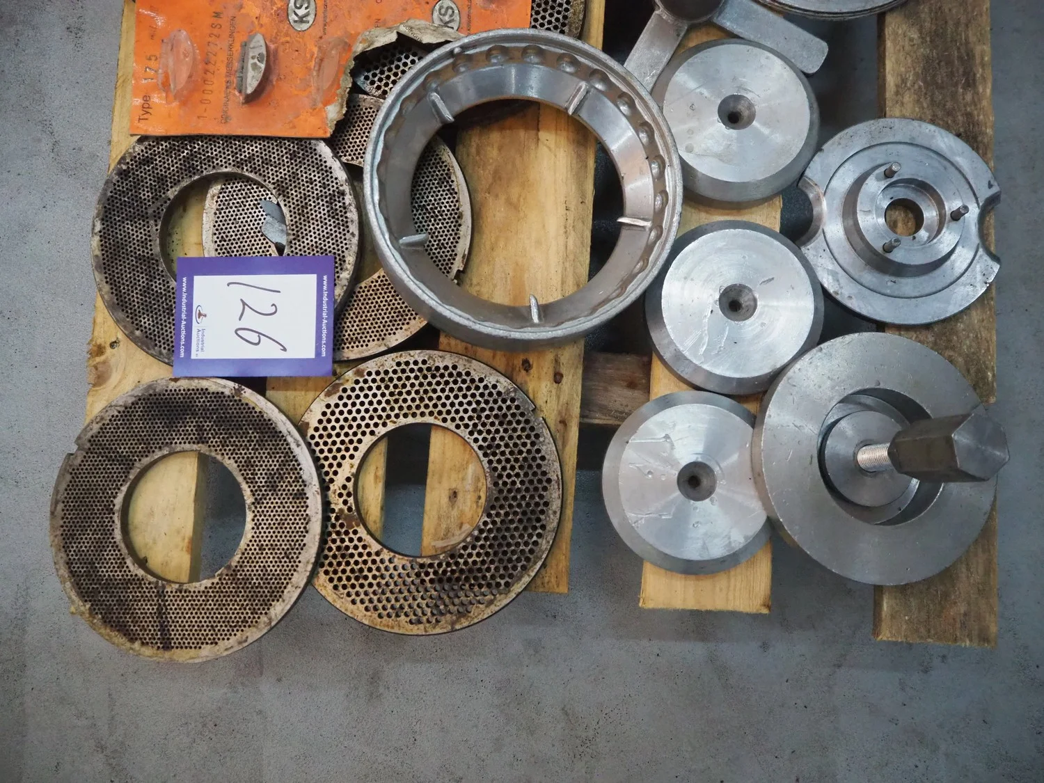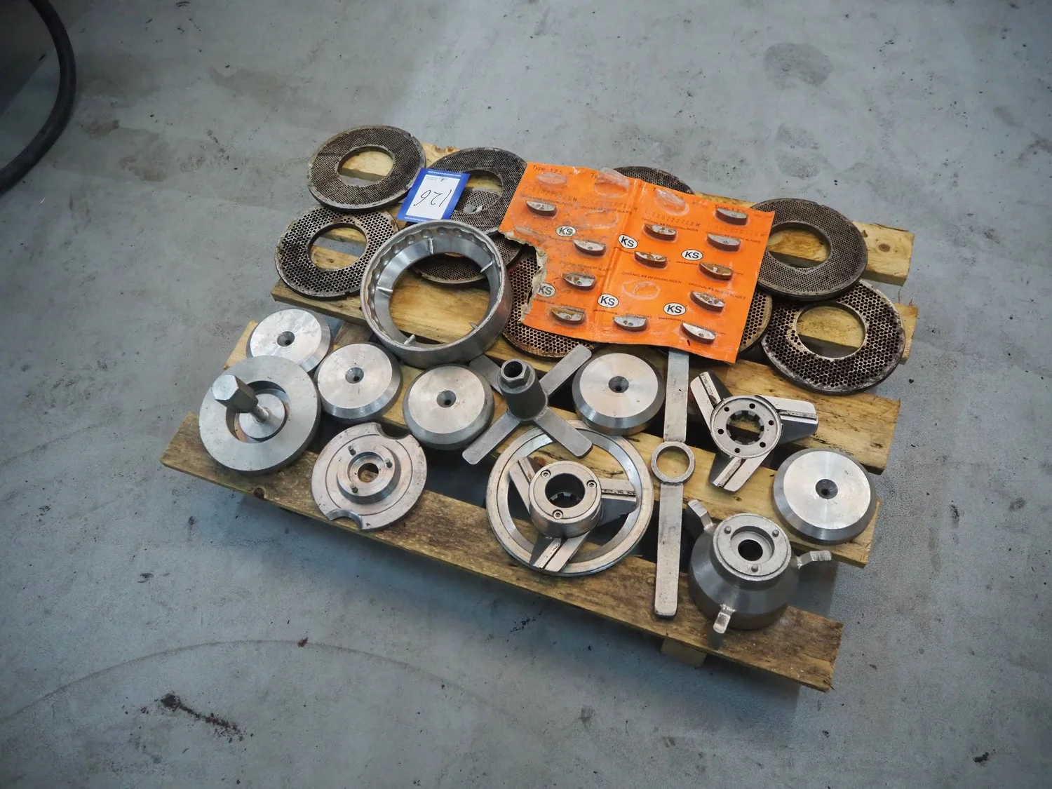 Pallet with parts for Karl Schnell micro cutter, diameter plate: 175 mm, total dimensions: 800 mm x 600 mm x 200 mm.