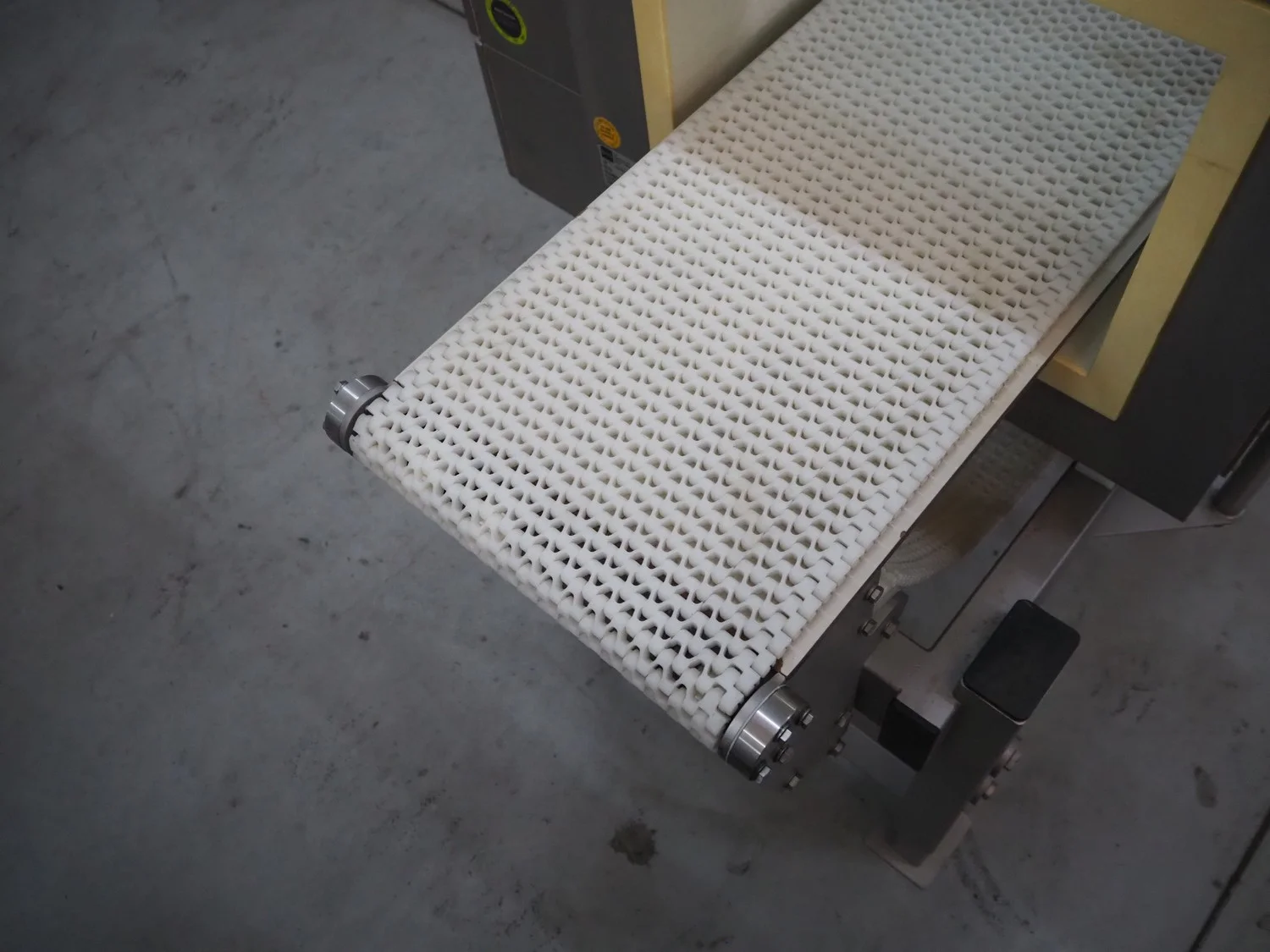 S+S Separation and Sorting Technology GmbH metal detector, type: VARICON-W 1000/300/350/250, serial number: 2009-11-H3429, year of construction: 2009, 230/115 V, 50/60 Hz, 0.7/1.4 A, plastic mesh belt, belt width: 300 mm, clearance: 350 mm x 200 mm, total dimensions: 1000 mm x 740 mm x 1210 mm.
