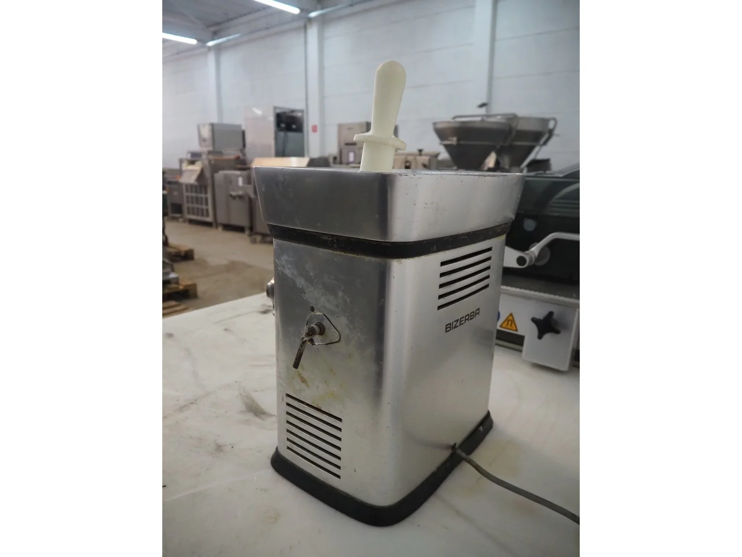 Bizerba grinder, plate diameter: 70 mm, total dimensions: 350 mm x 350 mm x 400 mm.