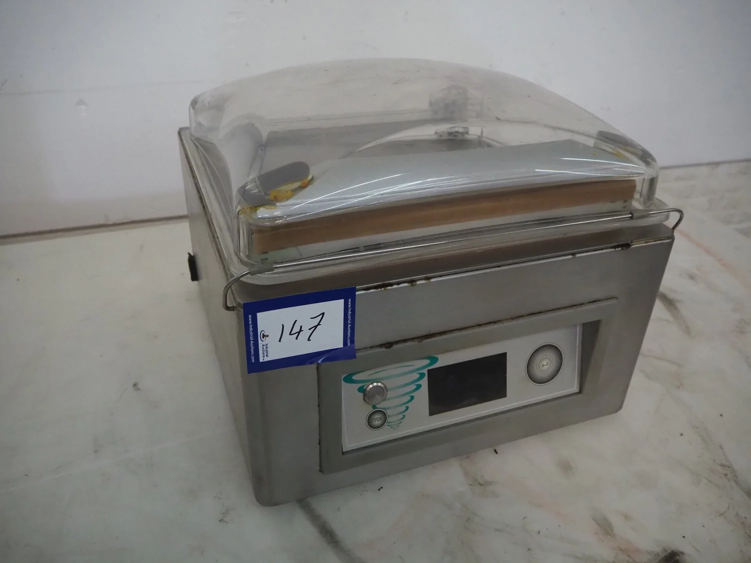 Henkelman vacuum machine, type: Lynx 42, machine number: H0L10160016, year of construction: 2016, 220/230 V, 1 Ph, 50/60 Hz, 5 A, 0.7 kW, seal length: 430 mm, chamber: 430 mm x 370 mm, total dimensions: 520 mm x 500 mm x 400 mm.
