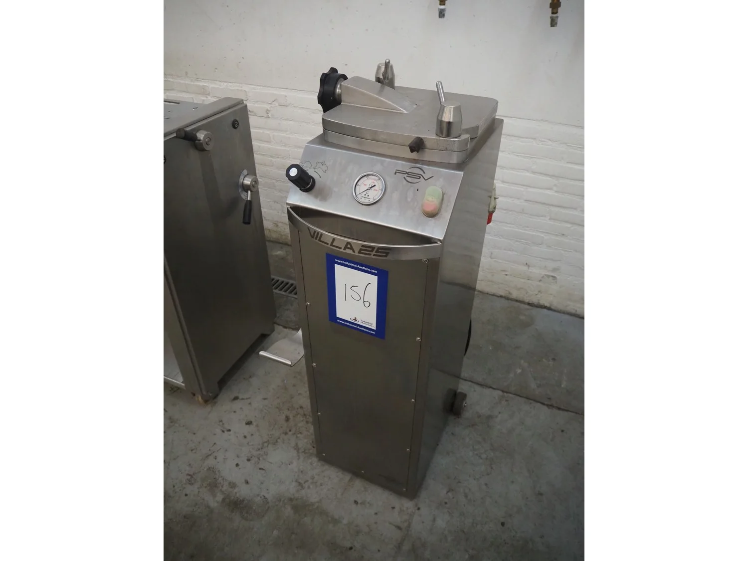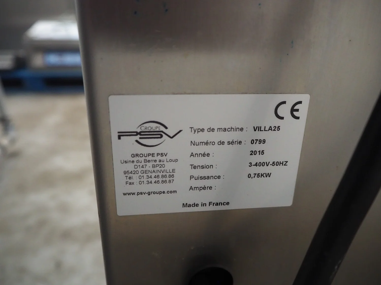Groupe PSV piston filler, type: Villa25, serial number: 0799, year of construction: 2015, 400 V, 3 Ph, 50 Hz, 0.75 kW, dimensions: 520 mm x 520 mm x 1150 mm.
