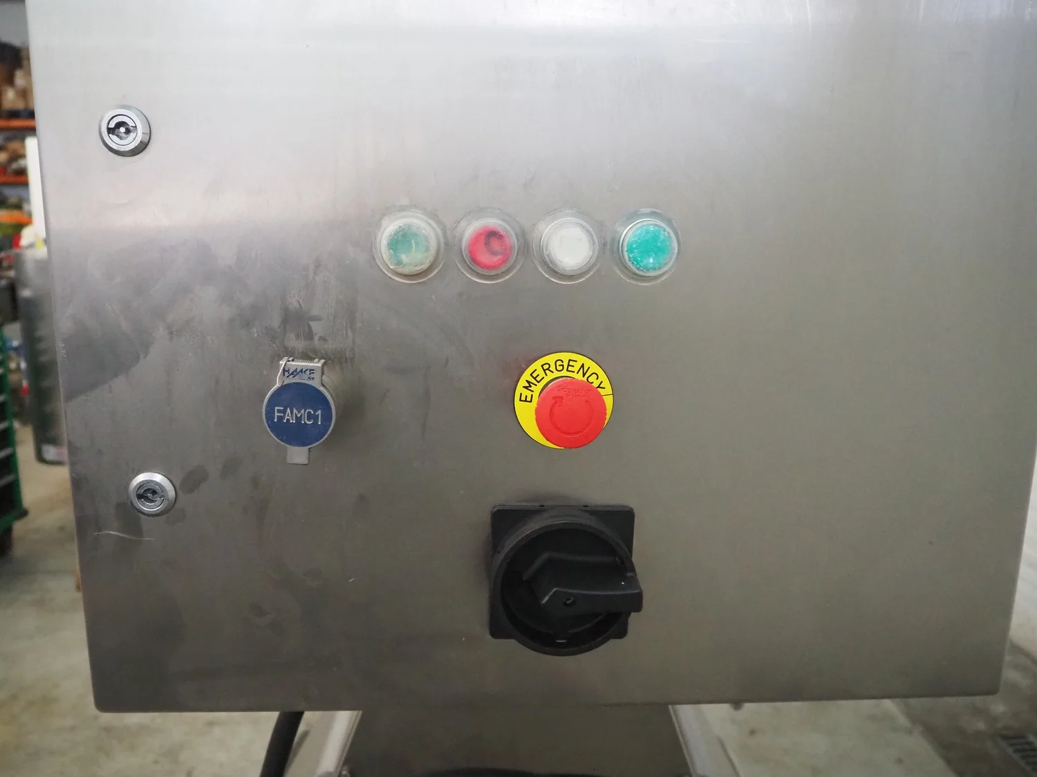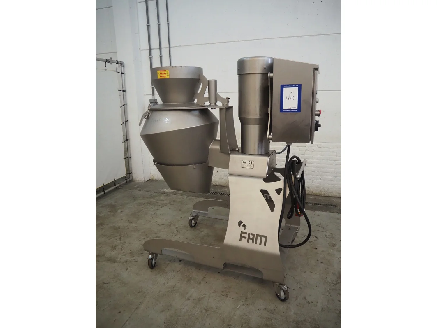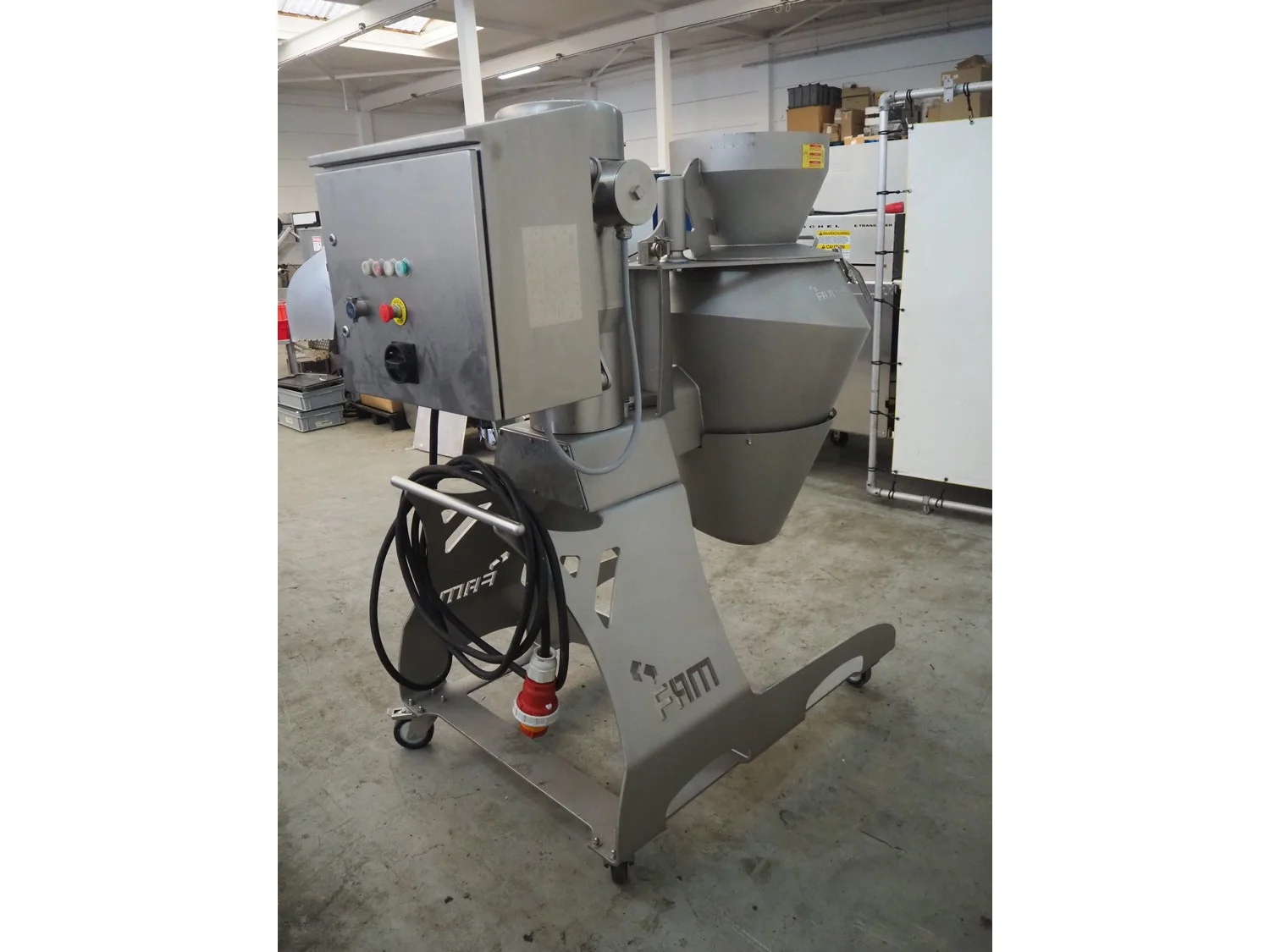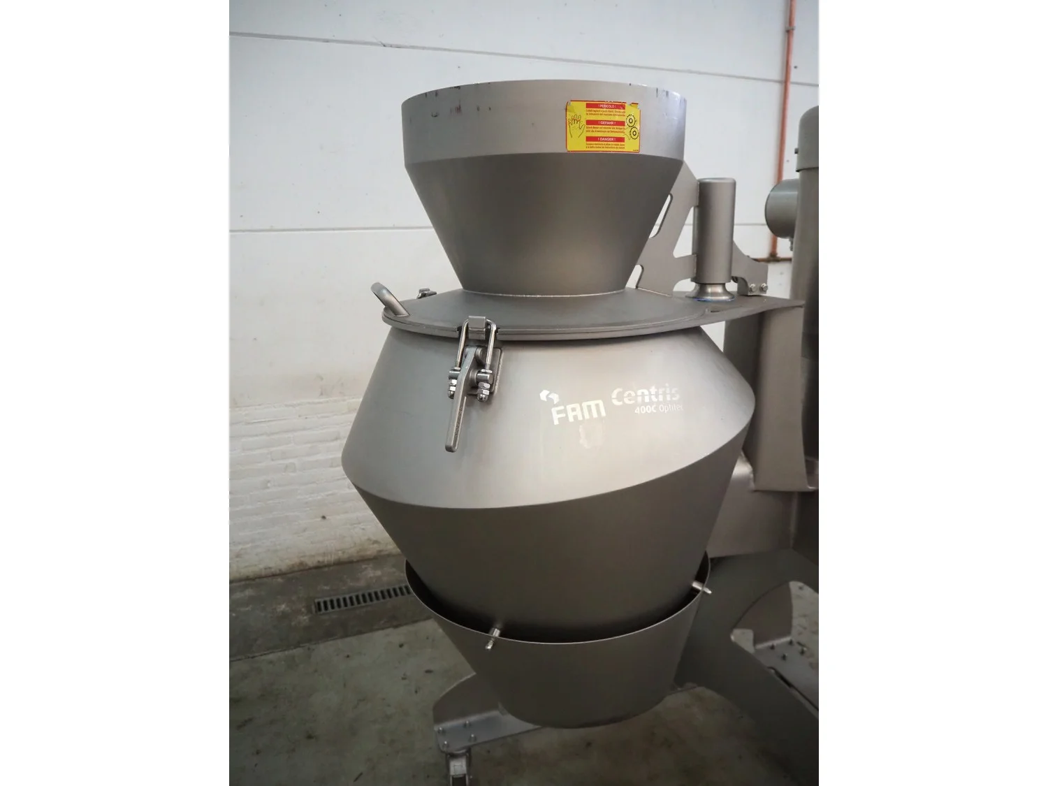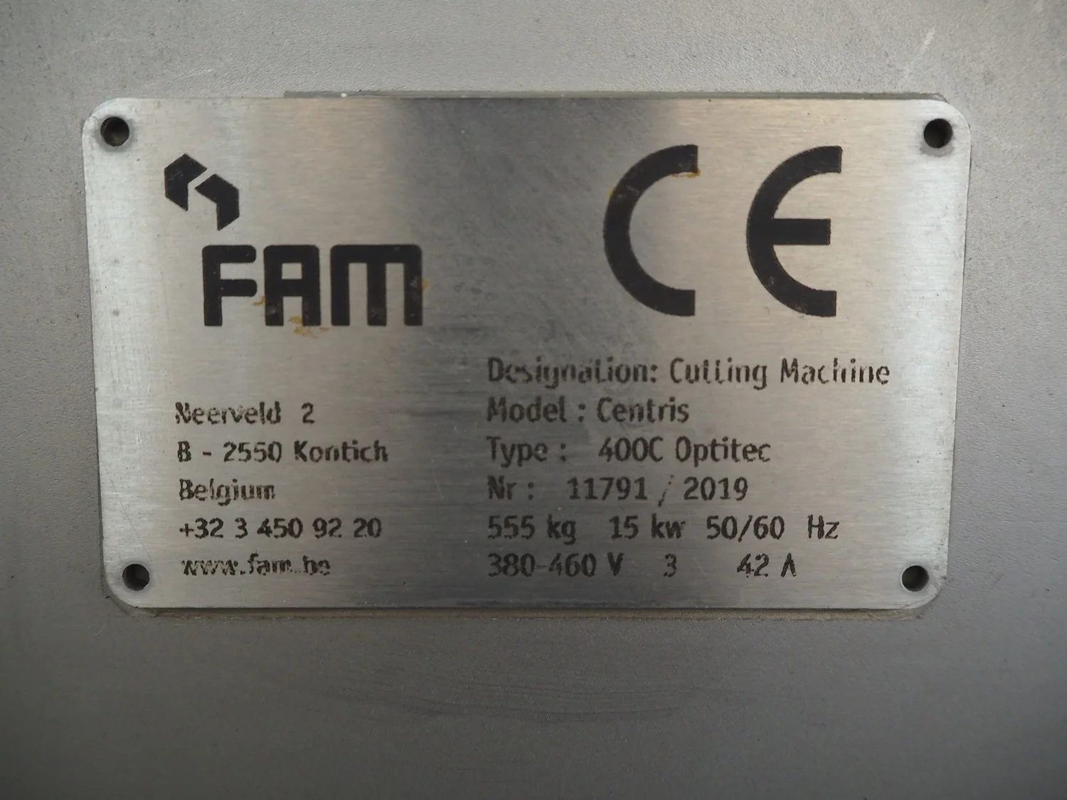 FAM mobile slicer, model: Centris, type: 400C Optitec, number: 11791, year of construction: 2019, weight: 555 Kg, 380-460 V, 3 Ph, 50/60 Hz, 42 A, 15 kW, dimensions: 1700 mm x 1100 mm x 1500 mm.