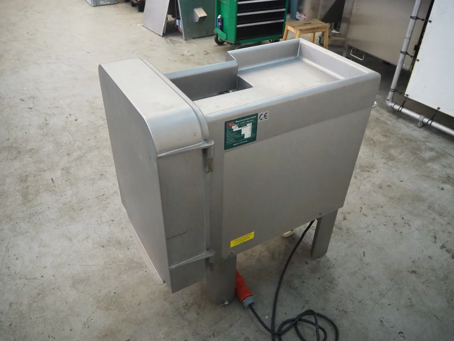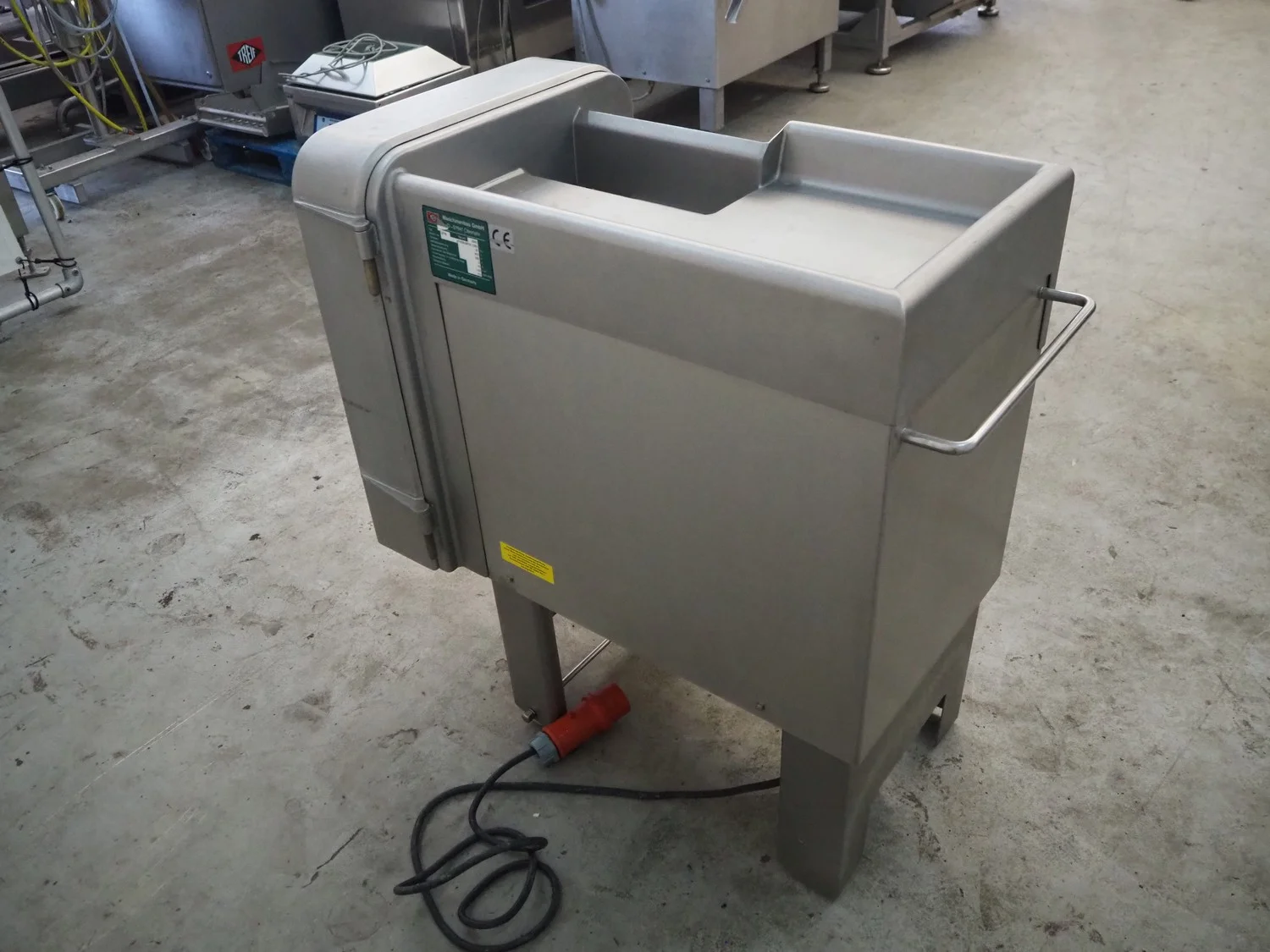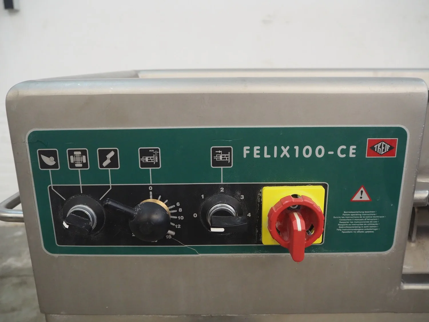 Treif Maschinenbau GmbH dicer, model: FELIX100-CE, type: 2710, machine number: 271004.69131.1283, year of construction: 2000, 400/230 V, 50 Hz, 3/10 A, 1.00 kW, 174 kg, dimensions chamber: 95 mm x 95 mm, total dimensions: 920 mm x 670 mm x 1040 mm.