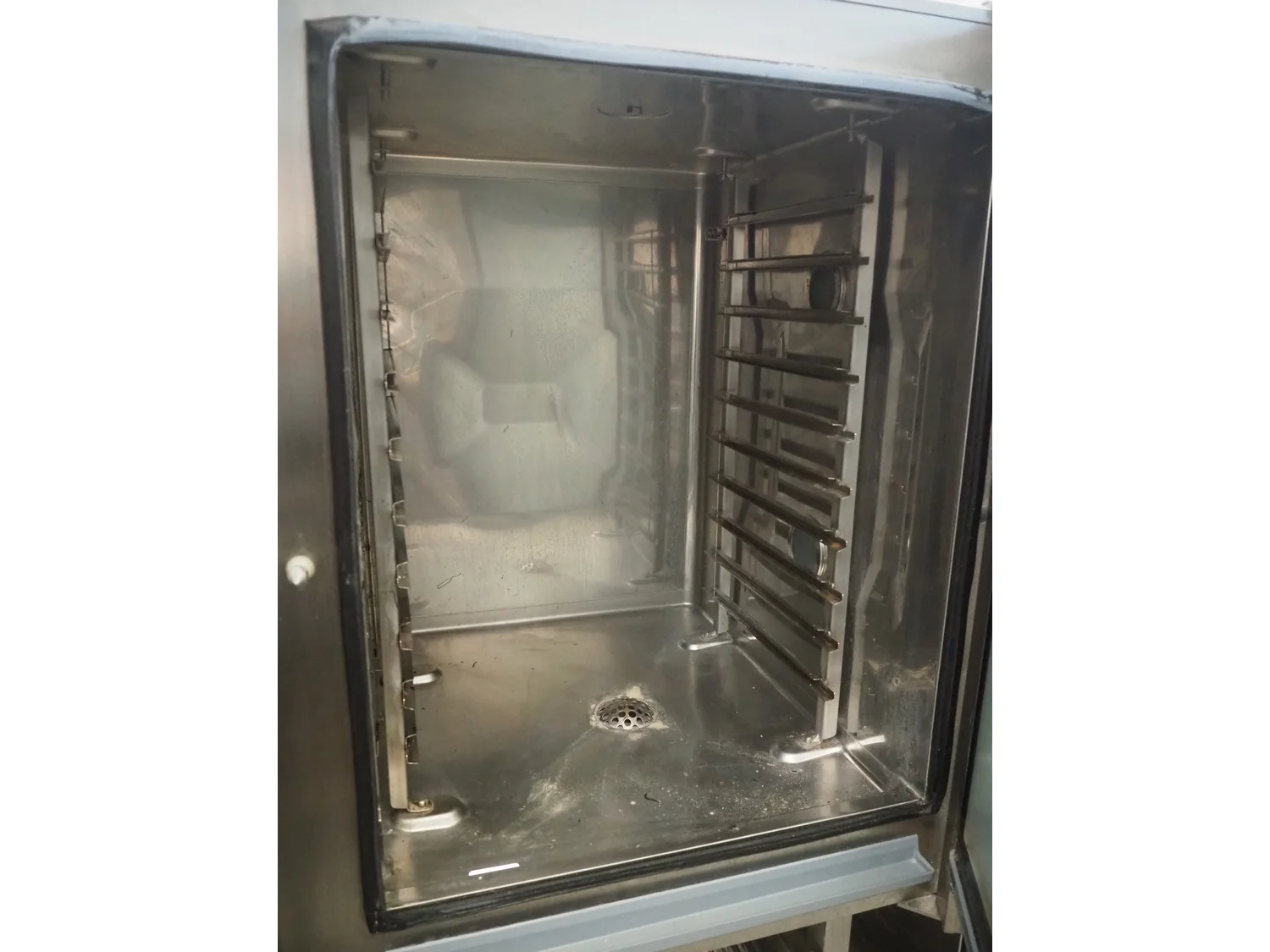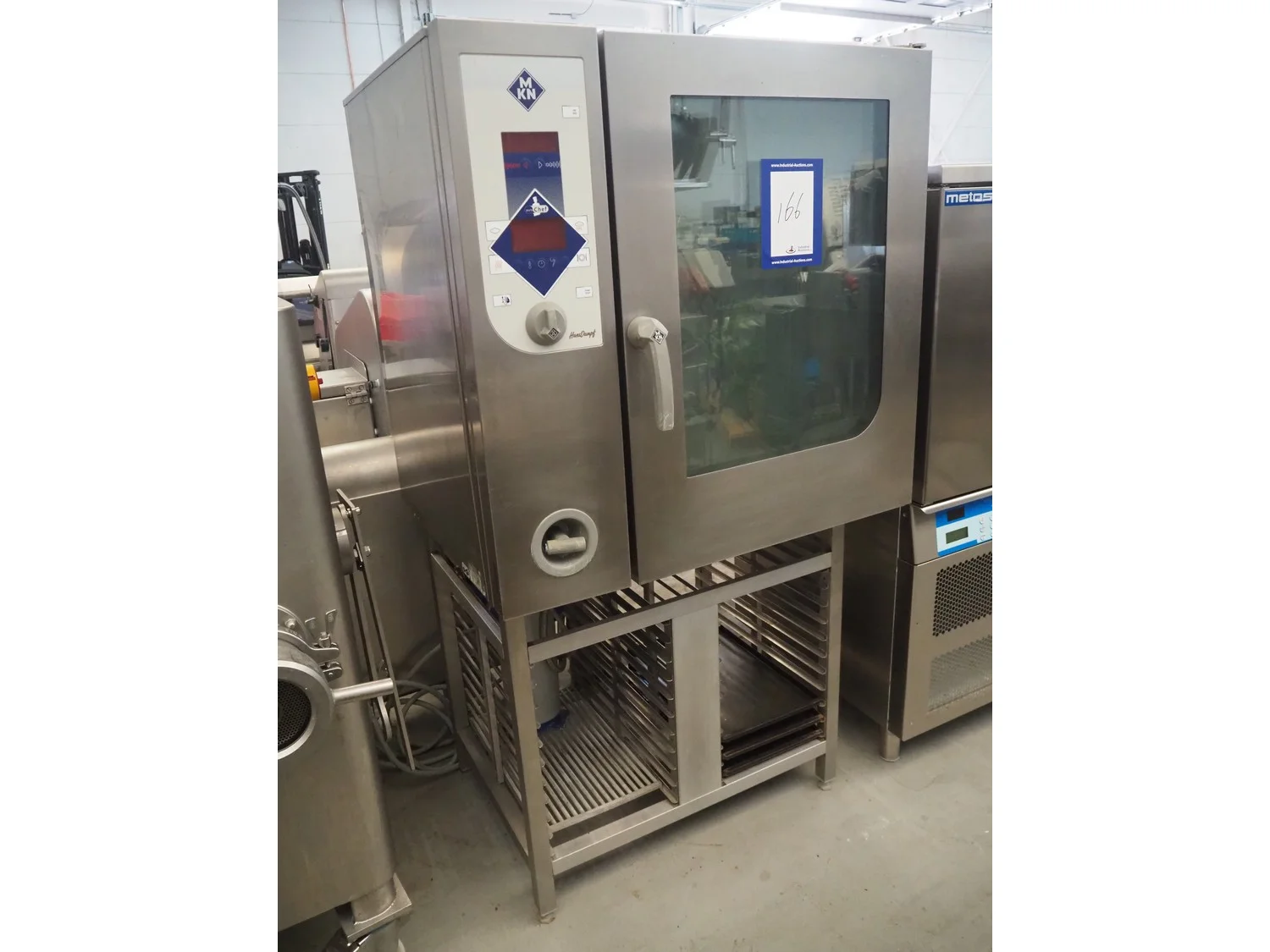 MKN combi steamer, type: CGE110230-01, serial number: 08023473, 400 V,3 Ph, 50 Hz, 16.5 kW, 10 floors, dimensions each floor: 530 mm x 400 mm, total dimensions: 1000 mm x 840 mm x 1820 mm.