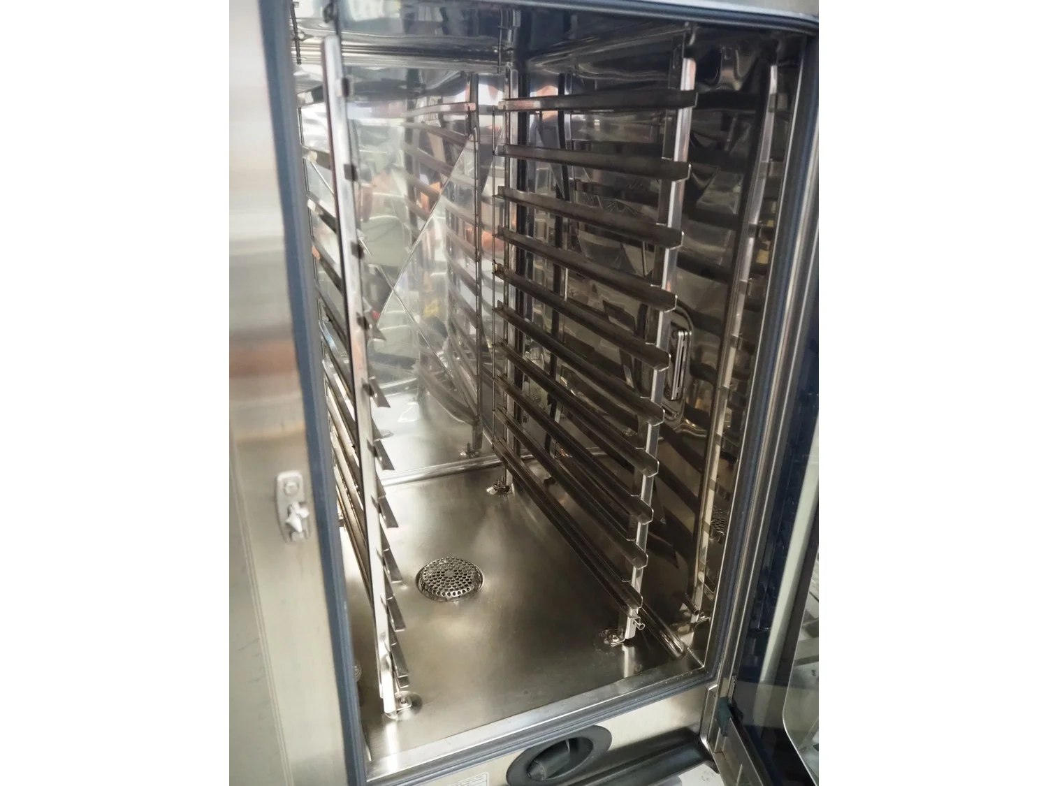 Metos combi steamer, model: MCM 101, serial number: E11MG09032174176, 400 V, 3 Ph, 50 Hz, 19.0 kW, electrically heated, 10 floors, dimensions each floor: 850 mm x 850 mm x 1750 mm.