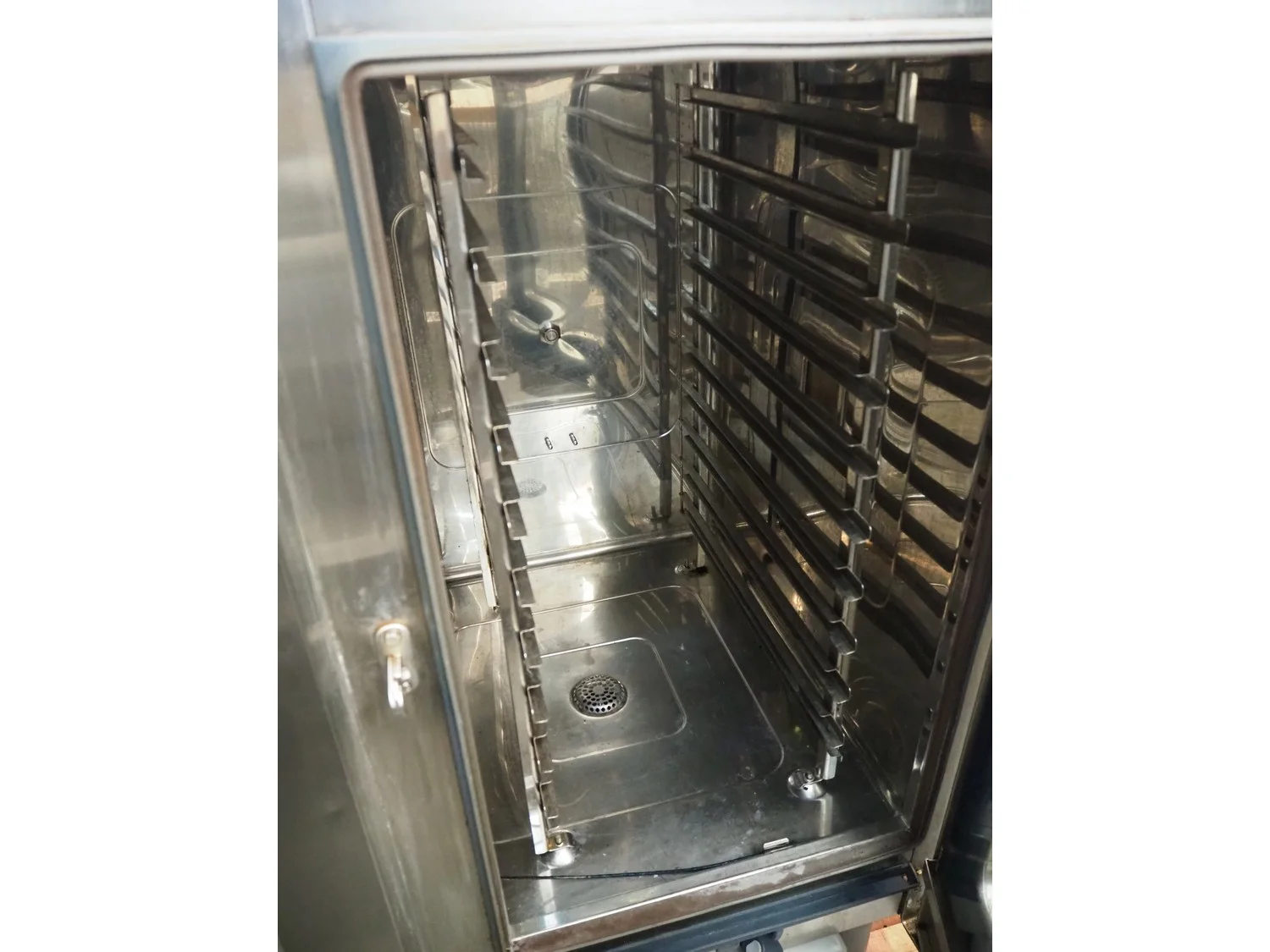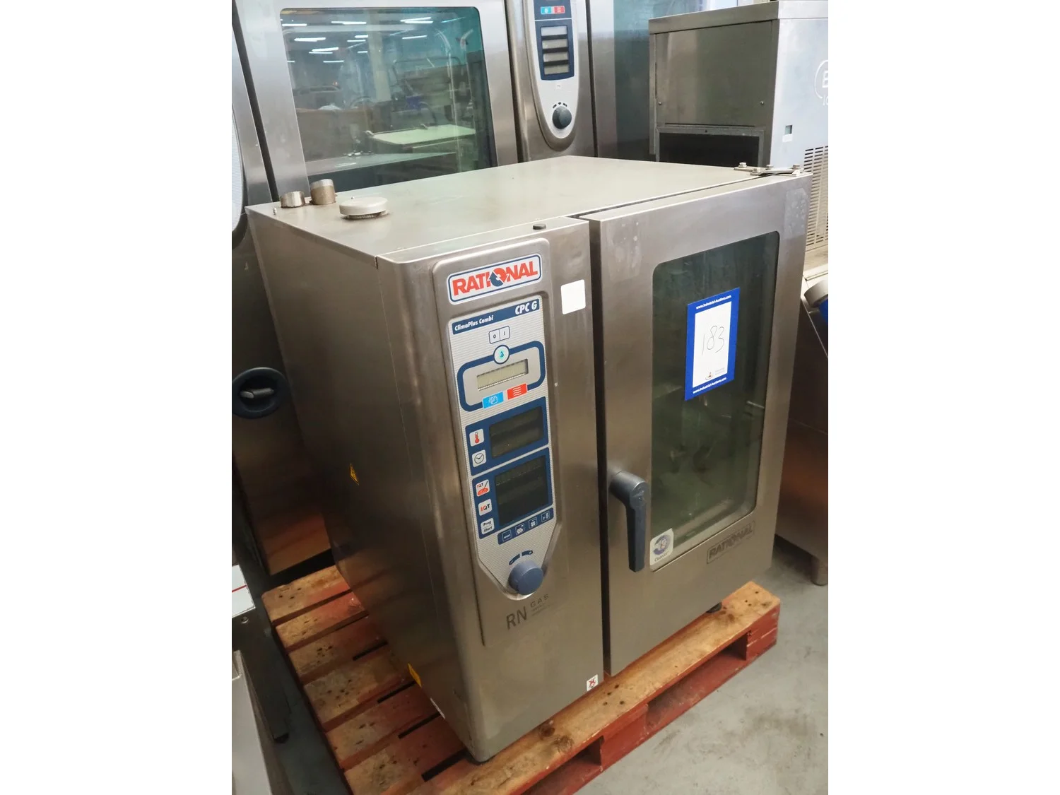 Rational combi steamer, model: CPC 101G, serial number: G11CD02091074525, 230 V, 50-60 Hz, 1.0 kW, 10 floors, capacity: 10x 1/1 GN, 150 kg, dimensions: 900 mm x 850 mm x 1060 mm.