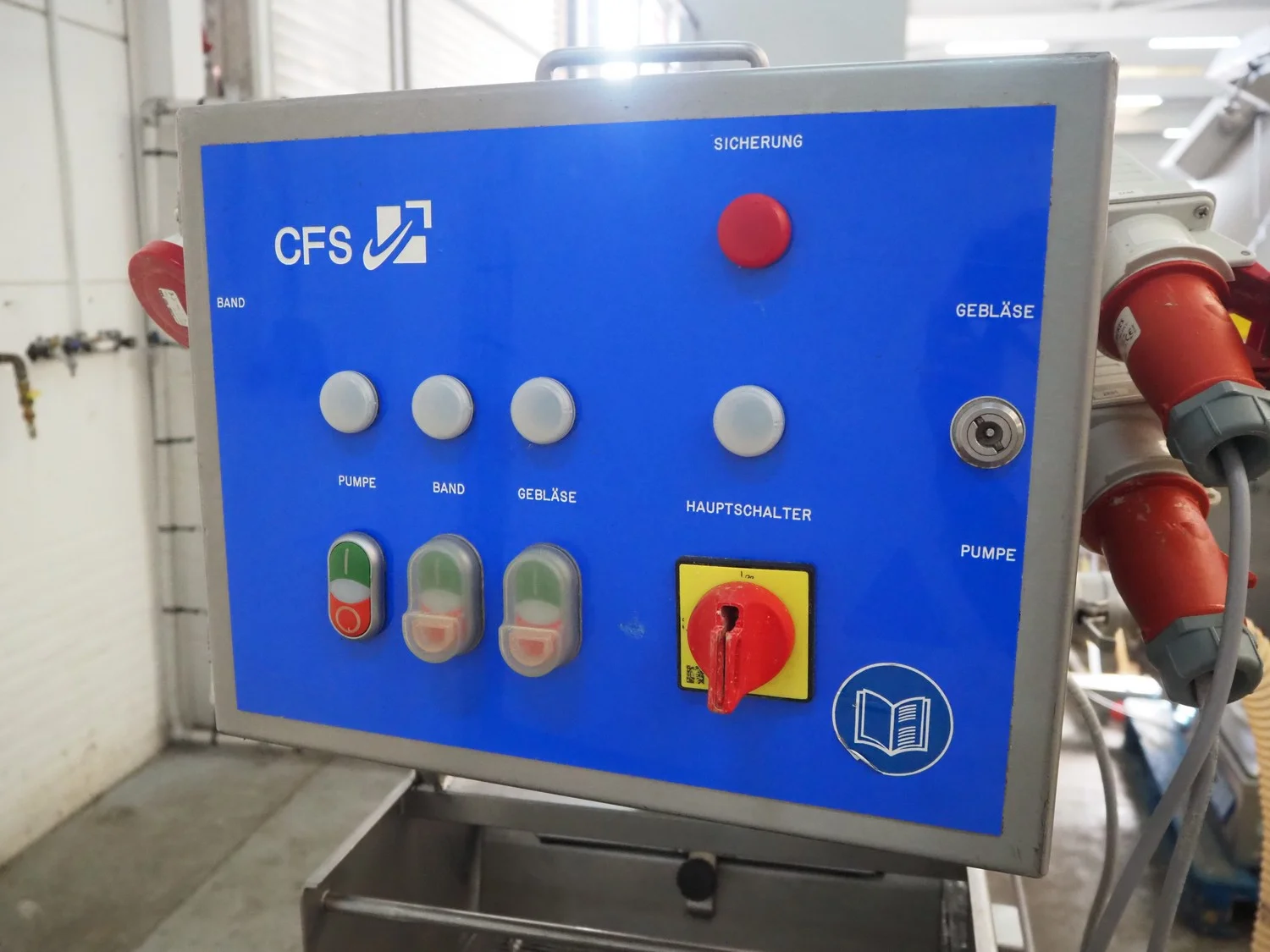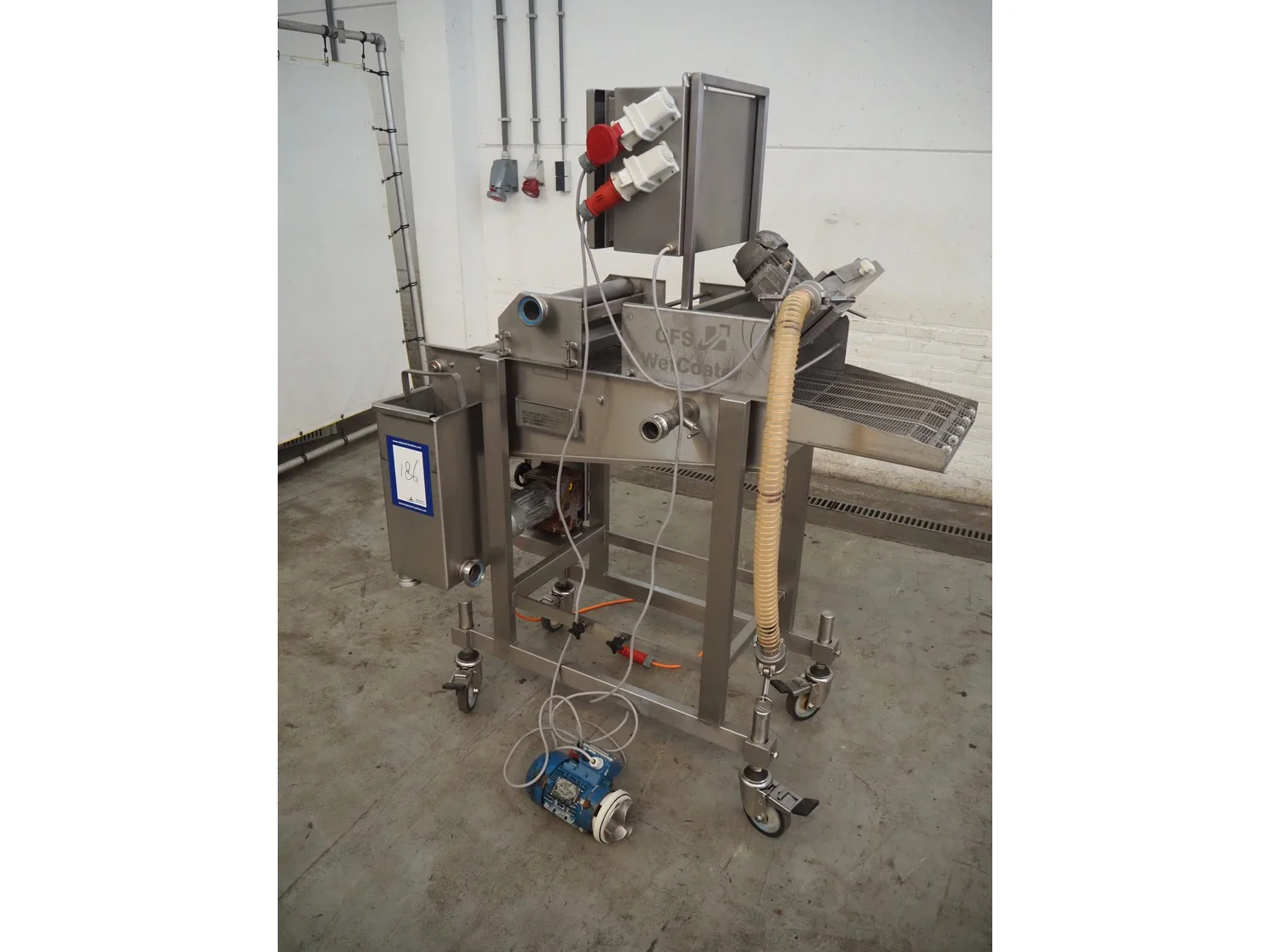 CFS mobile wet coating machine, type: WTC 400, machine number: 1789, year of construction: 2005, 400 V, 3 Ph, 50 Hz, 2.25 A, 0.62 kW, weight: 165 kg, s/s mesh belt, belt width: 400 mm, total dimensions: 1550 mm x 750 mm x 1760 mm.