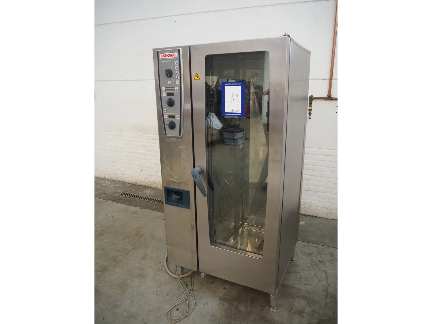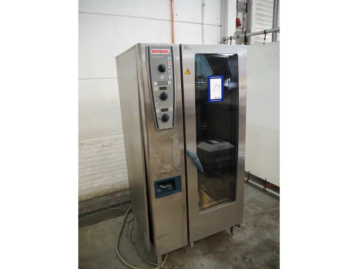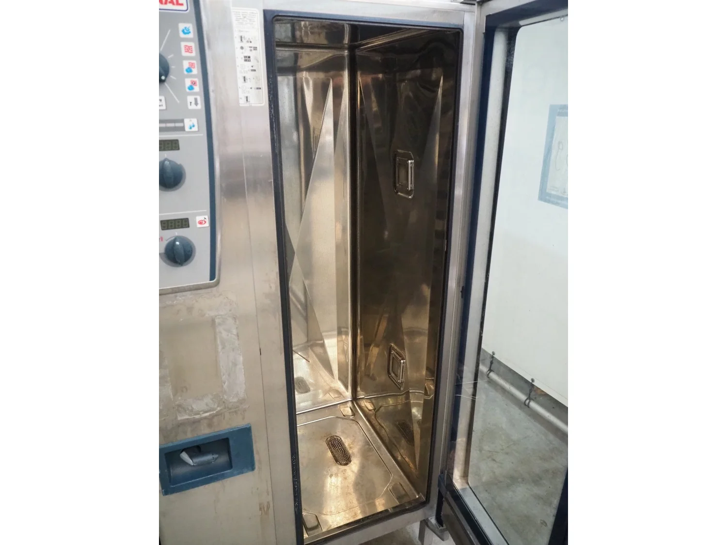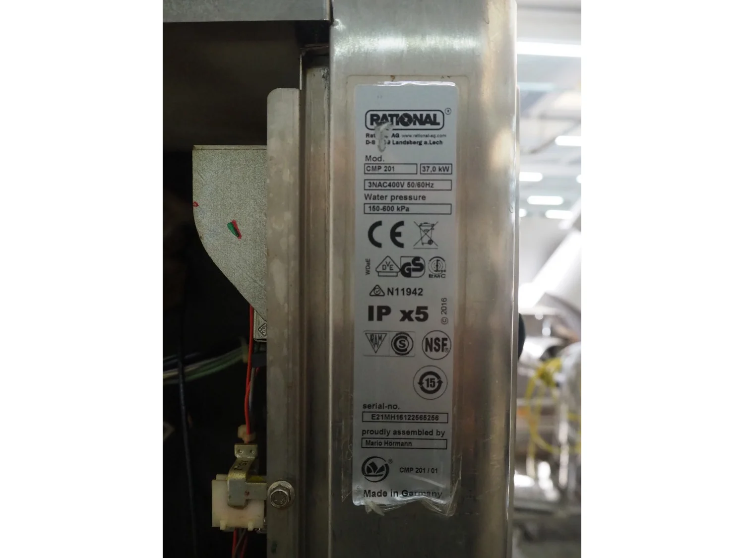 Rational combi steamer, model: CMP 201, serial number: E21MH18122666266, year of construction: 2016, 400 V, 3 Ph, 50/60 Hz, 37 kW, 150-600 kPa, inside dimensions: 700 mm x 450 mm x 1500 mm, total dimensions: 900 mm x 800 mm x 1800 mm.