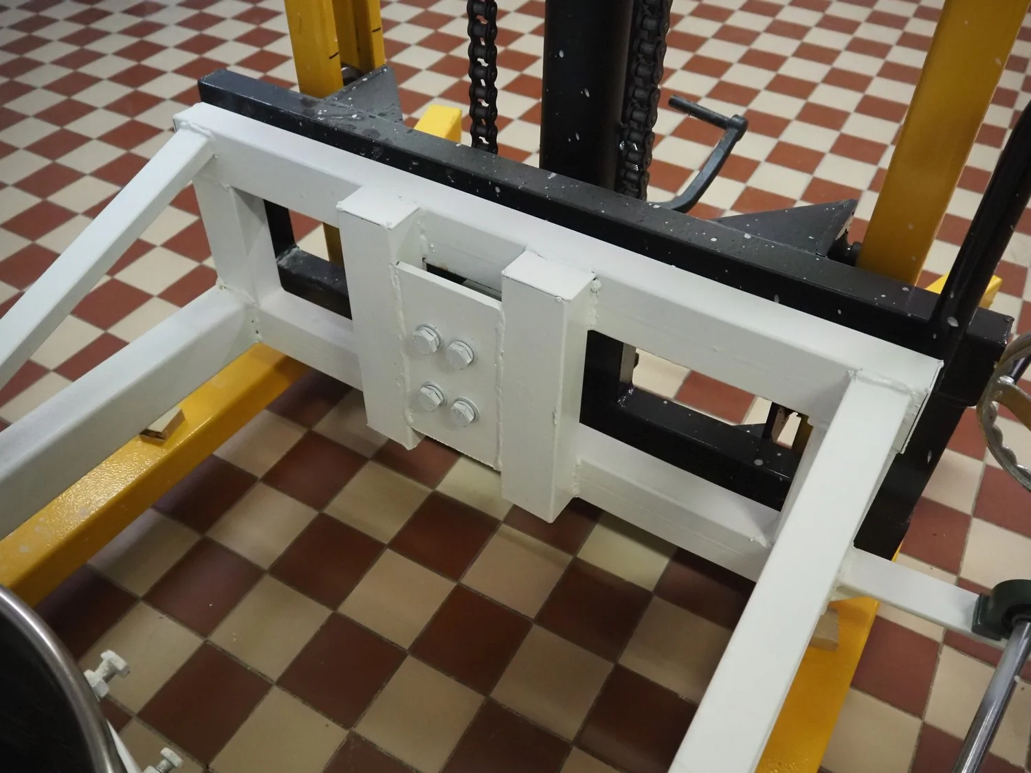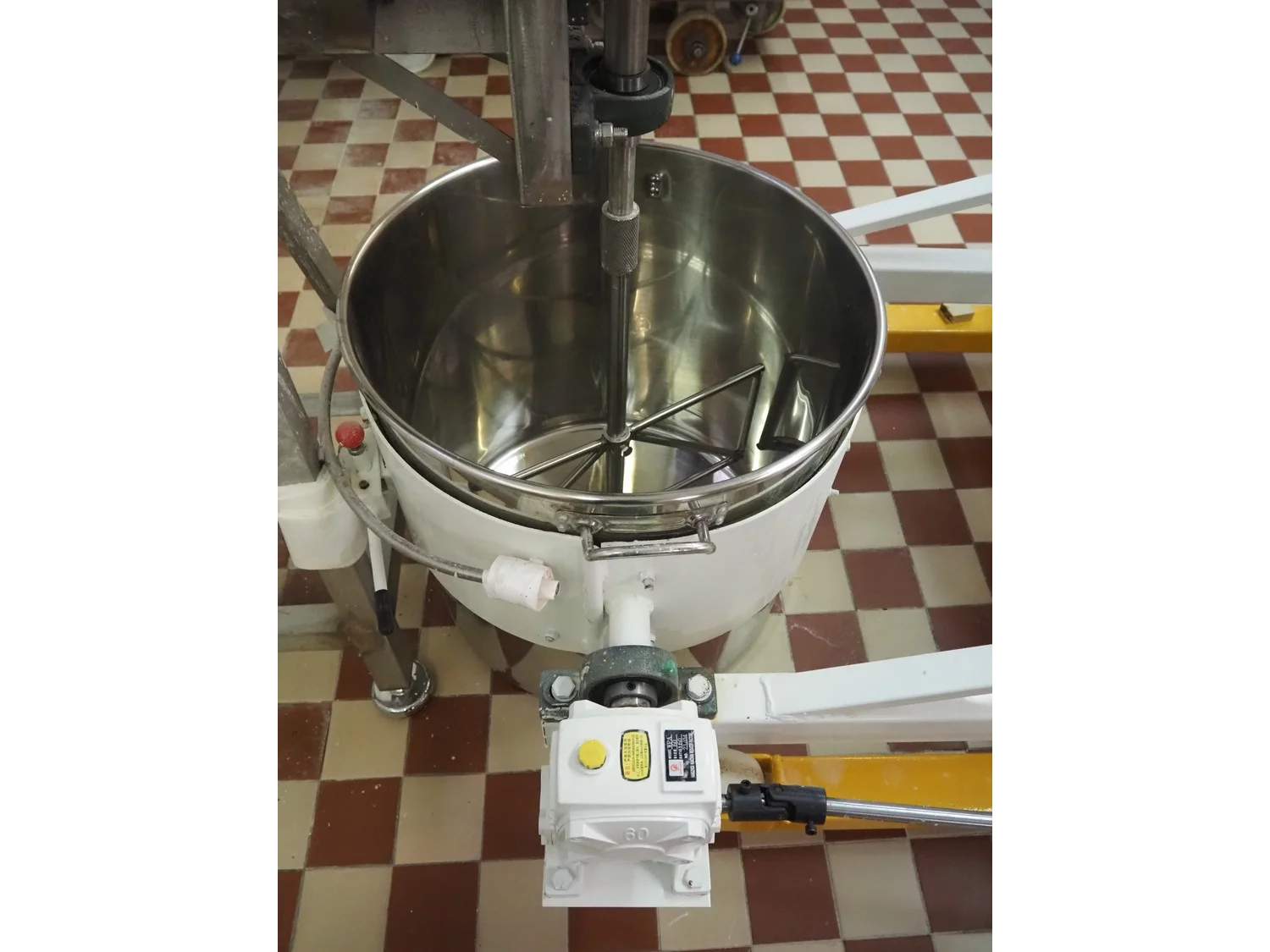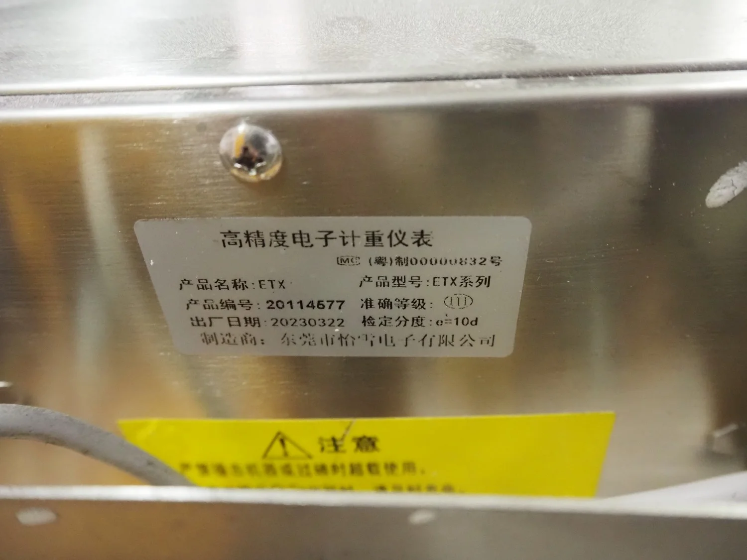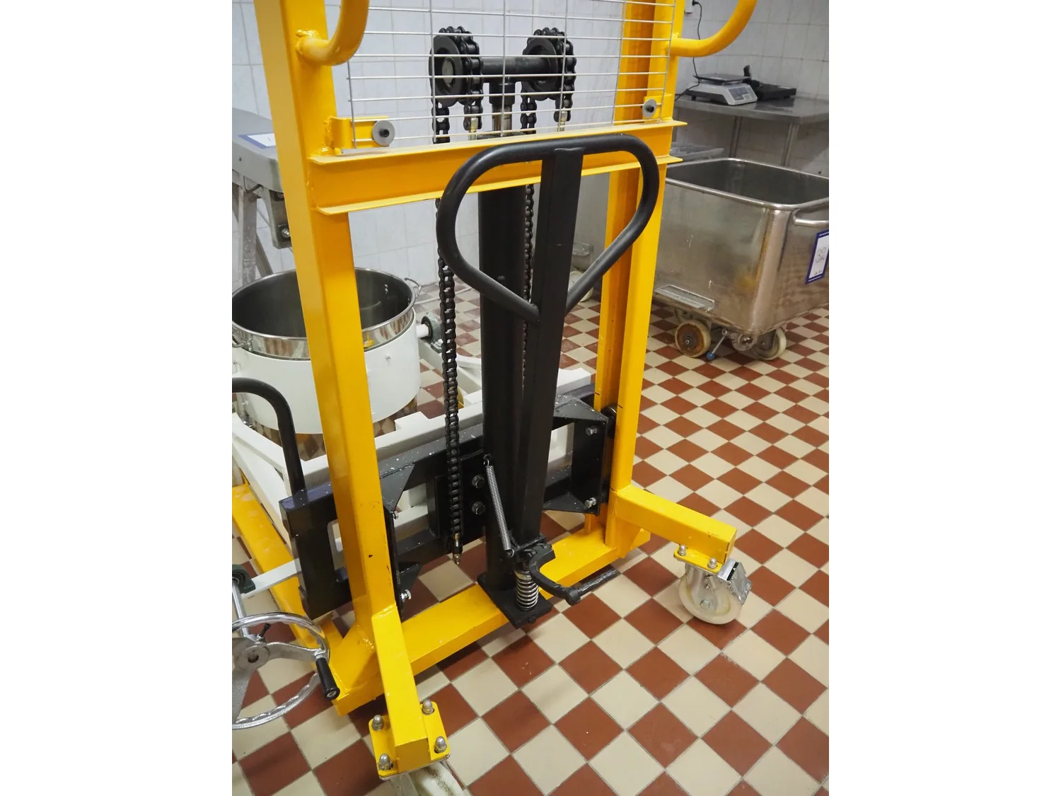 Mobile lifting and weighing machine for bowls, model indicator: ETX, number: 20114577, year of construction: 2023-03-22, e=: 10 gram, s/s bowl, dimensions bowl: Ø 500 mm x 500 mm, lifting height: 1500 mm, total dimensions: 1400 mm x 1000 mm x 2000 mm.