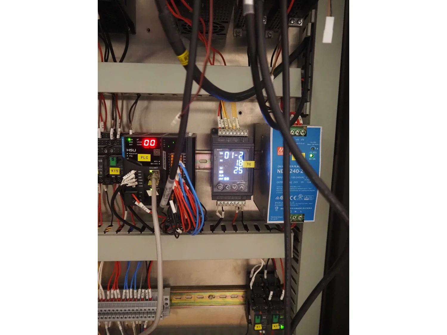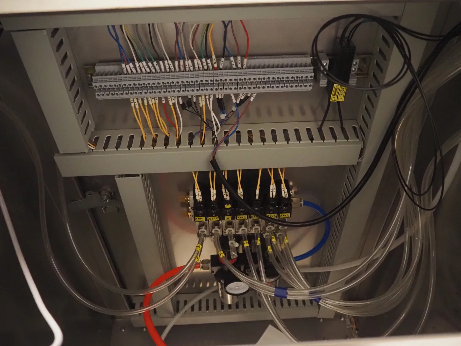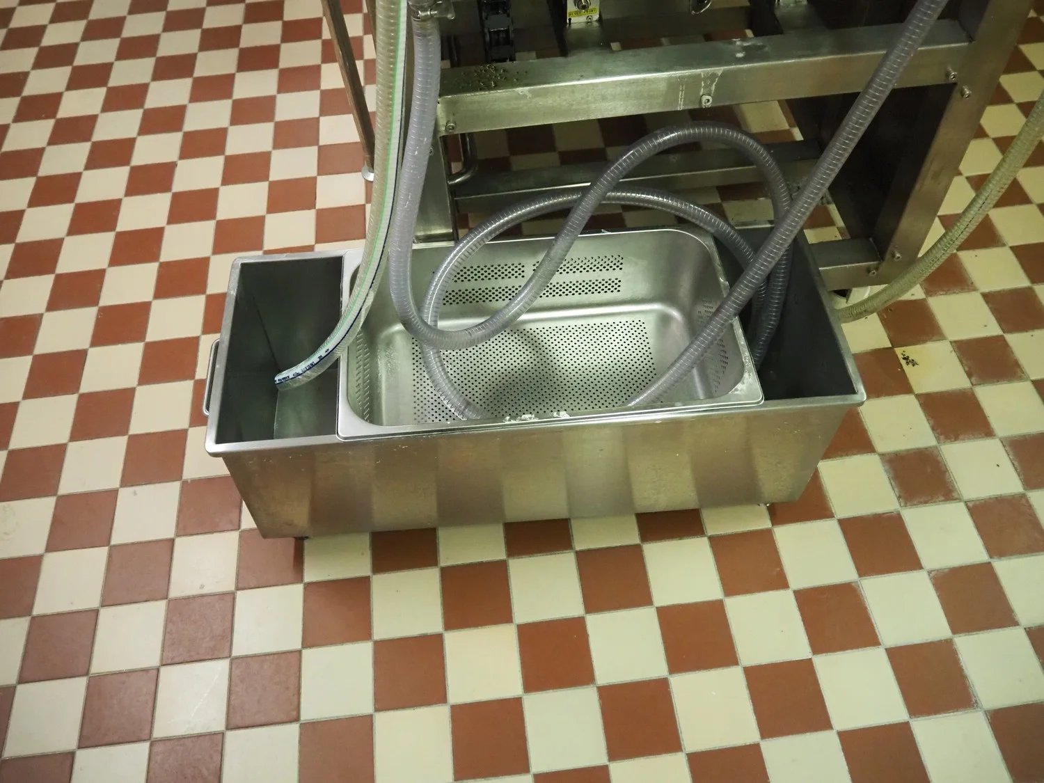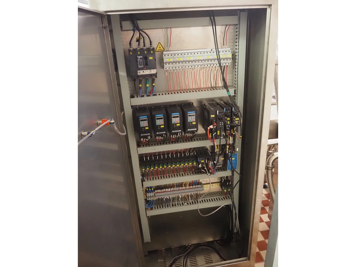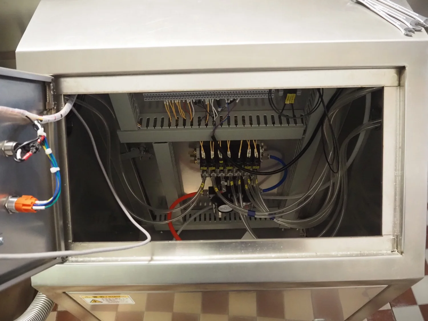 Shengxing Machinery production line for spring rolls, tub with 2 pumps, heated press, press width: 500 mm, s/s mesh belt, belt width: 430 mm, blower, 1 head depositor, plastic belt, belt width: 430 mm, total dimensions: 9000 mm x 1200 mm x 2000 mm. Used only 8 times.